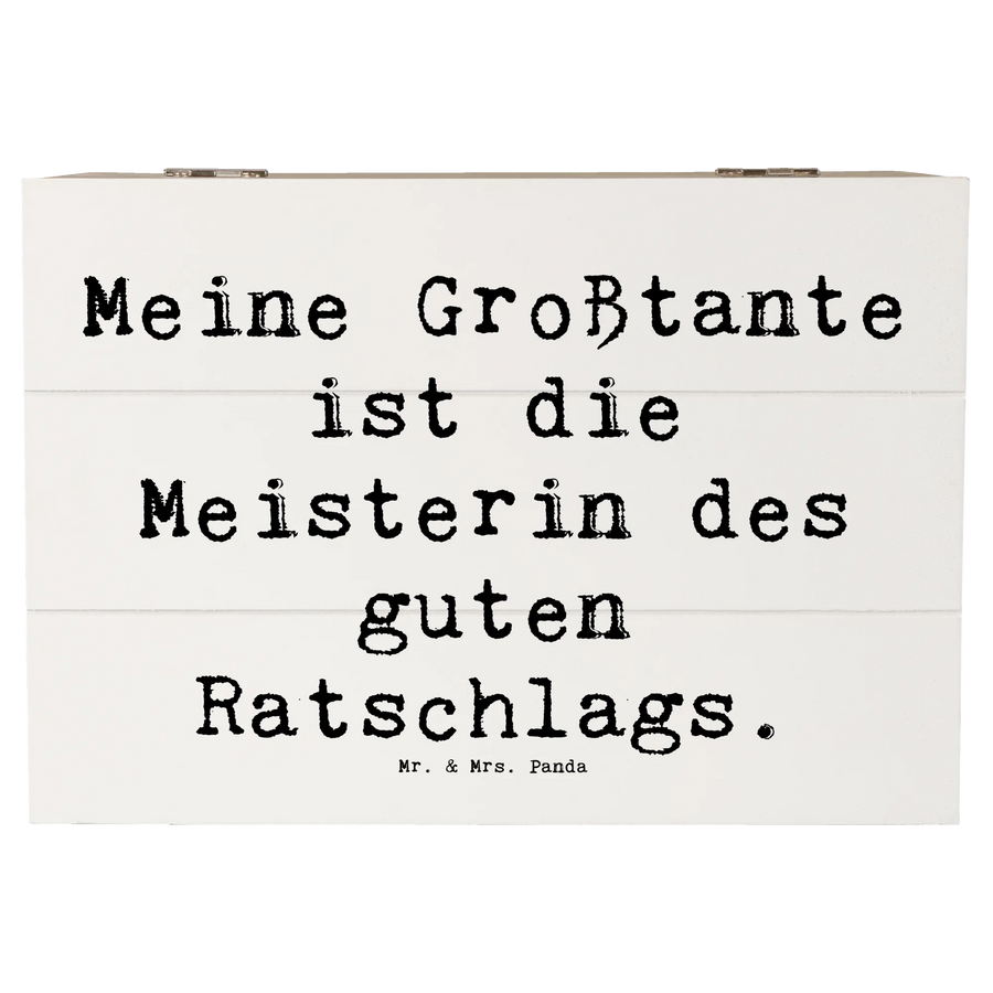 Diese wunderschöne Holzkiste von Mr. & Mrs. Panda ist das perfekte Geschenk für alle, die ihre wertvollen Erinnerungen an eine liebevolle Großtante aufbewahren möchten. Mit dem liebevollen Spruch 'Meine Großtante ist die Meisterin des guten Ratschlags' bringt sie nicht nur Freude, sondern auch ein Stück Weisheit in dein Zuhause.