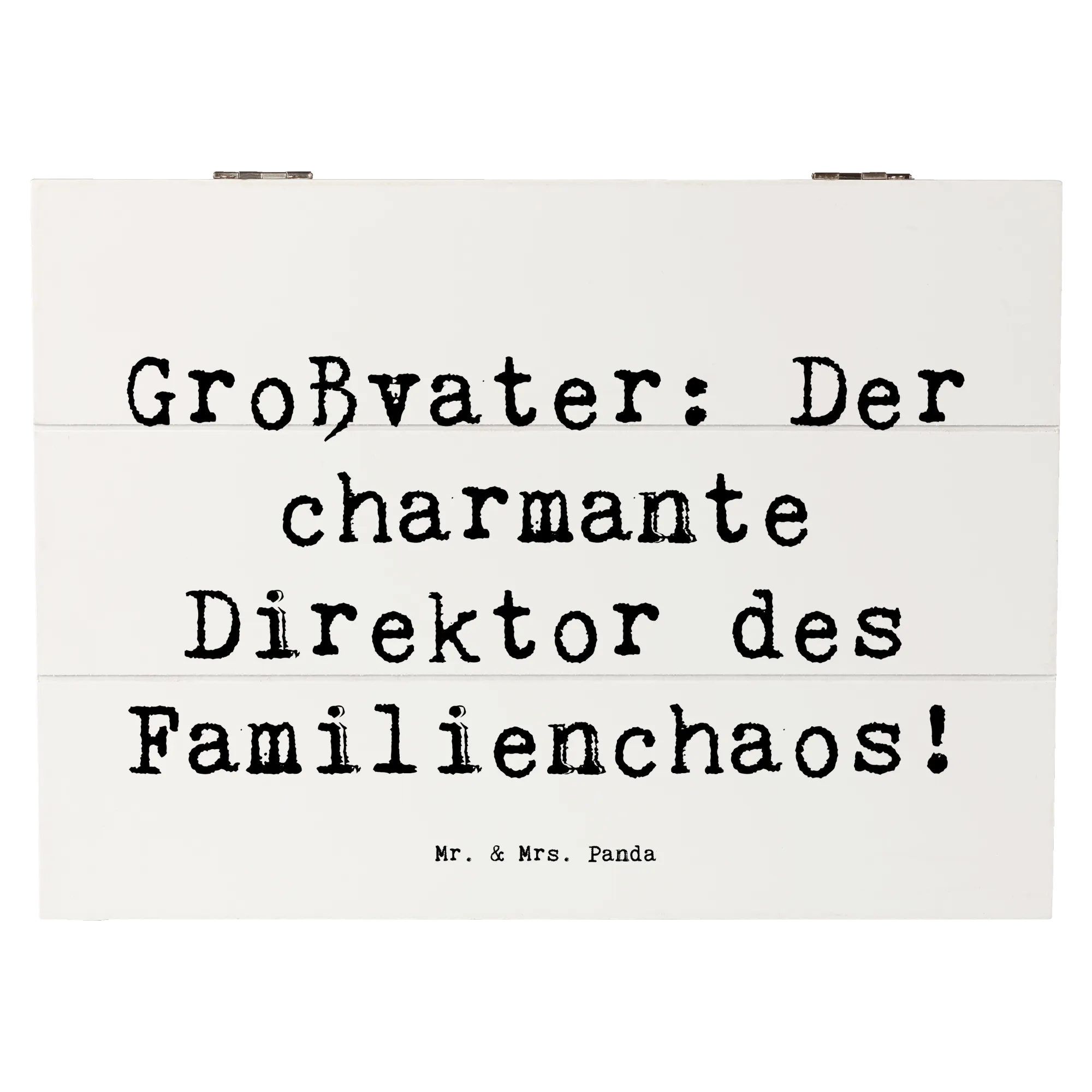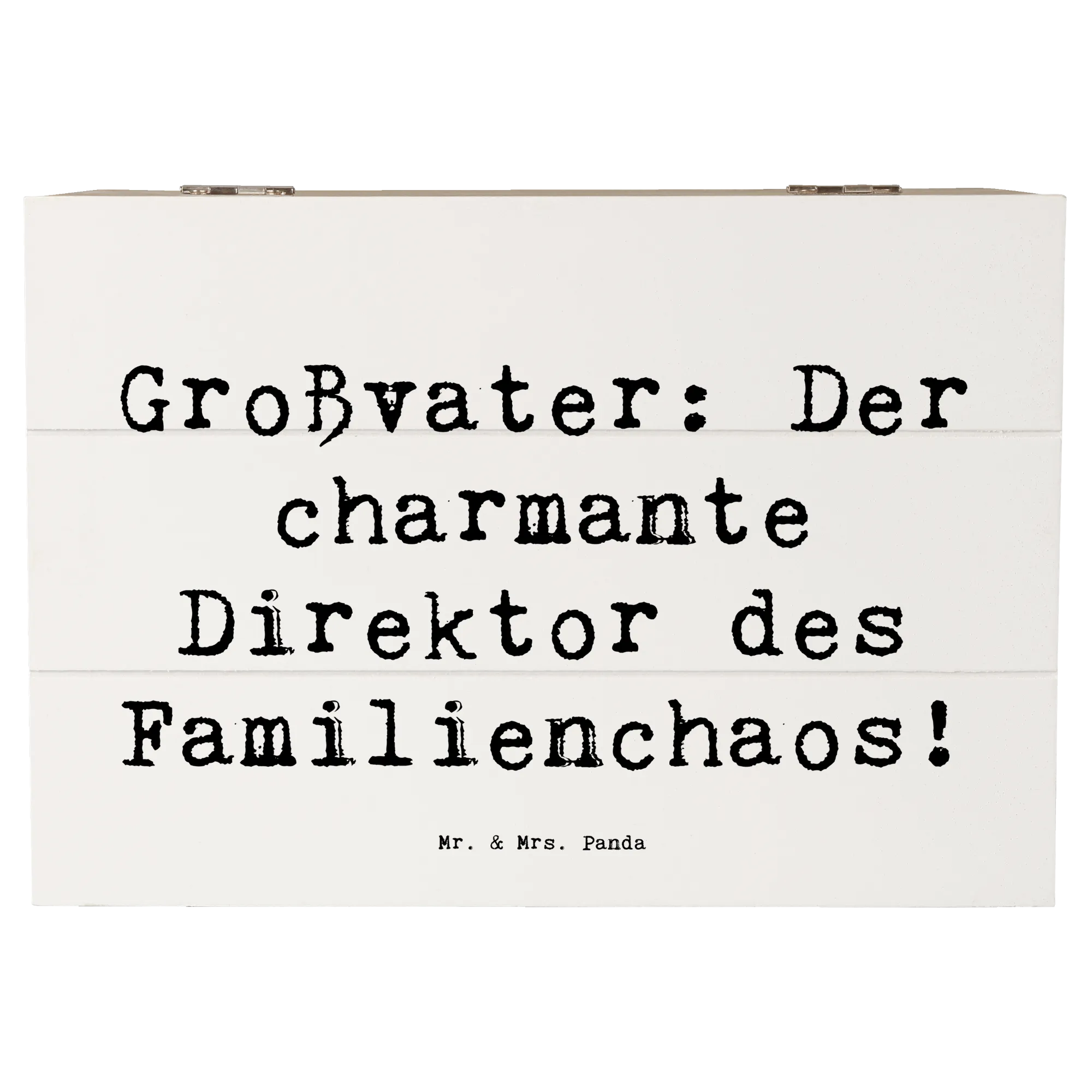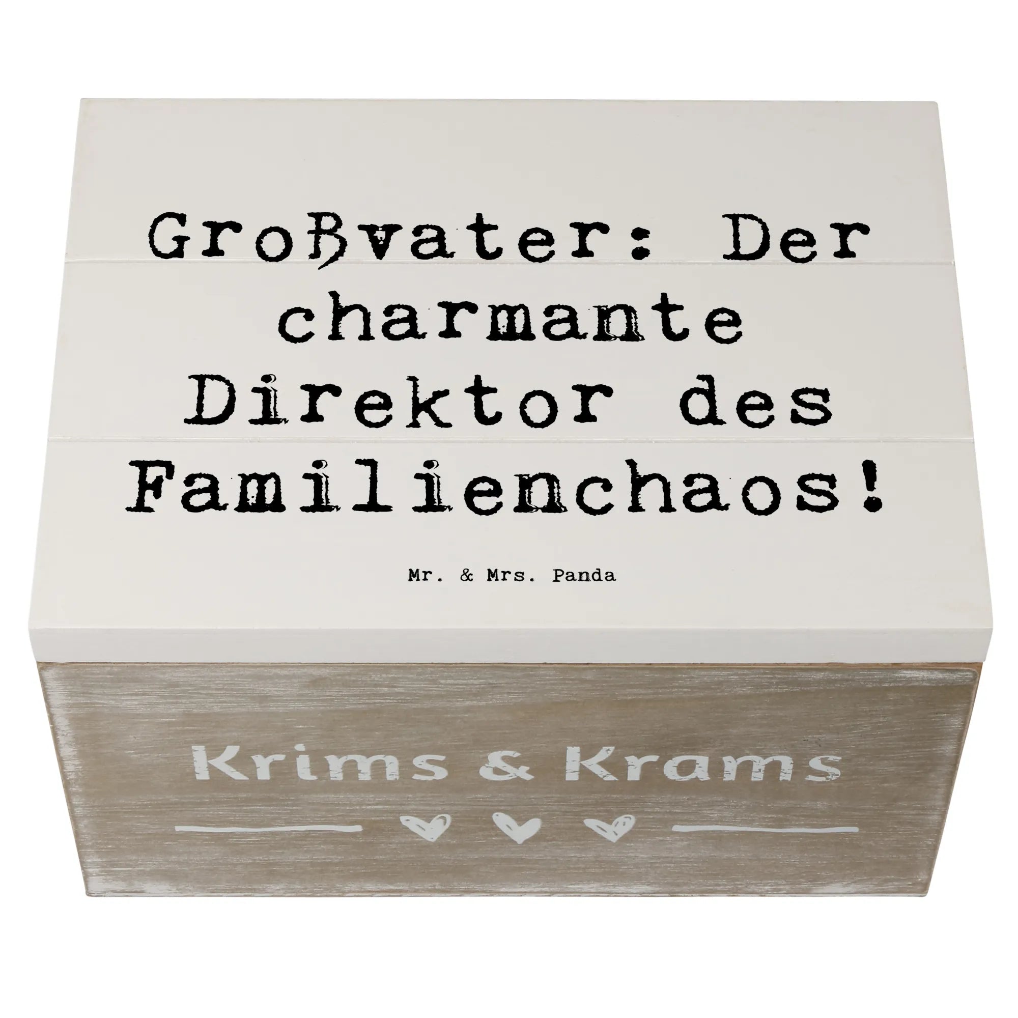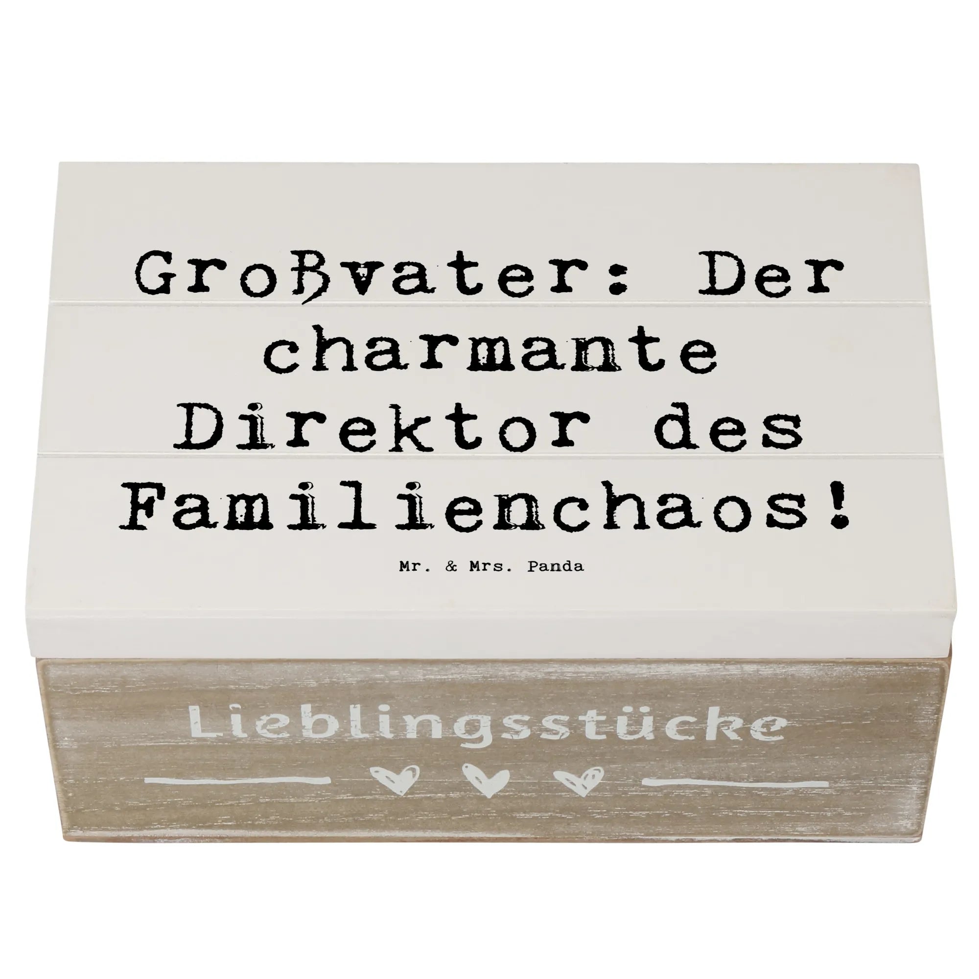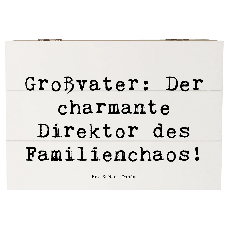 Entdecke die wunderschöne Holzkiste von Mr. & Mrs. Panda, die das perfekte Geschenk für Großväter ist! Diese Schatzkiste, ausgestattet mit dem charmanten Spruch 'Großvater: Der charmante Direktor des Familienchaos!', ist nicht nur ein aufmerksames Präsent, sondern auch ein liebevoller Aufbewahrungsort für all die wertvollen Erinnerungen, die Großeltern mit ihren Enkeln teilen.