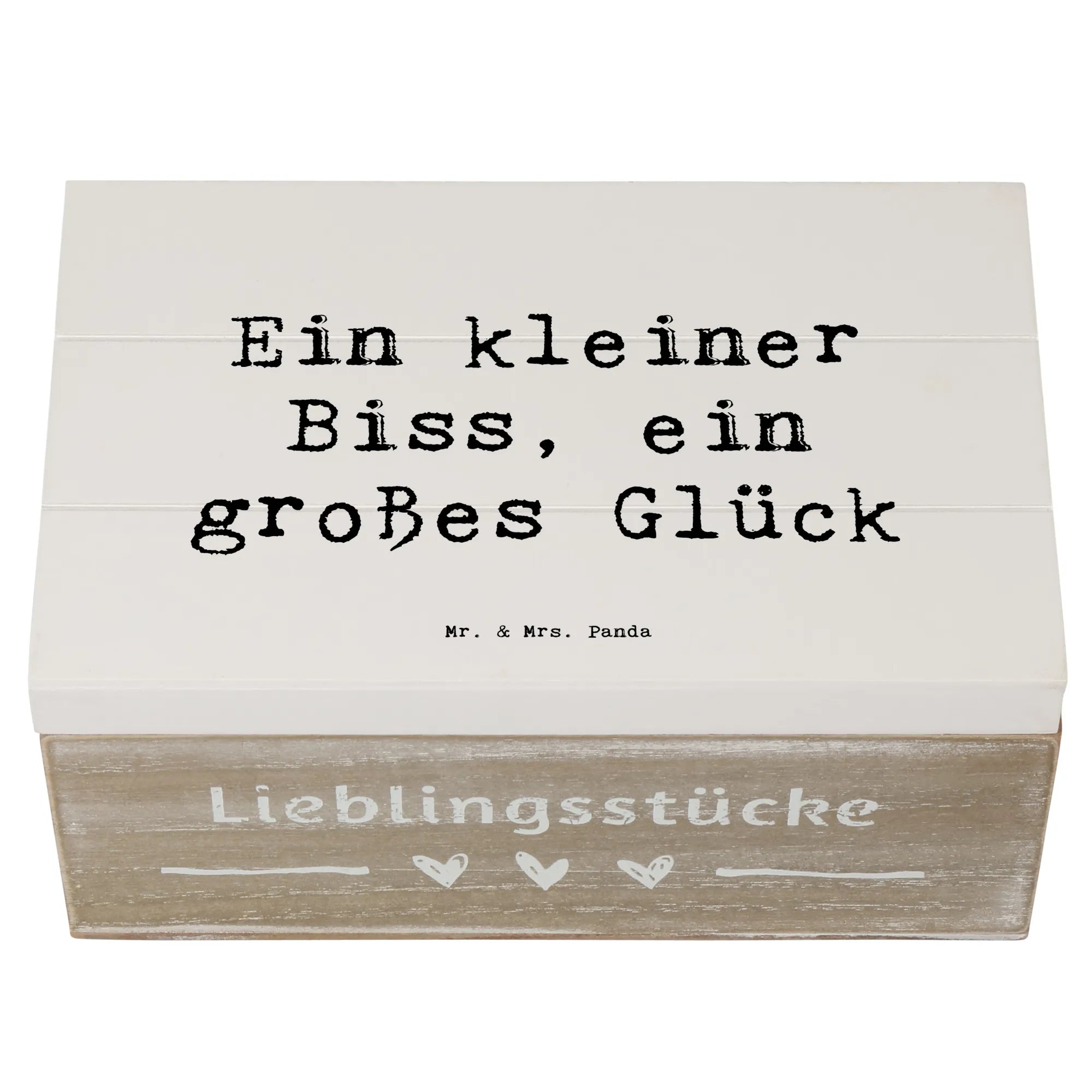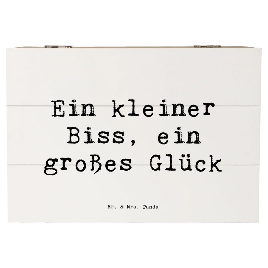 Wenn du auf der Suche nach einer nachhaltigen Geschenklösung bist, ist diese Holzkiste die ideale Wahl. Außerdem hat sie Einschlagscharniere, die ein einfaches Öffnen und Schließen ermöglichen, sodass du deine Schätze jederzeit schnell griffbereit hast. Der Spruch „Ein kleiner Biss, ein großes Glück“ macht diese Box noch persönlicher und sorgt für ein Lächeln beim Beschenkten.