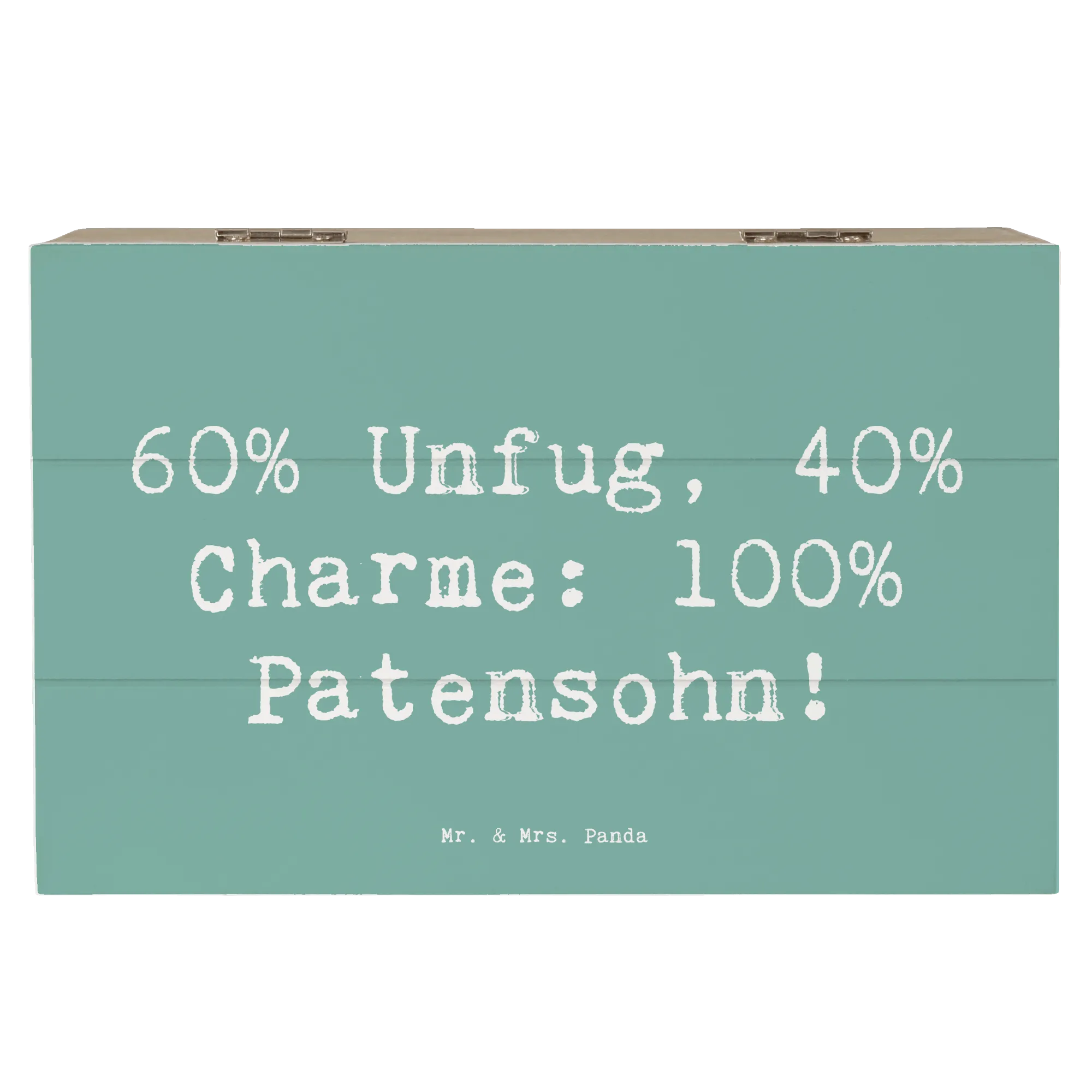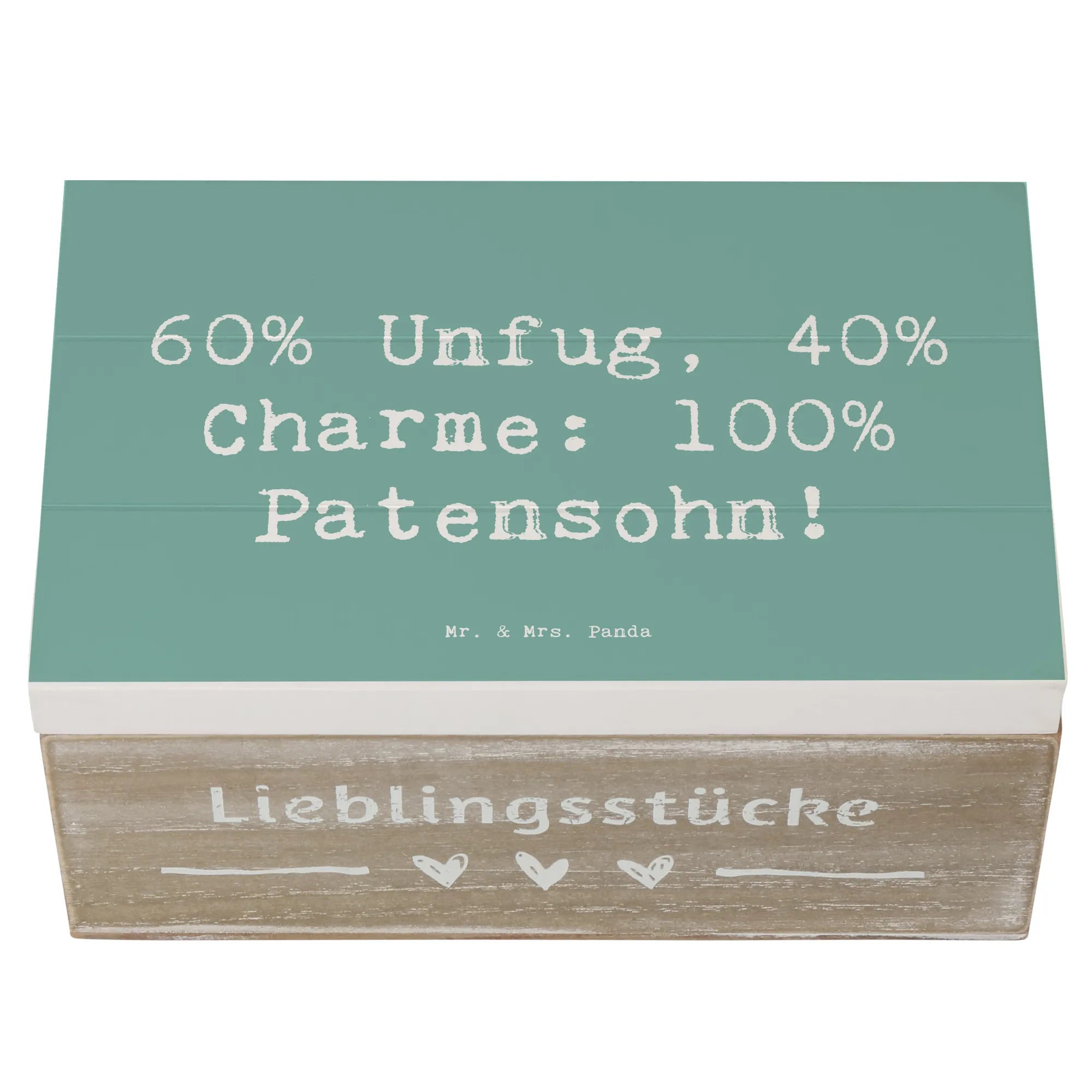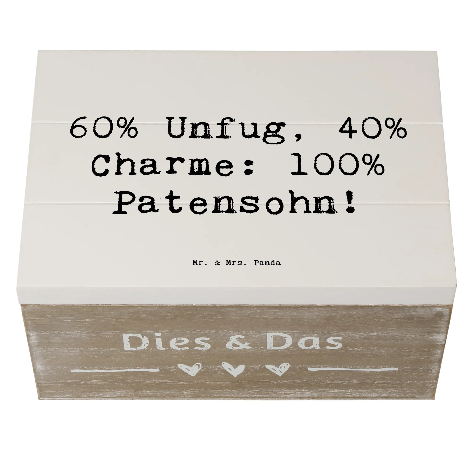 Die wunderschöne Holzkiste von Mr. & Mrs. Panda ist das perfekte Geschenk für deinen Patensohn! Mit einem charmanten Motiv und dem Spruch "60% Unfug, 40% Charme: 100% Patensohn!" wird sie zum idealen Aufbewahrungsort für all die besonderen Erinnerungen.