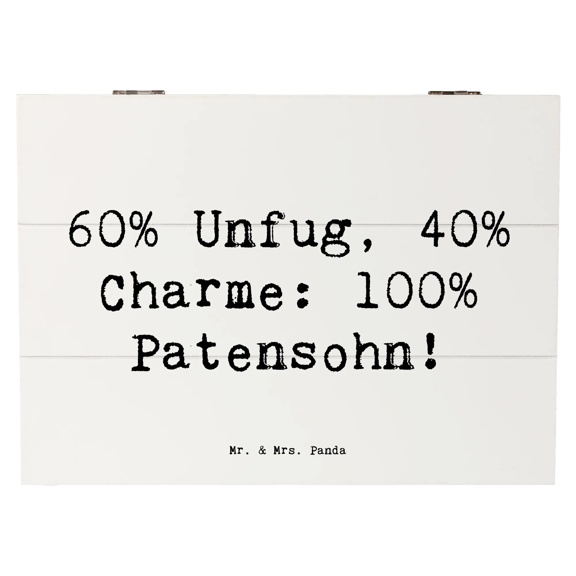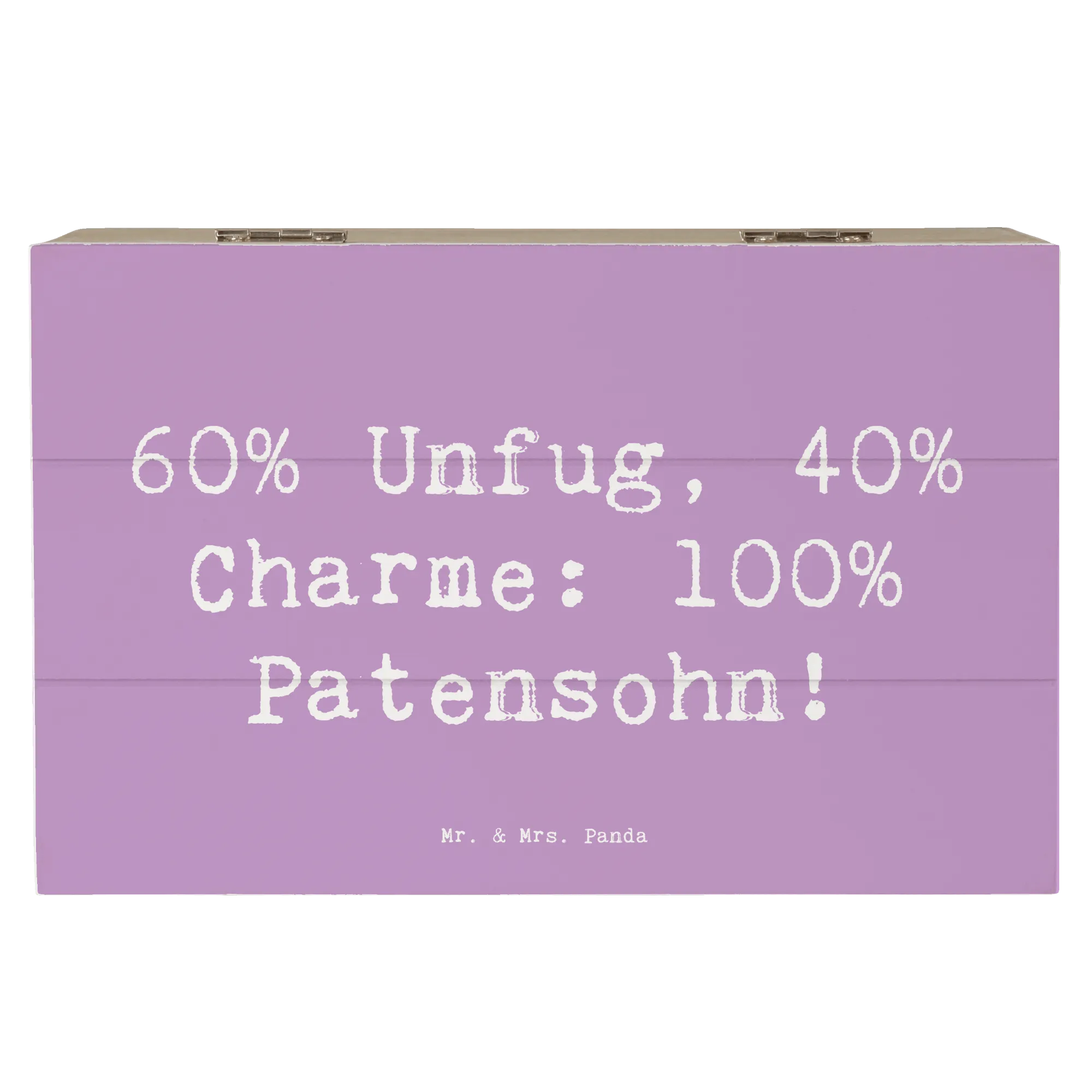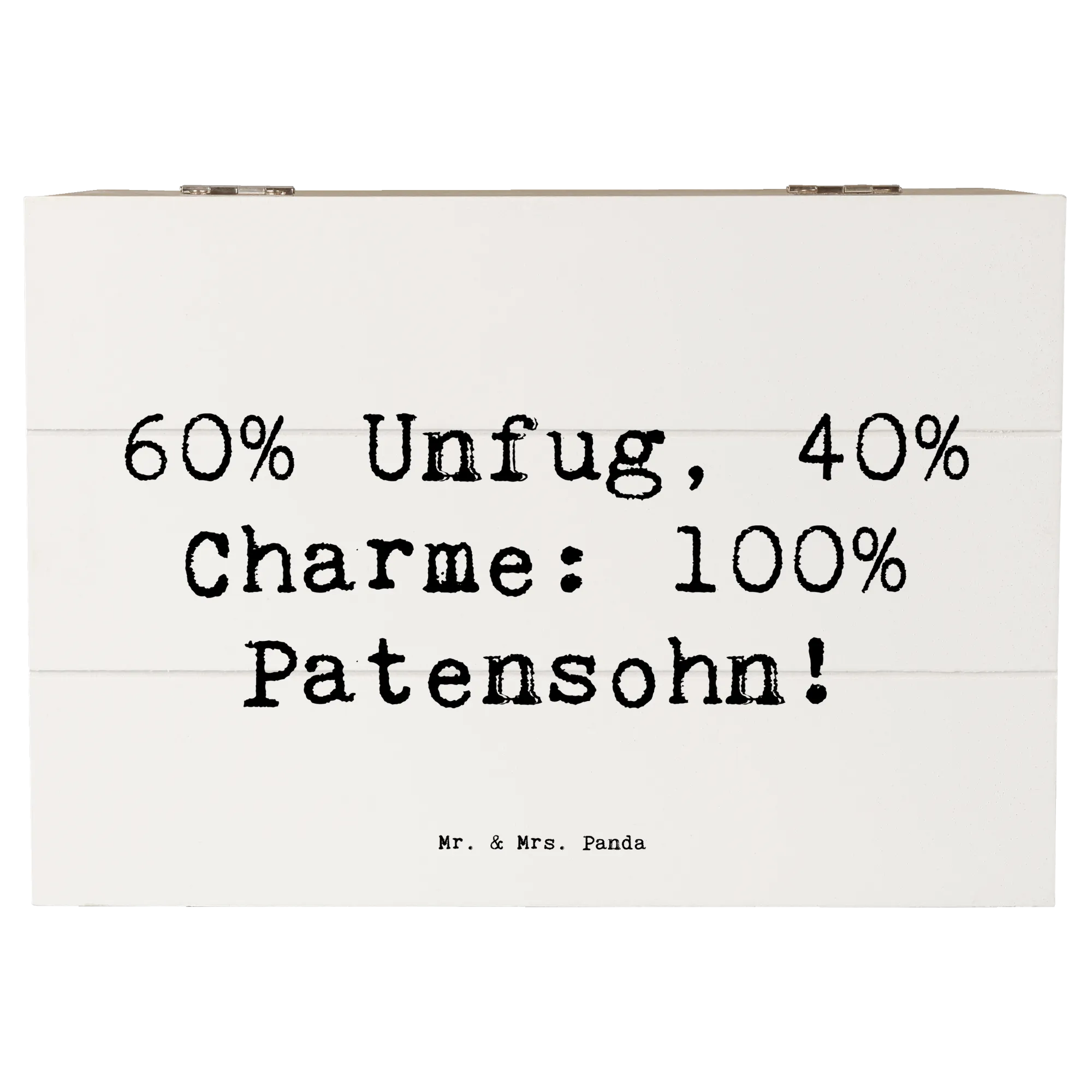 Die wunderschöne Holzkiste von Mr. & Mrs. Panda ist das perfekte Geschenk für deinen Patensohn! Mit einem charmanten Motiv und dem Spruch "60% Unfug, 40% Charme: 100% Patensohn!" wird sie zum idealen Aufbewahrungsort für all die besonderen Erinnerungen.
