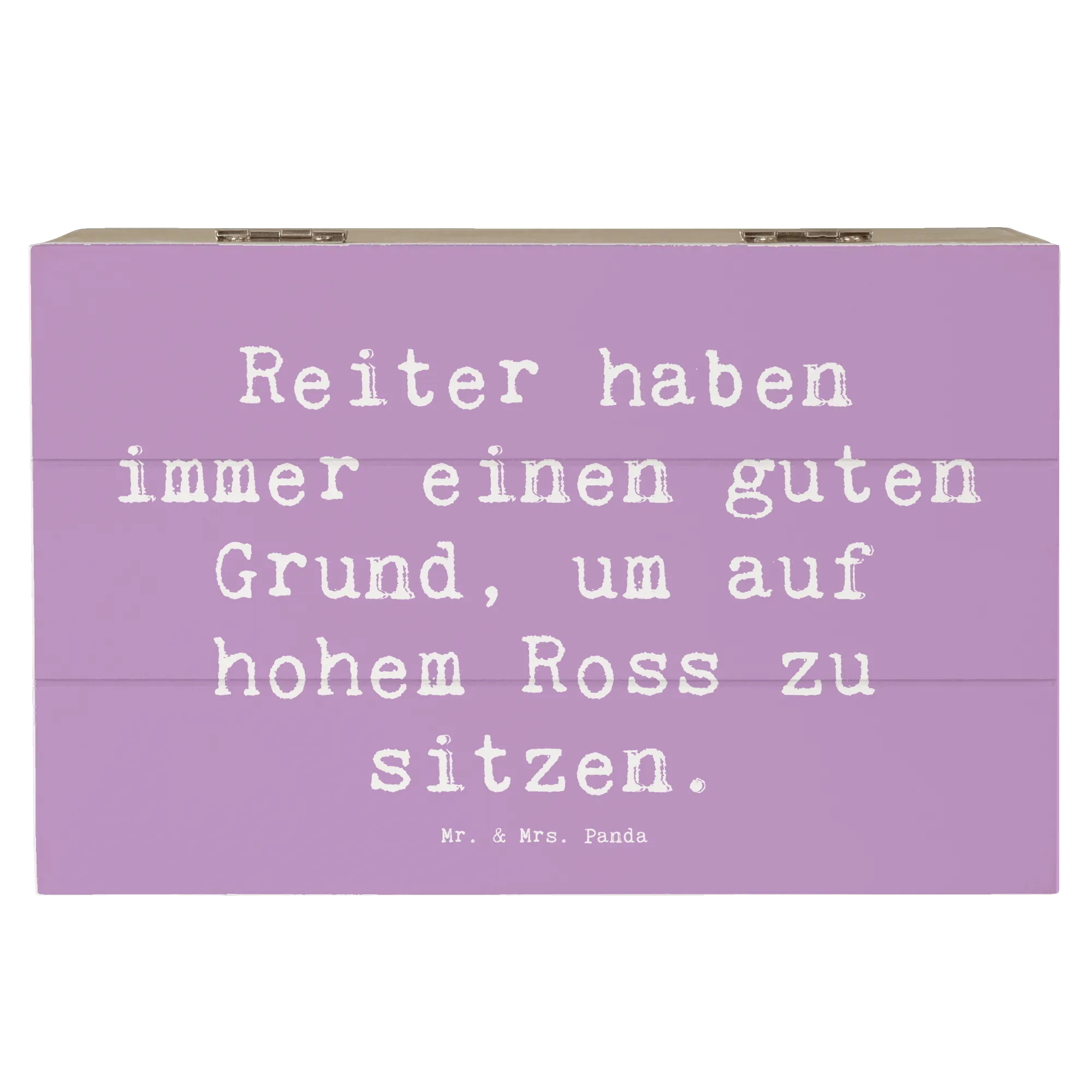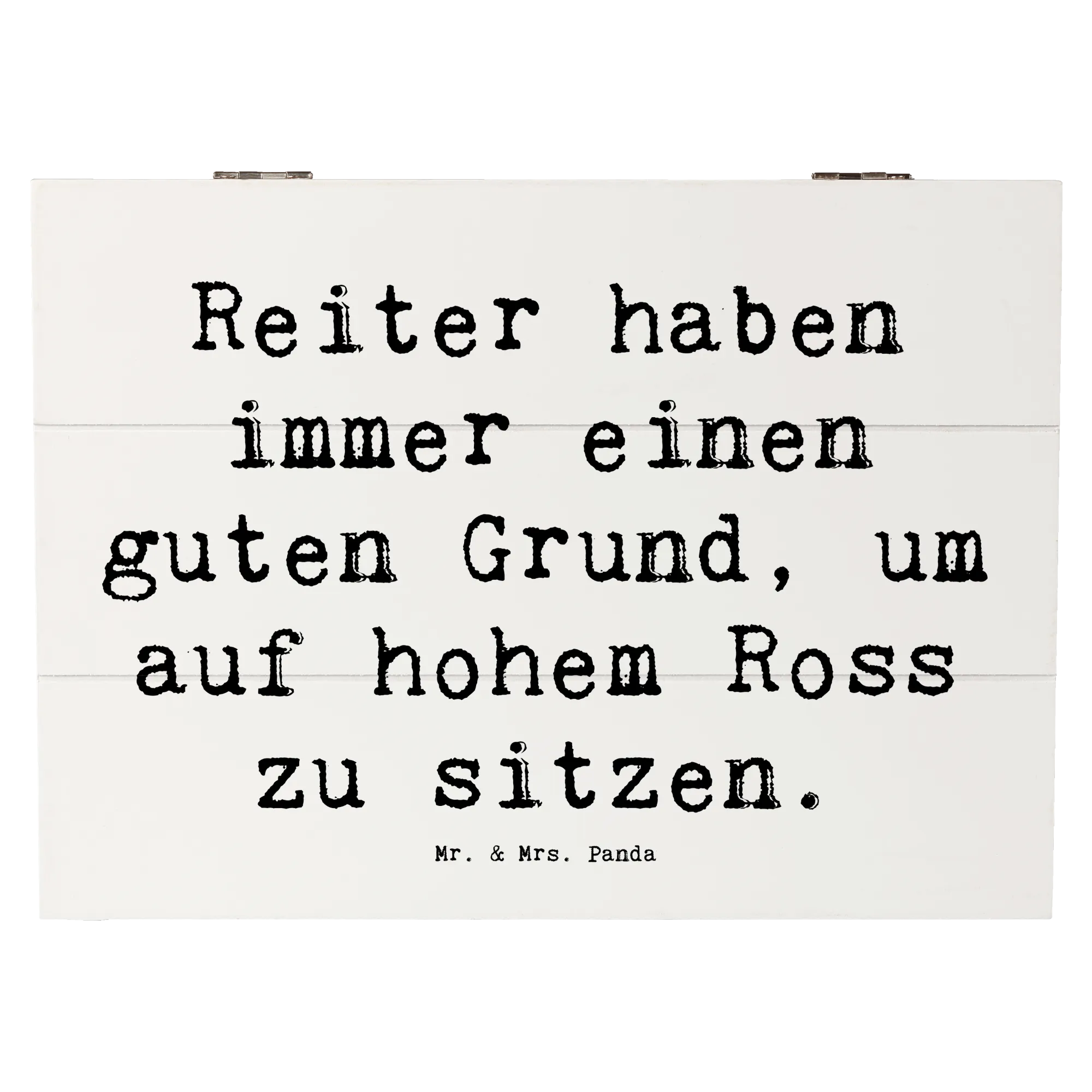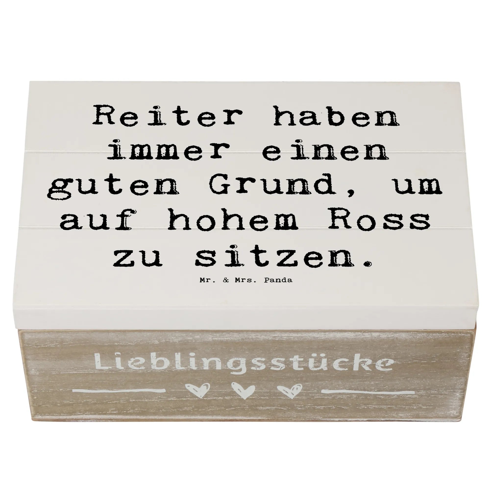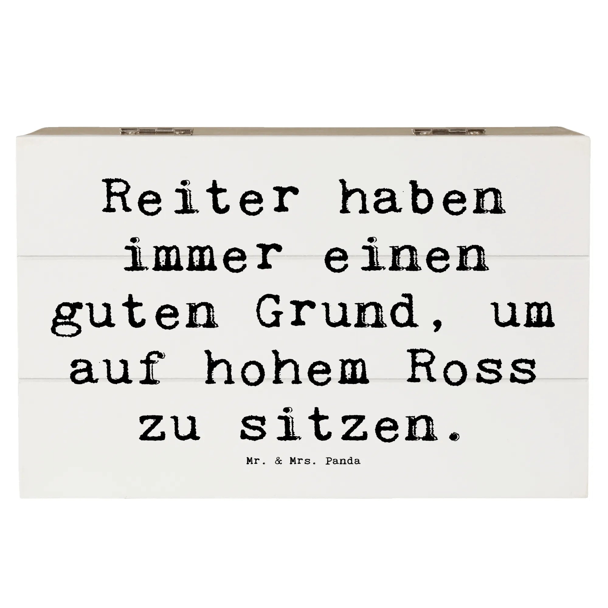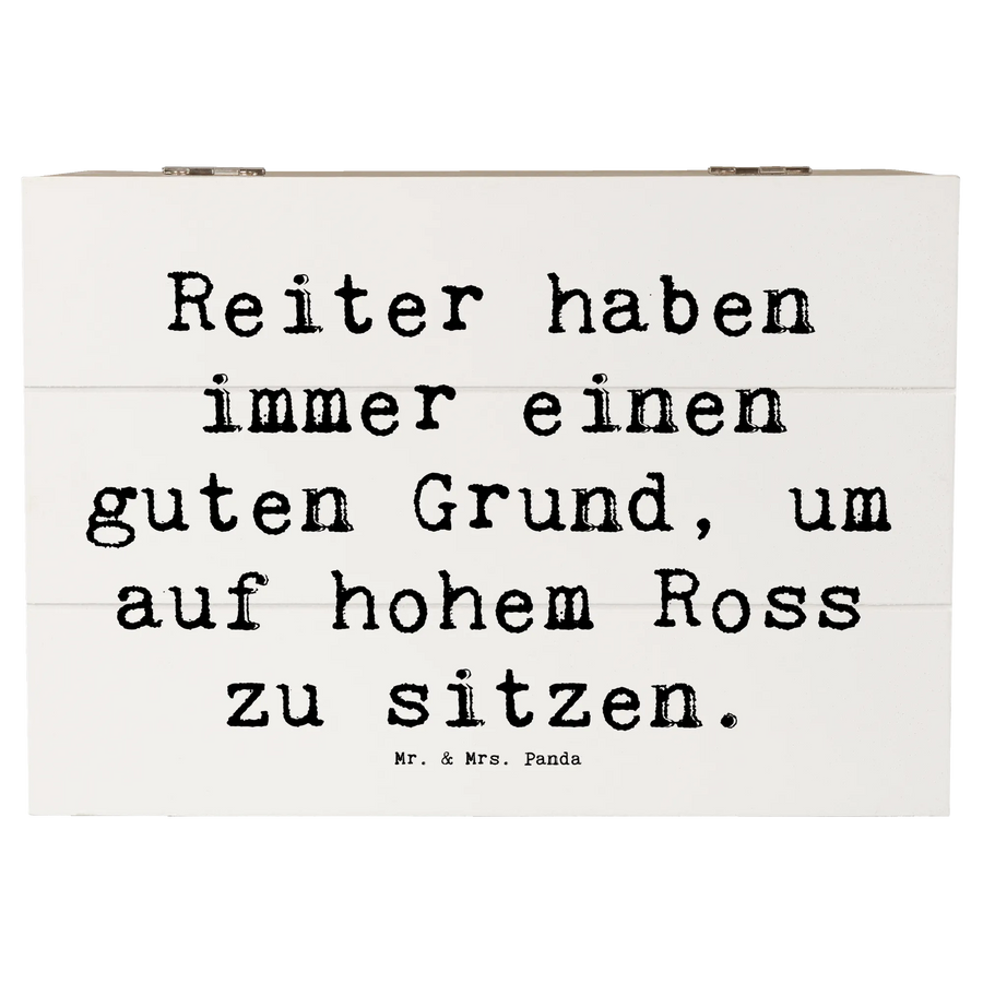 Die wunderschöne Holzkiste von Mr. & Mrs. Panda ist das perfekte Geschenk für alle Pferdeliebhaber und Reitsportfans! Mit dem liebevollen Spruch „Reiter haben immer einen guten Grund, um auf hohem Ross zu sitzen“ bringt diese Kiste nicht nur Freude ins Zuhause, sondern dient auch als stilvolle Aufbewahrungsbox für all die kostbaren Erinnerungen.
