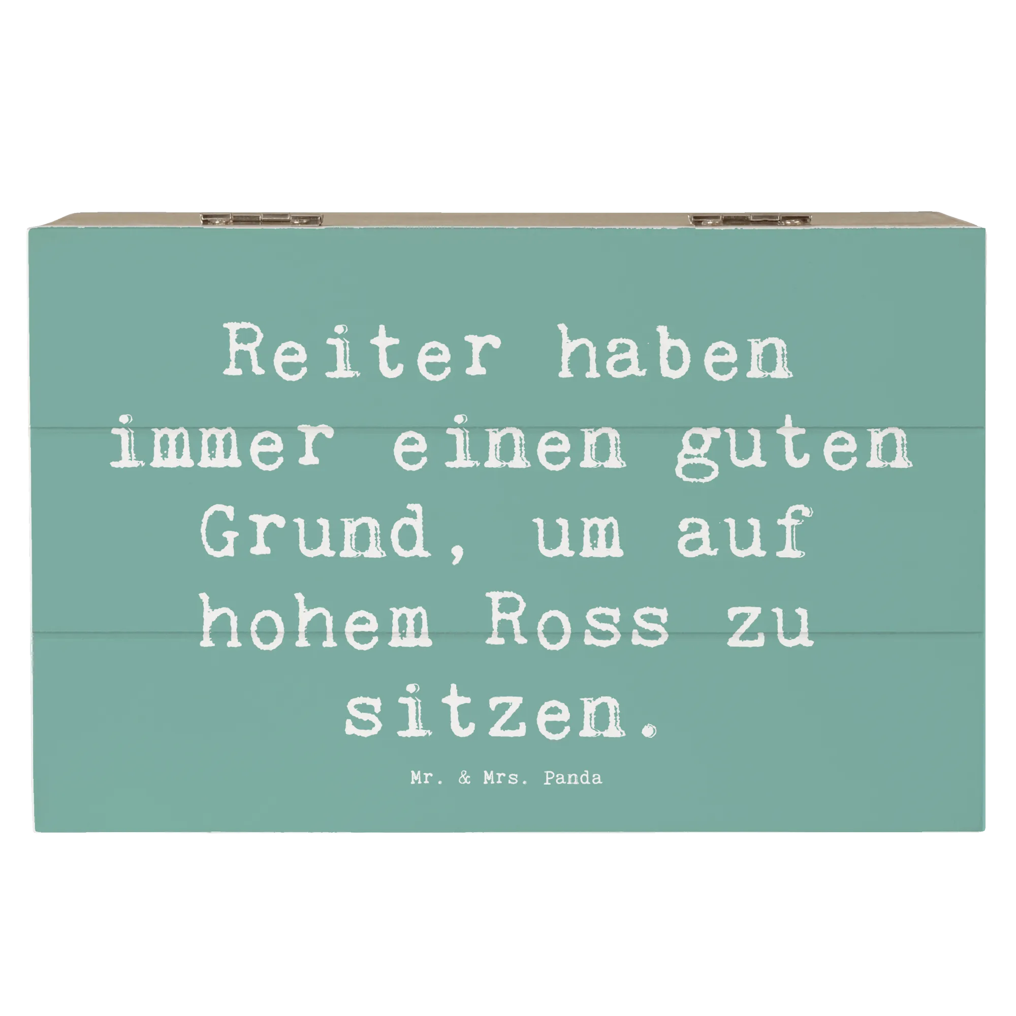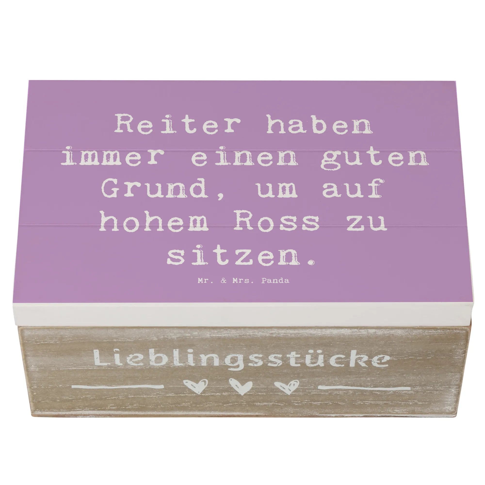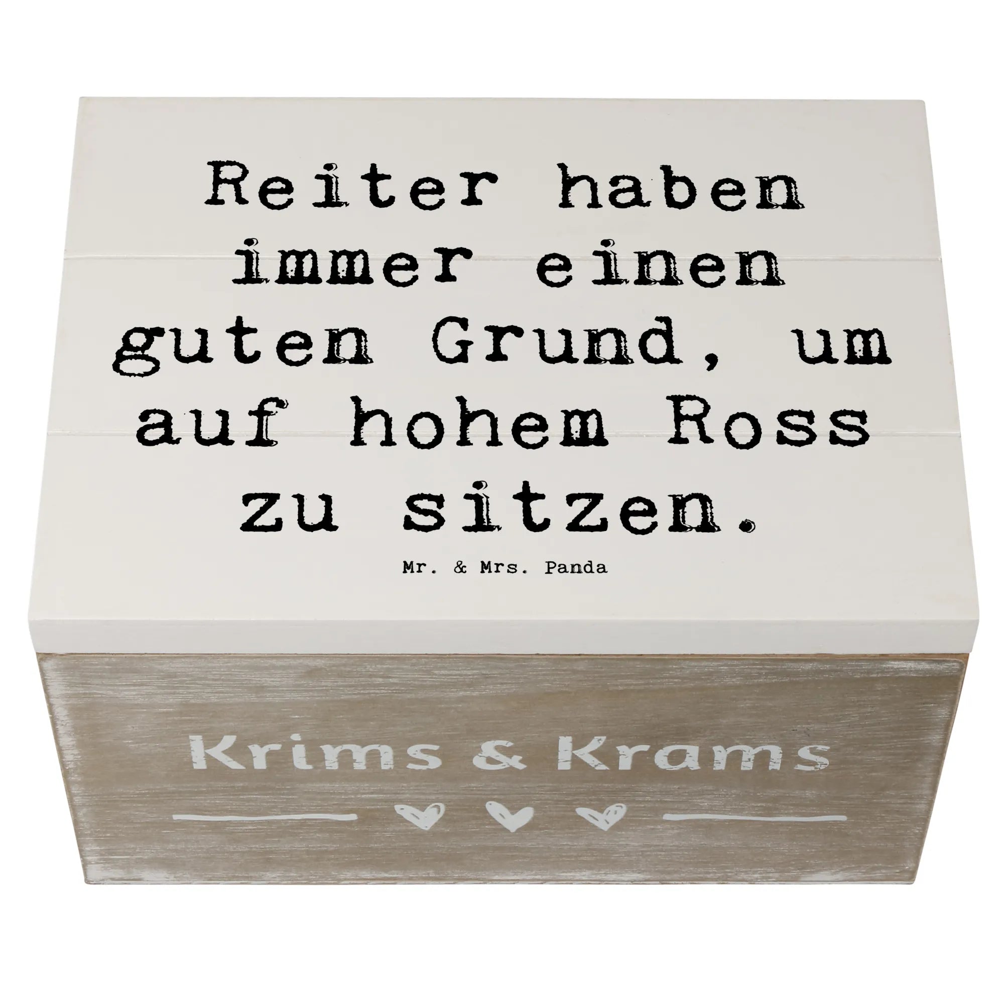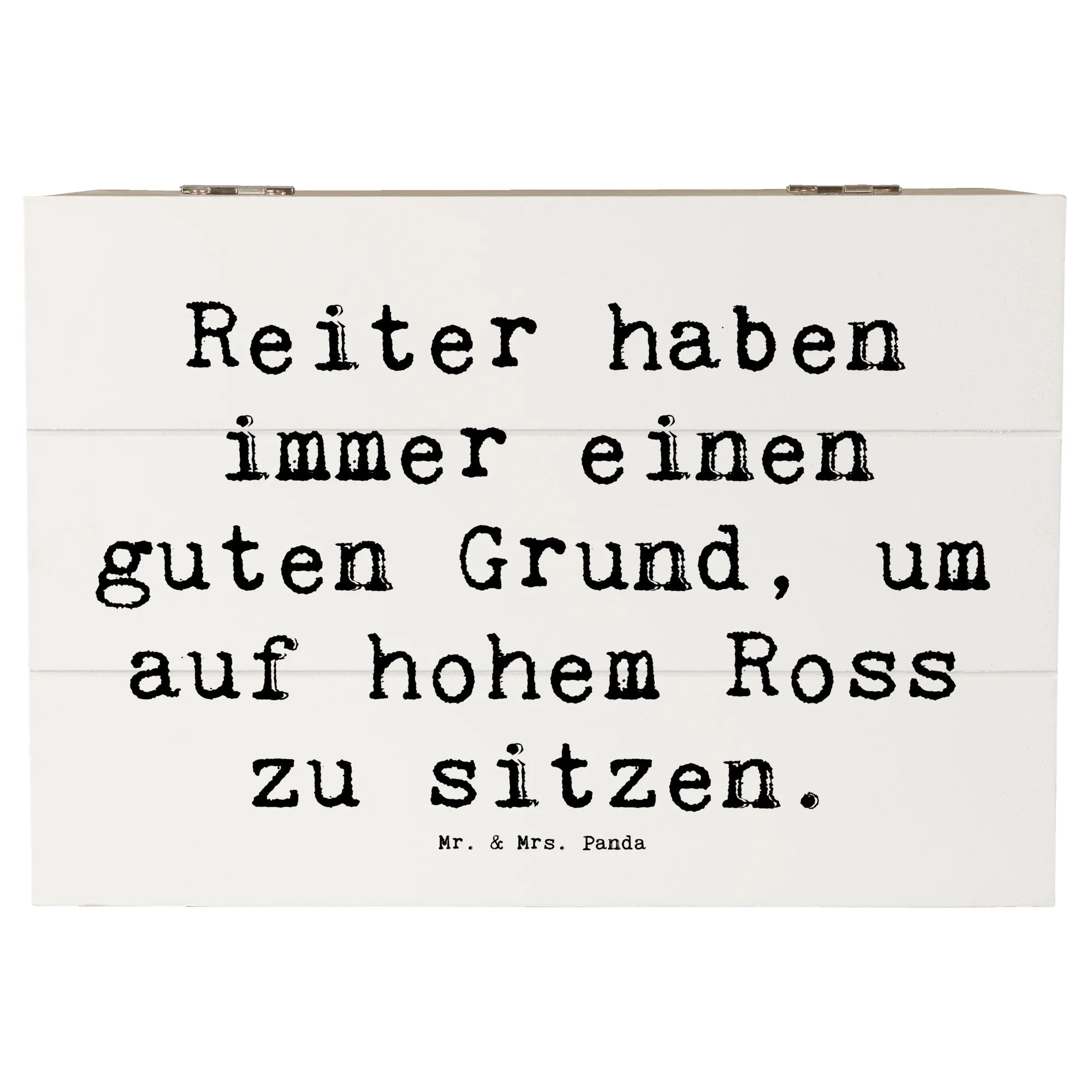 Die wunderschöne Holzkiste von Mr. & Mrs. Panda ist das perfekte Geschenk für alle Pferdeliebhaber und Reitsportfans! Mit dem liebevollen Spruch „Reiter haben immer einen guten Grund, um auf hohem Ross zu sitzen“ bringt diese Kiste nicht nur Freude ins Zuhause, sondern dient auch als stilvolle Aufbewahrungsbox für all die kostbaren Erinnerungen.