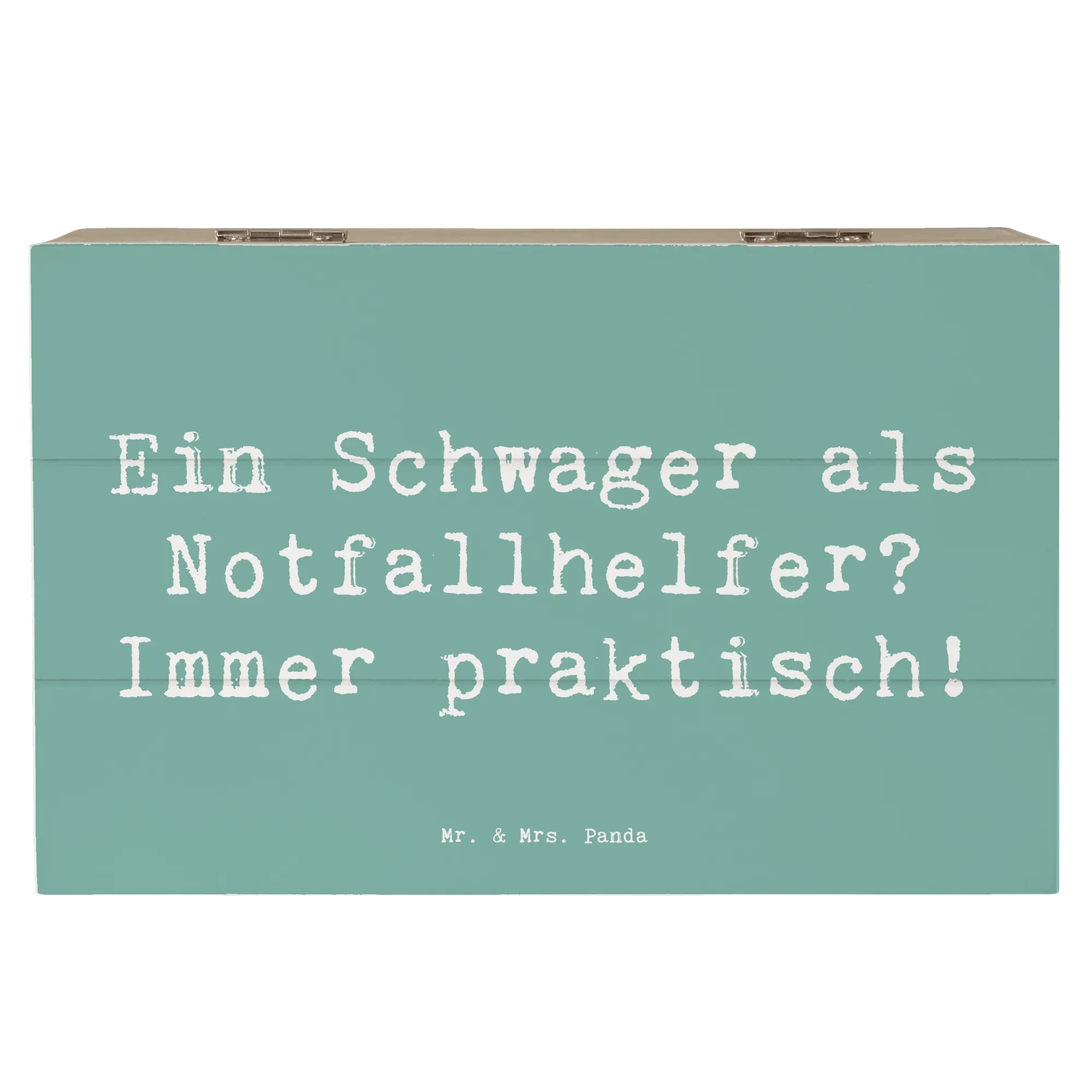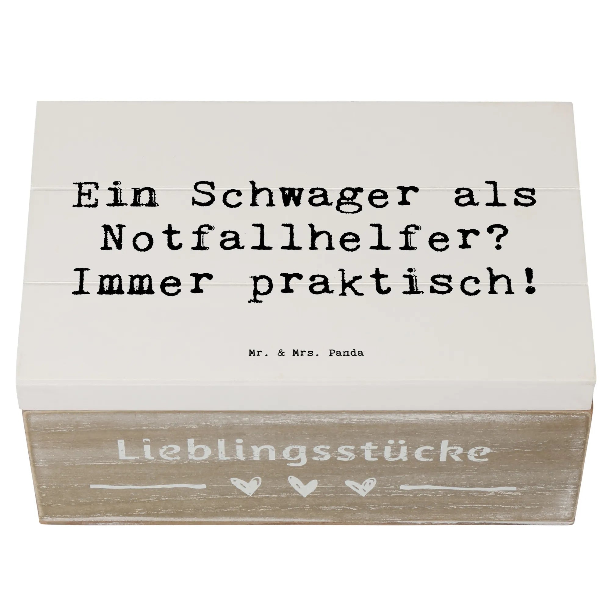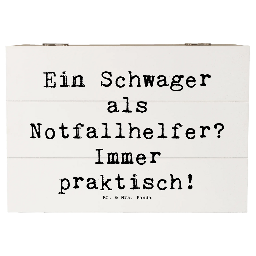 Mit dem praktischen Spruch „Ein Schwager als Notfallhelfer? Immer praktisch!“ bringt die Kiste ein Lächeln auf die Gesichter Deiner Lieben und zelebriert zugleich die besonderen Beziehungen innerhalb der Familie. Sie ist nicht nur ein schöner Augenblicksfänger, sondern auch eine Erinnerungskiste, die Raumschätze wie Fotos, kleine Geschenke oder besondere Andenken aufbewahren kann.