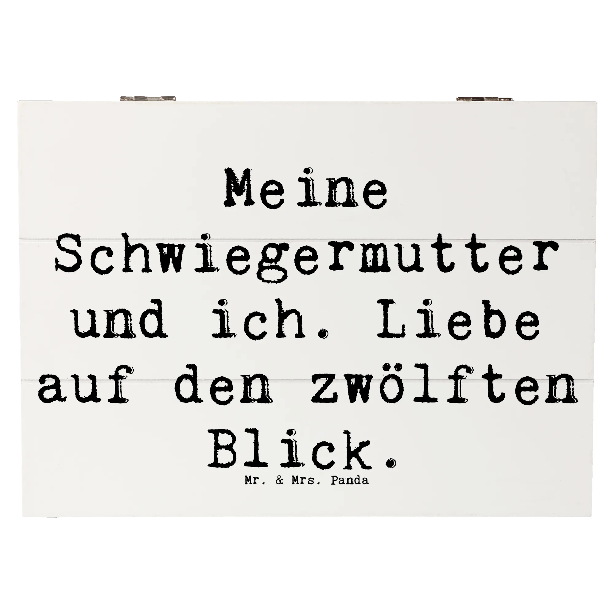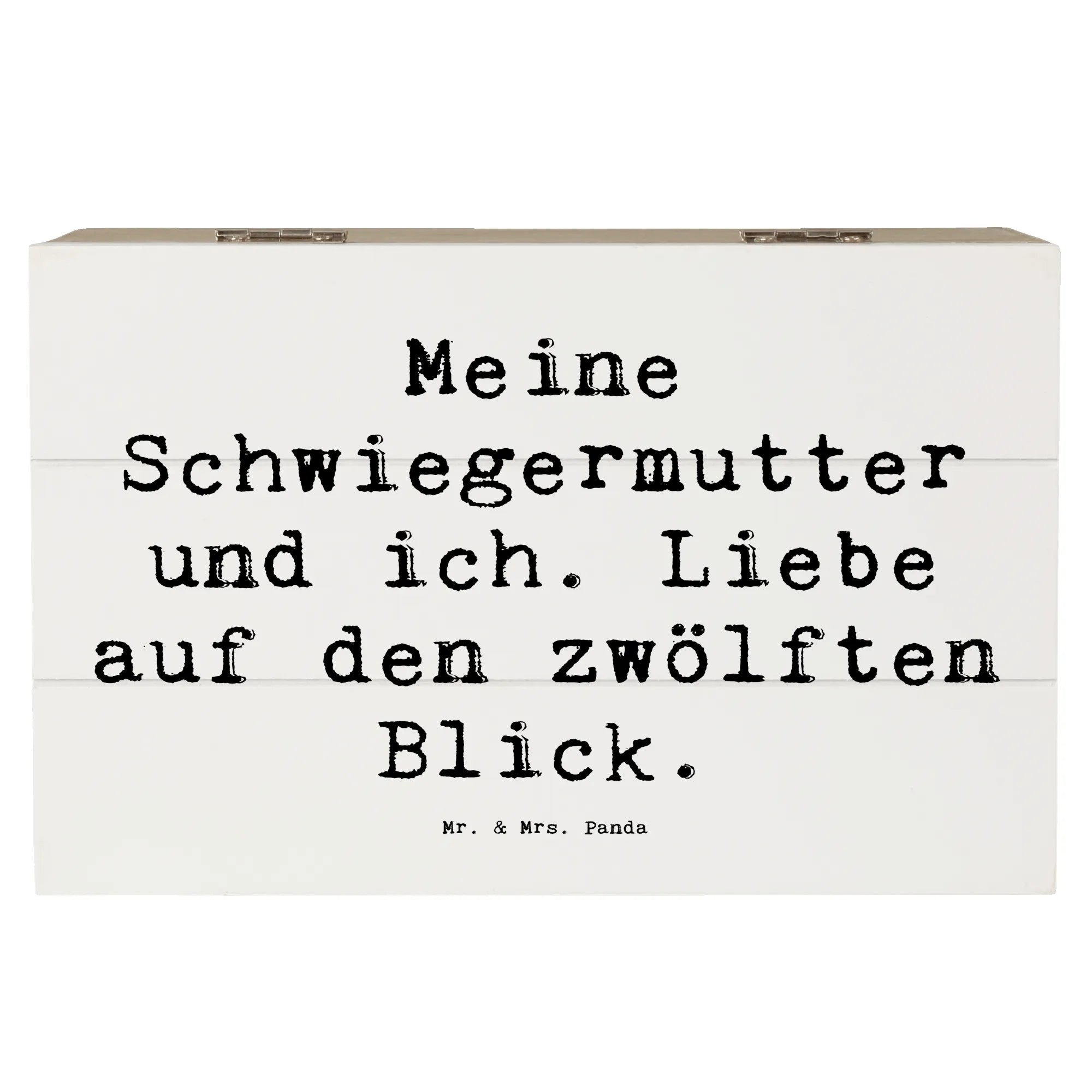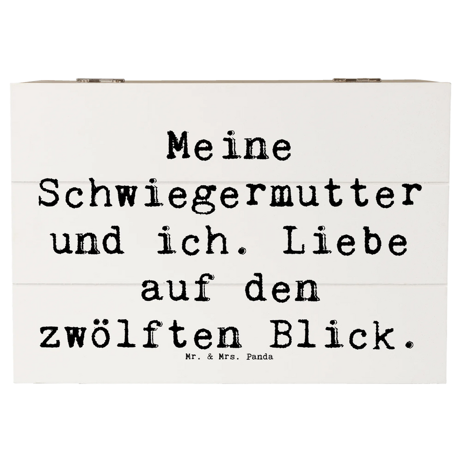 Die wunderschöne Holzkiste von Mr. & Mrs. Panda mit dem liebevollen Motiv "Meine Schwiegermutter und ich. Liebe auf den zwölften Blick." ist das perfekte Geschenk für jeden Anlass. Diese einzigartige Aufbewahrungsbox ist nicht nur praktisch, sondern auch ein echtes Liebhaberstück, das Erinnerungen in stilvollem Design bewahrt. Sie eignet sich hervorragend als Erinnerungskiste für festliche Anlässe, die Kindheit, Kommunion, Konfirmation oder einfach als dekorativer Aufbewahrungsort für Fotos, Briefe und andere Schätze.