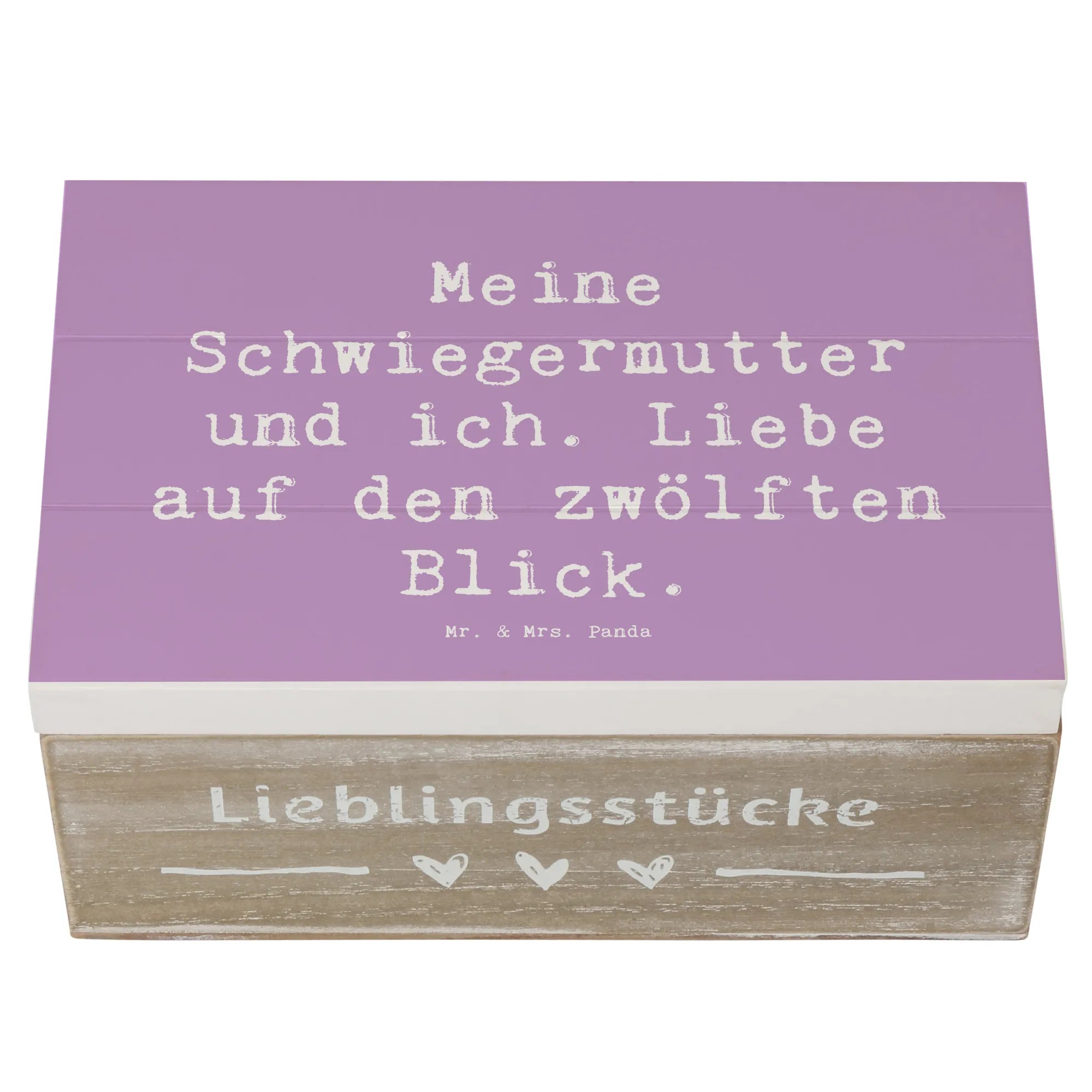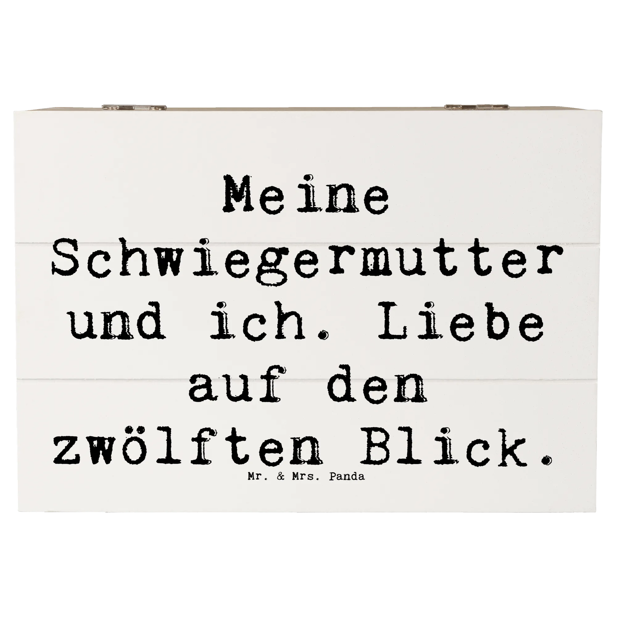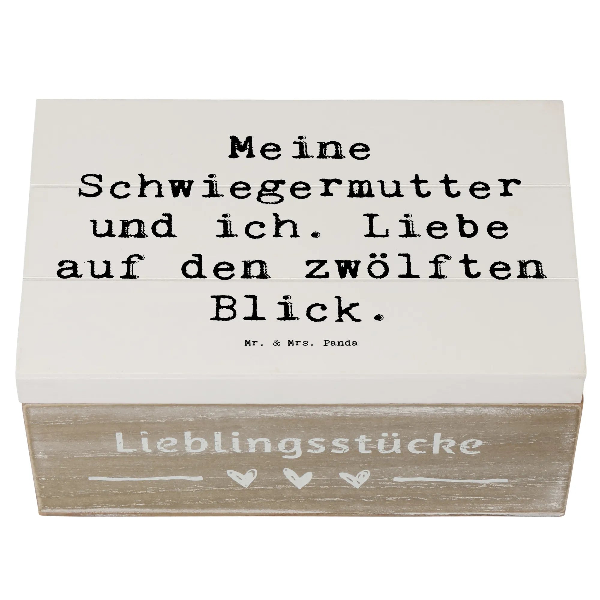 Die wunderschöne Holzkiste von Mr. & Mrs. Panda mit dem liebevollen Motiv "Meine Schwiegermutter und ich. Liebe auf den zwölften Blick." ist das perfekte Geschenk für jeden Anlass. Diese einzigartige Aufbewahrungsbox ist nicht nur praktisch, sondern auch ein echtes Liebhaberstück, das Erinnerungen in stilvollem Design bewahrt. Sie eignet sich hervorragend als Erinnerungskiste für festliche Anlässe, die Kindheit, Kommunion, Konfirmation oder einfach als dekorativer Aufbewahrungsort für Fotos, Briefe und andere Schätze.