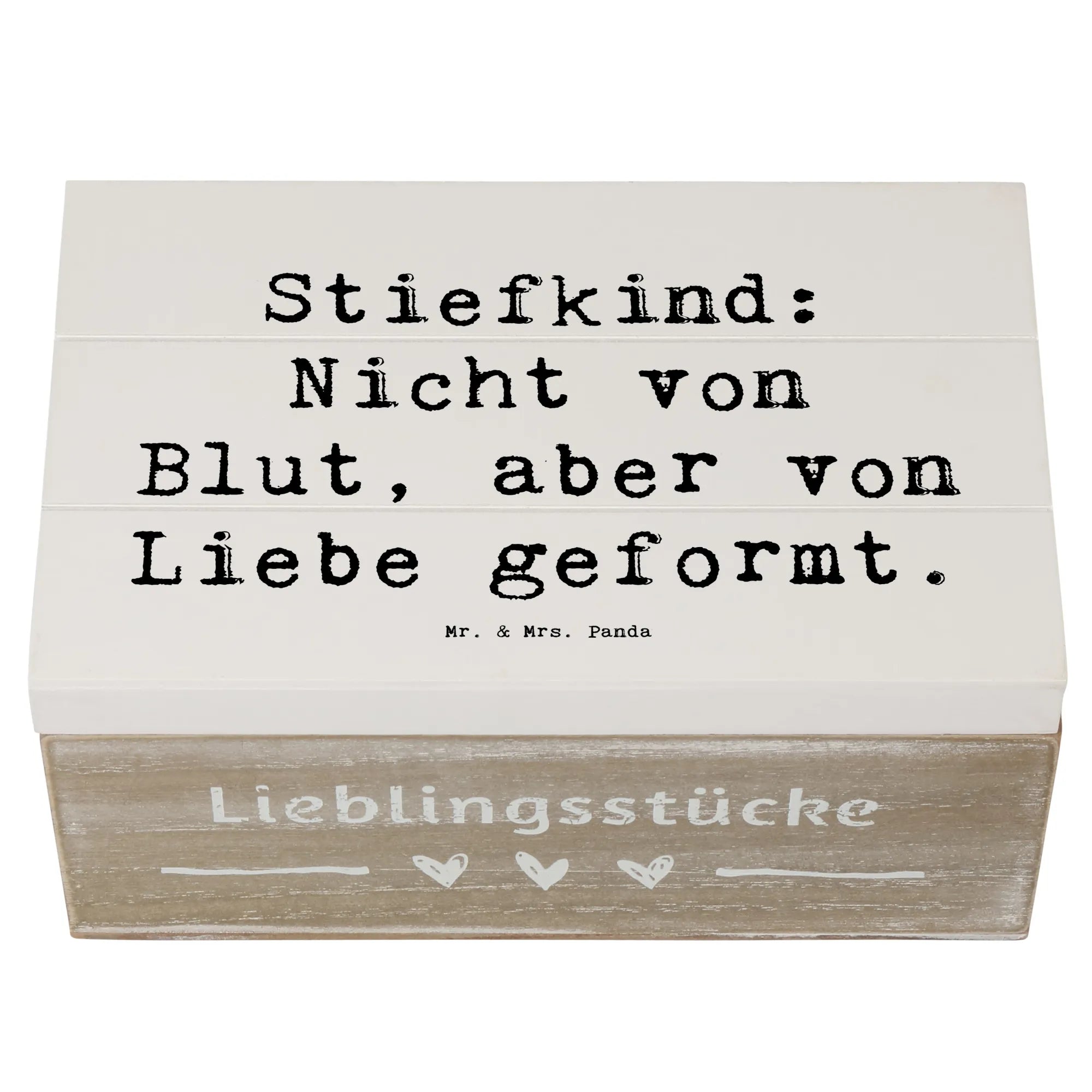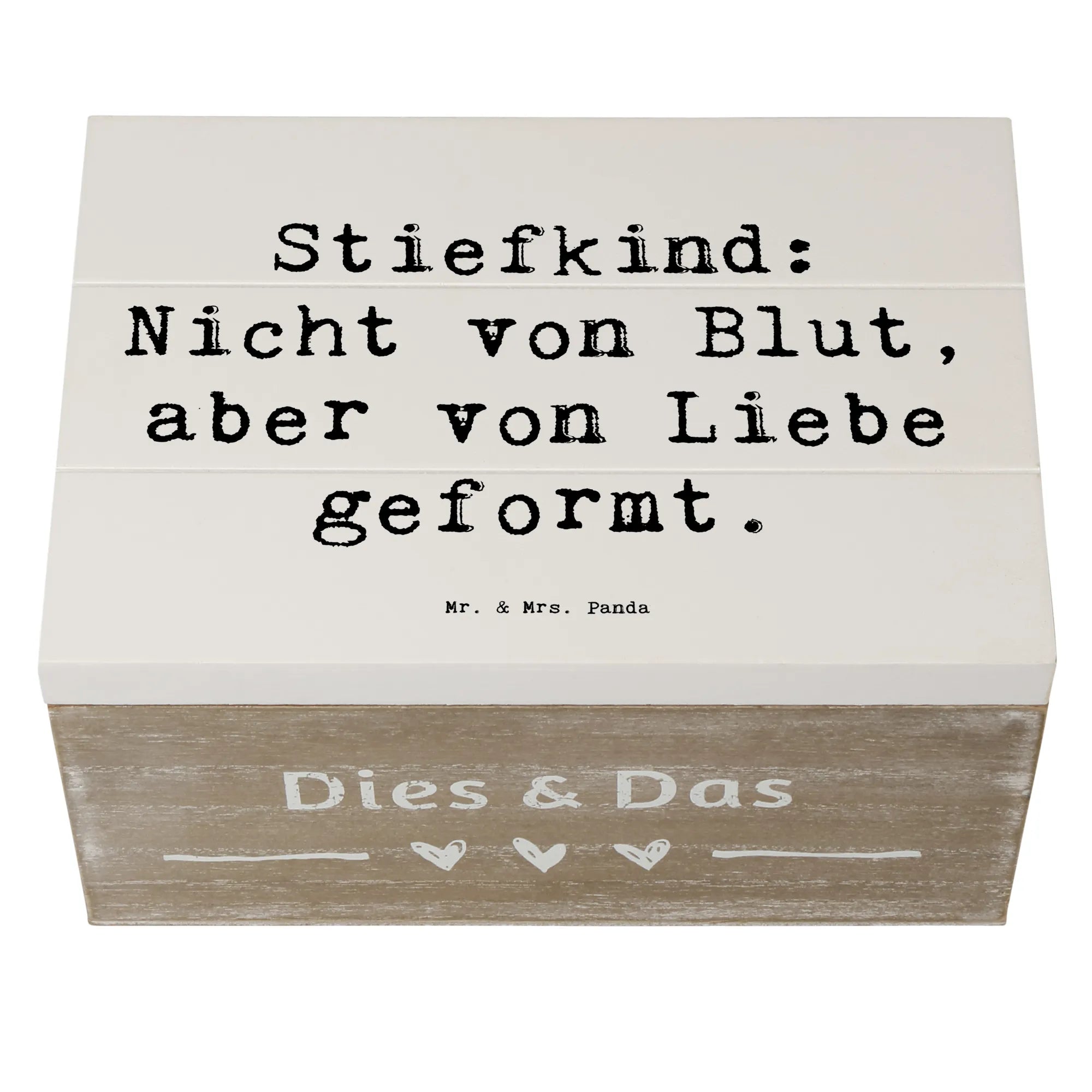 Diese wunderschöne Holzkiste von Mr. & Mrs. Panda ist der perfekte Aufbewahrungsort für all deine besonderen Schätze. Mit dem herzlichen Motiv "Stiefkind – Nicht von Blut, aber von Liebe geformt" aus der charmanten Kollektion für Familie und Verwandte ist sie ein echtes Must-Have für jede moderne Patchworkfamilie.