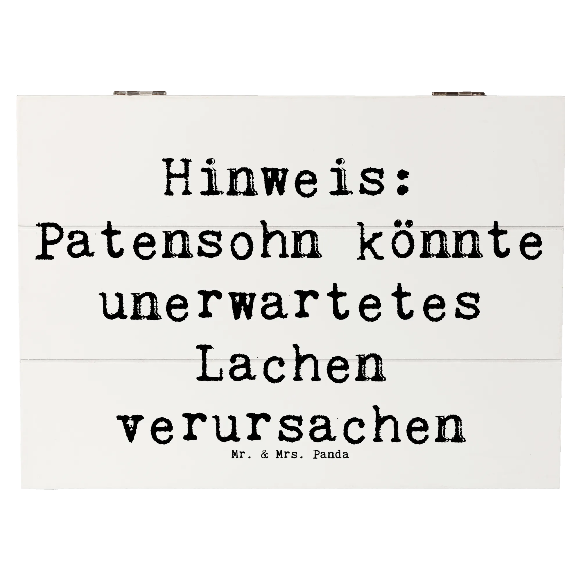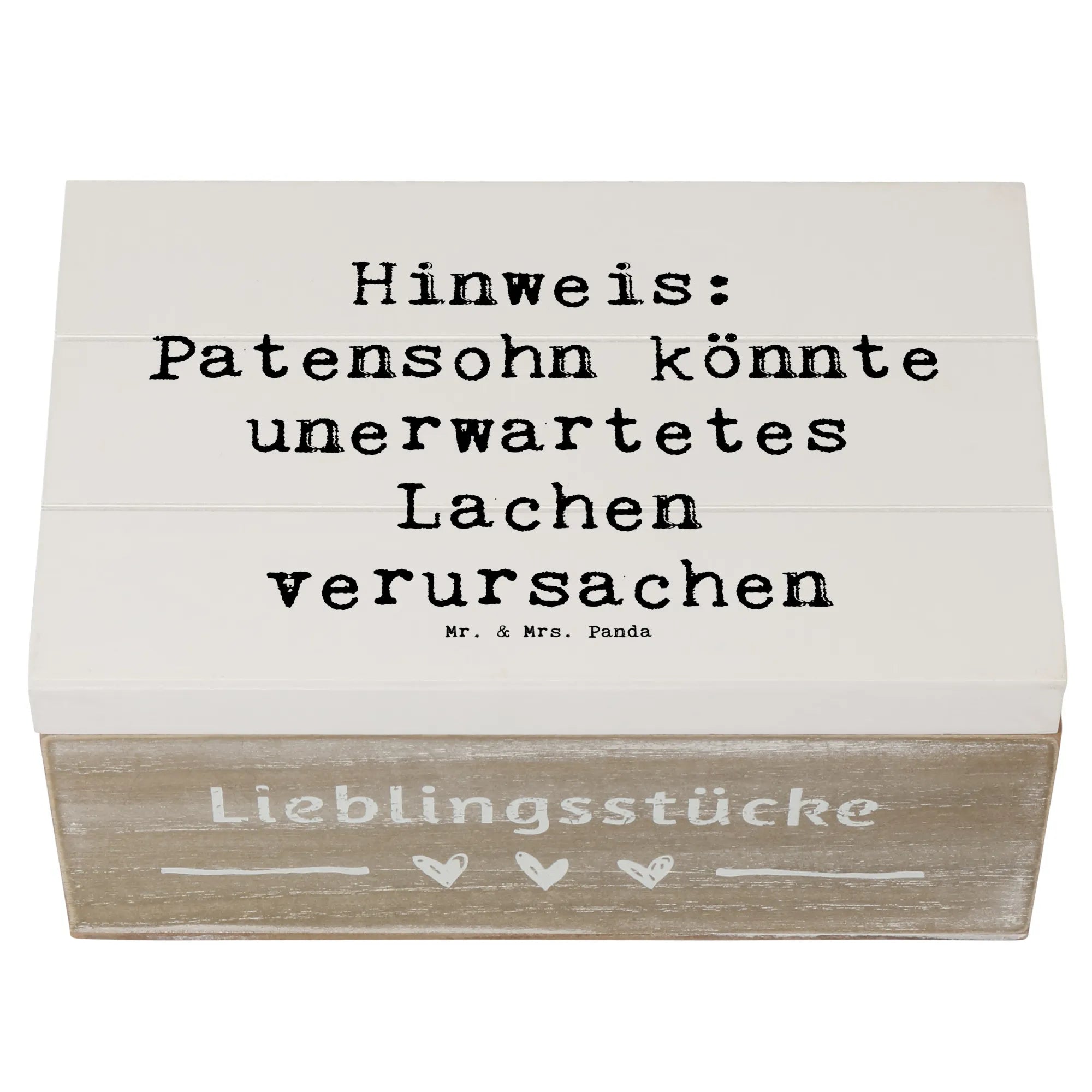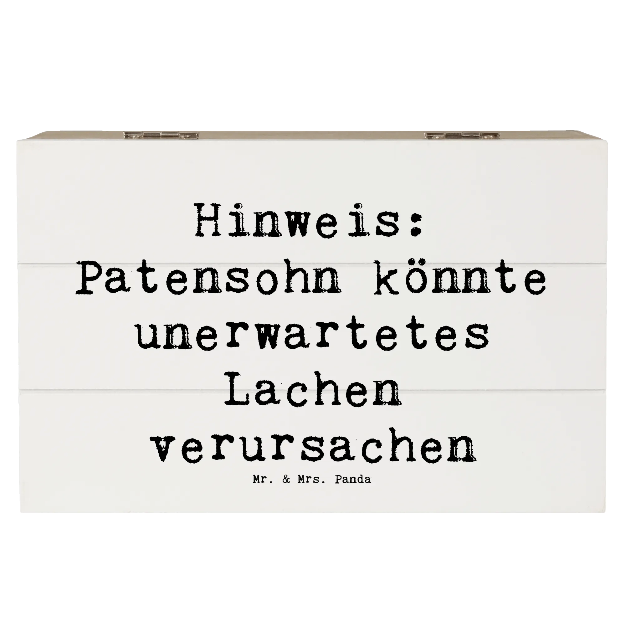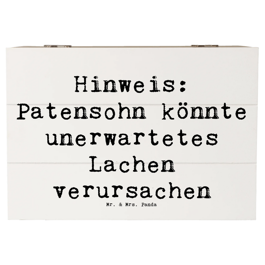Die wunderschöne Holzkiste von Mr. & Mrs. Panda ist das perfekte Geschenk für deinen Patensohn! 🎁 Mit ihrem zauberhaften Motiv und dem Sticker "Hinweis: Patensohn könnte unerwartetes Lachen verursachen" bringt sie garantiert ein Lächeln auf das Gesicht des Beschenkten.