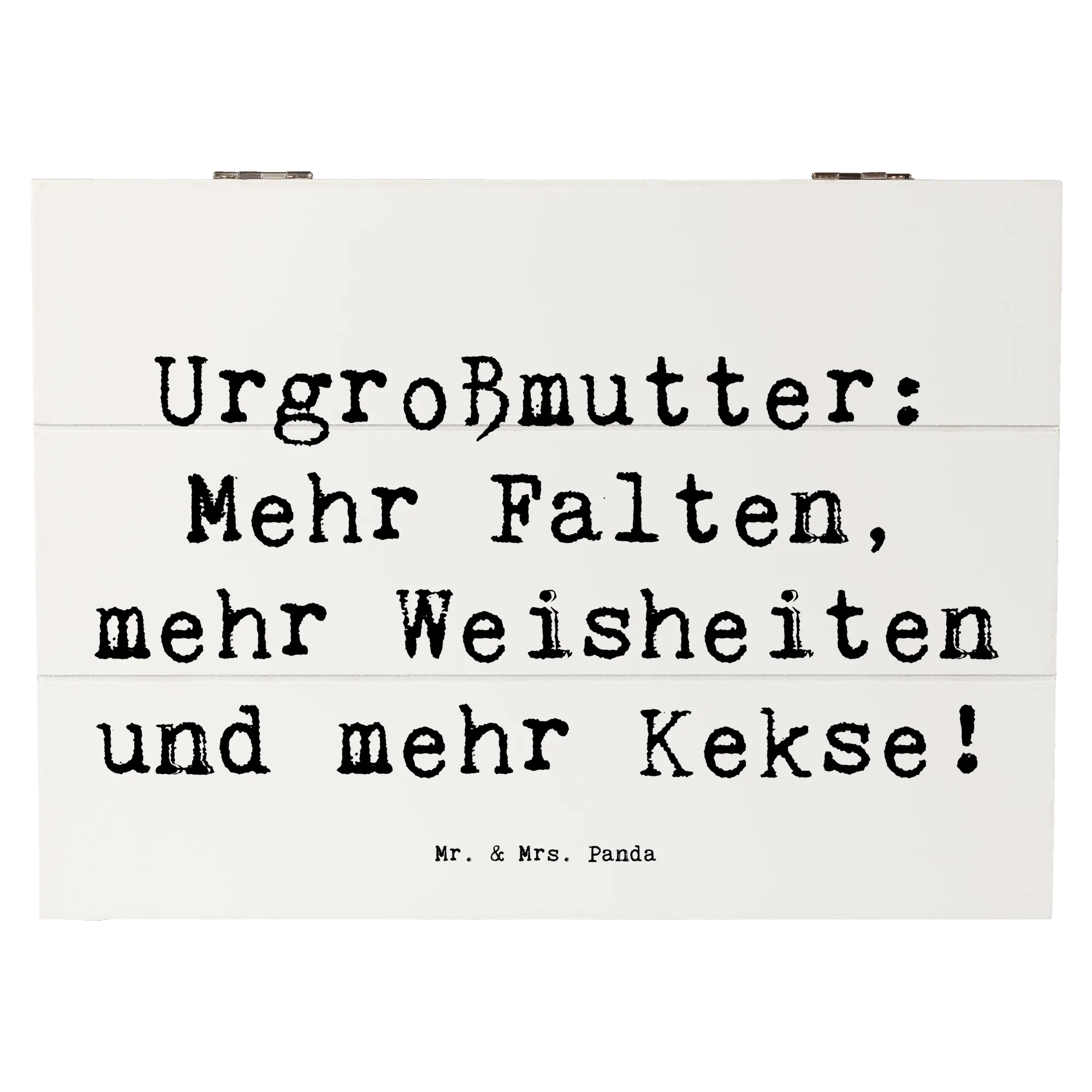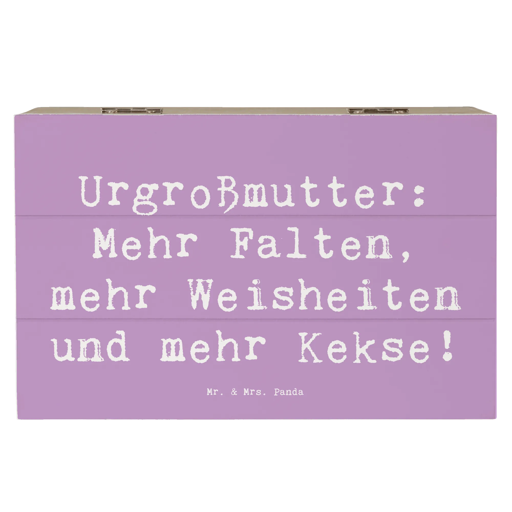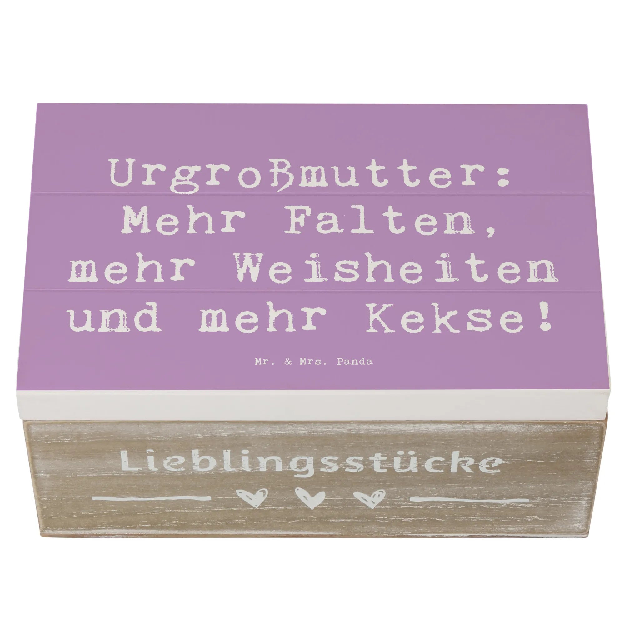 Die Holzkiste "Urgroßmutter: Mehr Falten, mehr Weisheiten und mehr Kekse!" von Mr. & Mrs. Panda ist das perfekte Geschenk für alle, die ihre Wurzeln ehren und die kostbaren Erinnerungen an die Urgroßmutter lebendig halten möchten. Diese wunderschöne Holzkiste ist nicht nur ein Blickfang, sondern auch ein idealer Aufbewahrungsort für Schätze, Erinnerungen und Traditionen, die von Generation zu Generation weitergegeben werden. Mit einem charmanten Design und einem liebevollen Spruch, der das Herz erwärmt, ist sie ein wunderbares Familienerbstück.