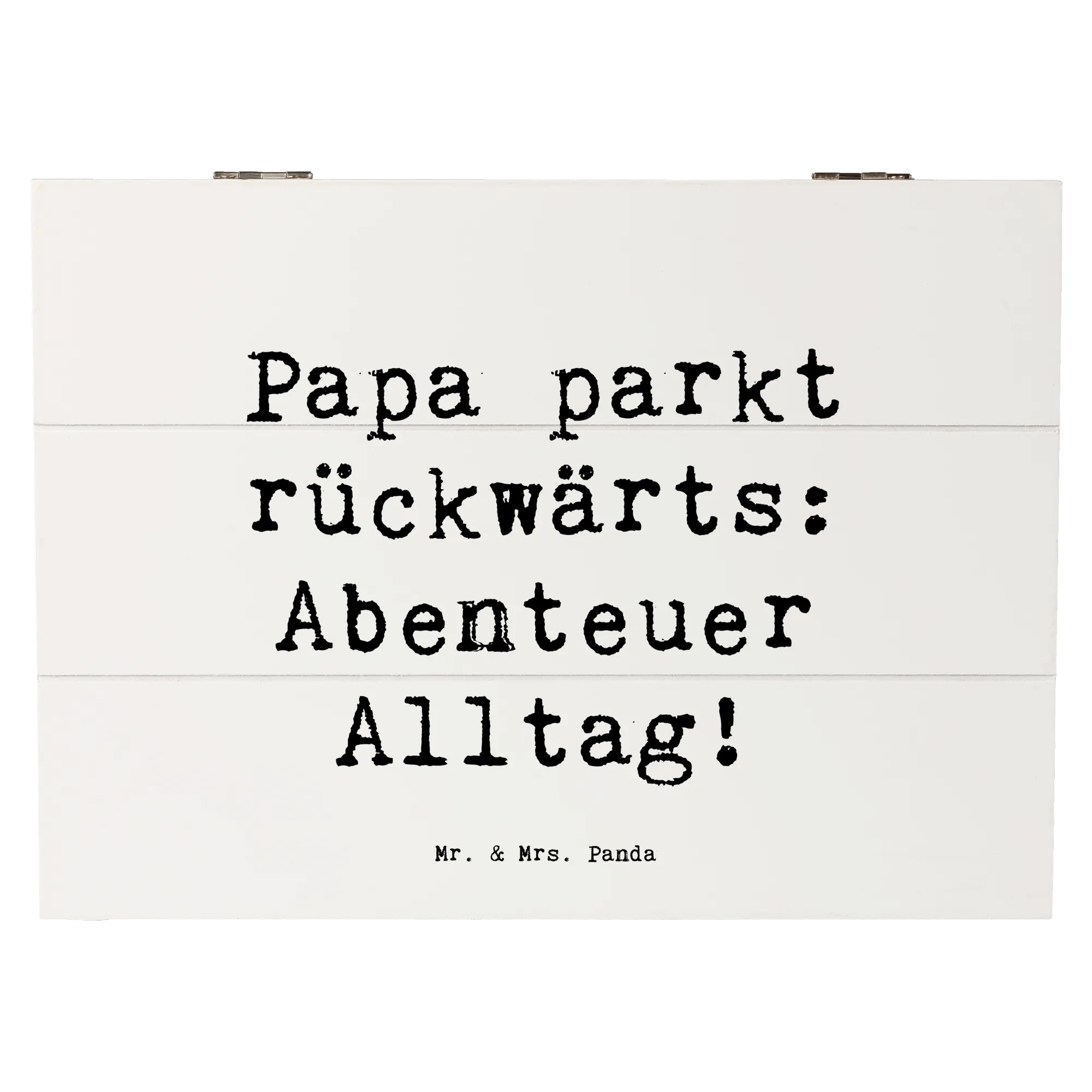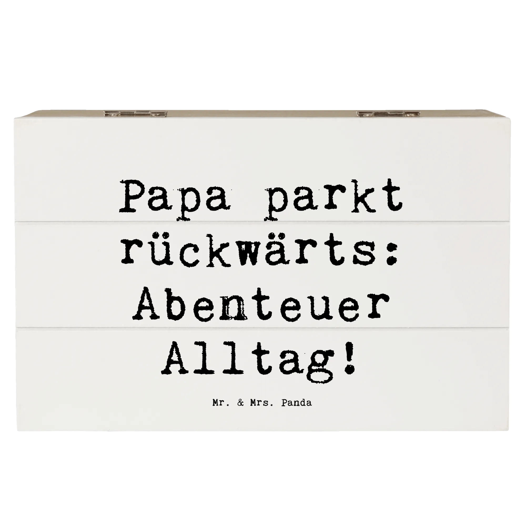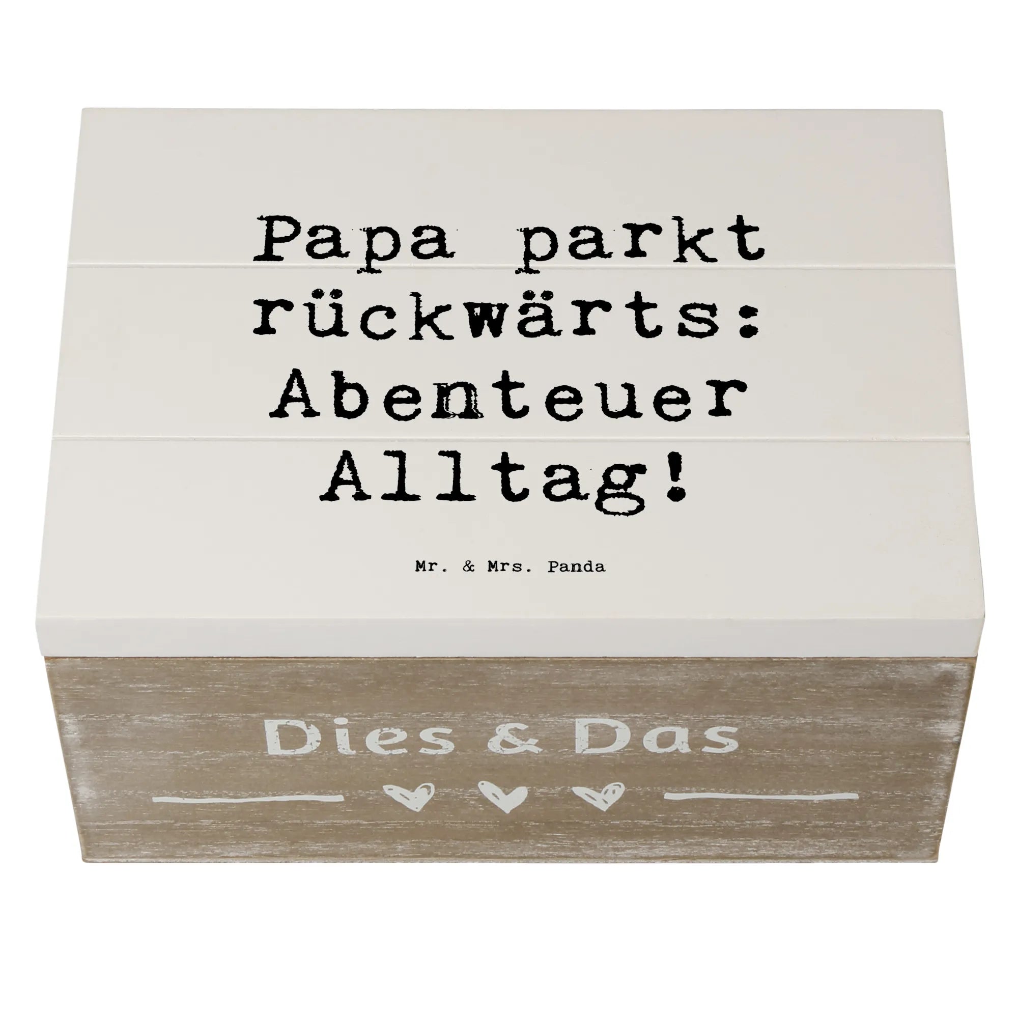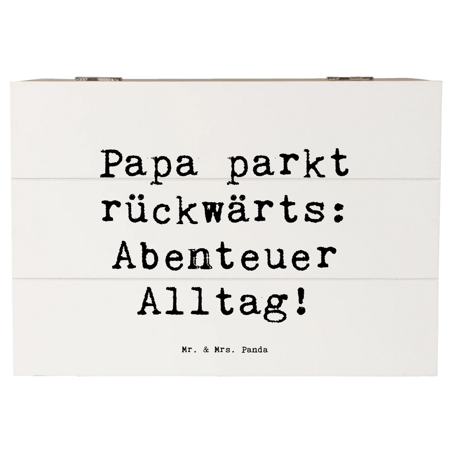 Entdecke die wunderschöne Holzkiste von Mr. & Mrs. Panda, die das perfekte Geschenk für moderne Väter und ihre Familien ist. Diese liebevoll gestaltete Erinnerungskiste ist mehr als nur eine einfache Aufbewahrungsbox. Sie ist der ideale Platz, um die kostbarsten Schätze Deines Lebens sicher zu verwahren – sei es für Fotos von besonderen Momenten, Erinnerungen an die Kindheit oder kleine Geschenke und Souvenirs, die ein Lächeln auf Dein Gesicht zaubern. Mit einem ausgefallenen Design, das mit einem charmanten Spruch "Papa parkt rückwärts: Abenteuer Alltag!" verziert ist, wird diese Kiste zum besonderen Hingucker in Deinem Zuhause.