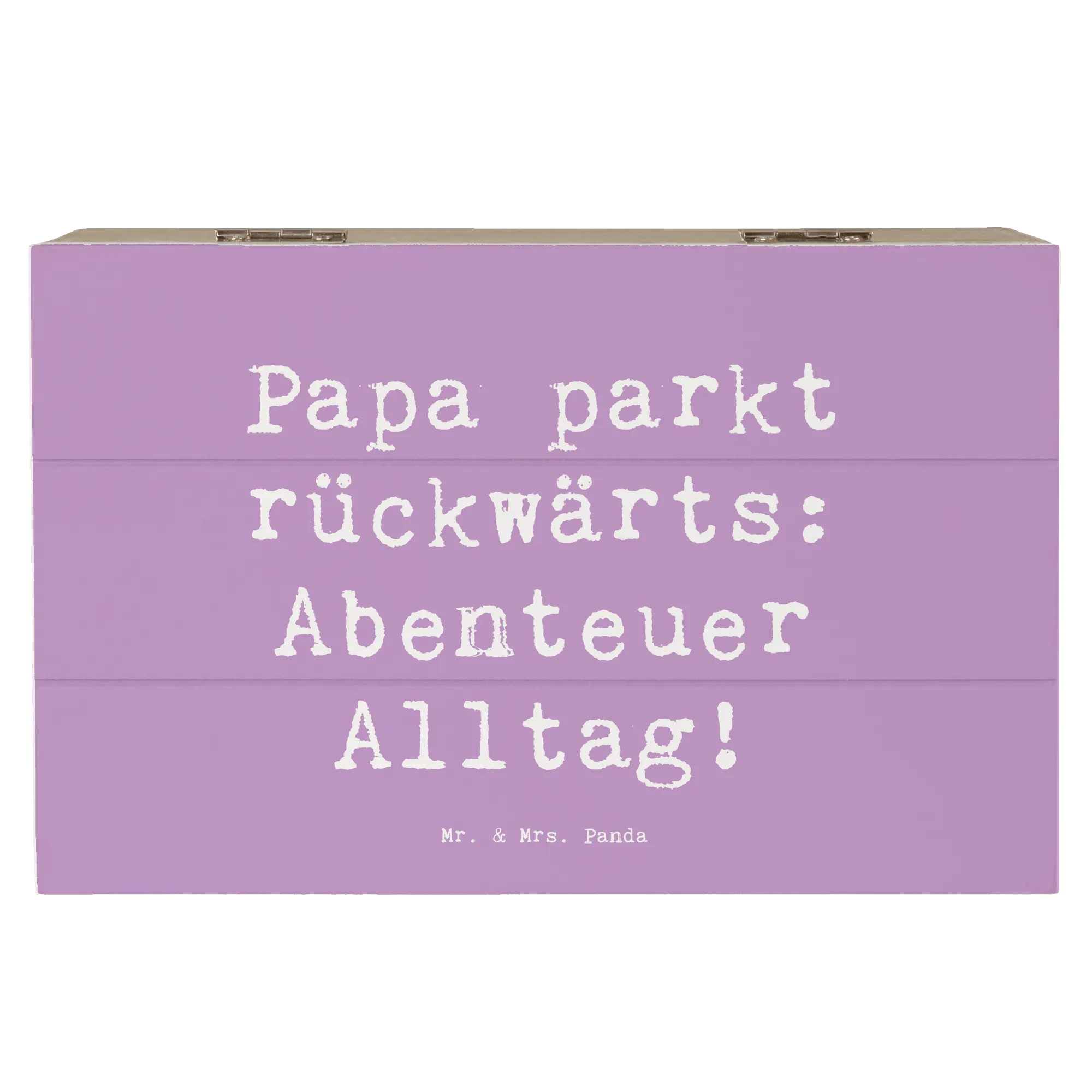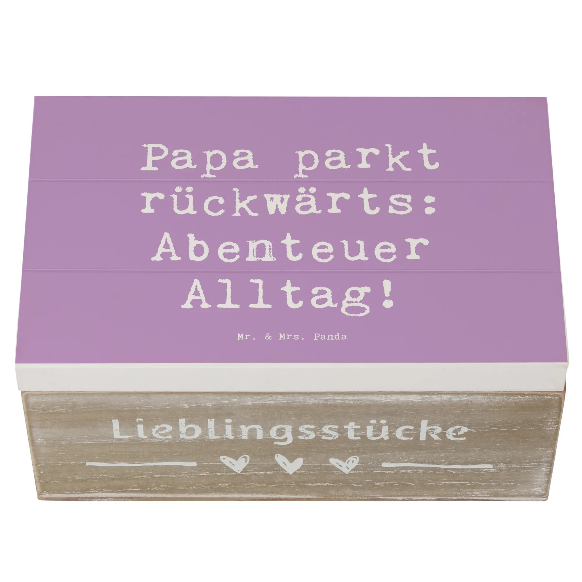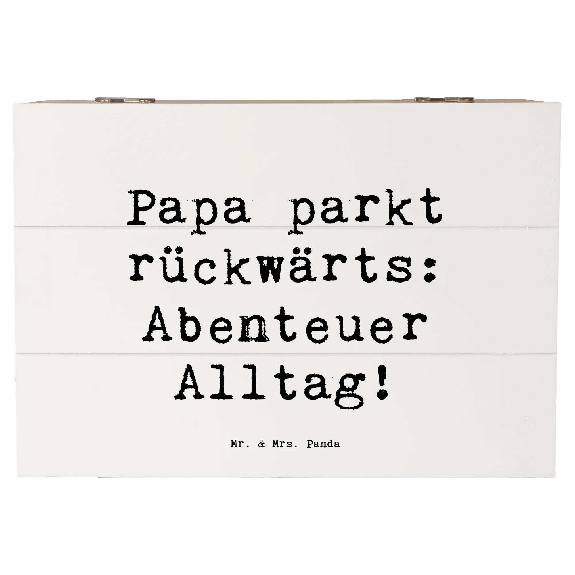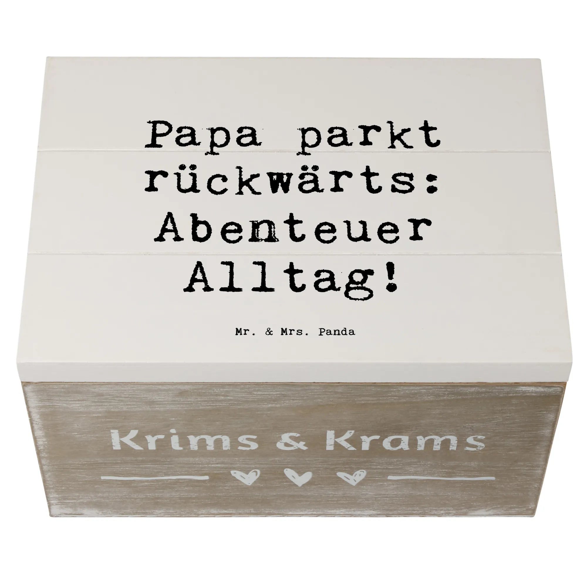 Entdecke die wunderschöne Holzkiste von Mr. & Mrs. Panda, die das perfekte Geschenk für moderne Väter und ihre Familien ist. Diese liebevoll gestaltete Erinnerungskiste ist mehr als nur eine einfache Aufbewahrungsbox. Sie ist der ideale Platz, um die kostbarsten Schätze Deines Lebens sicher zu verwahren – sei es für Fotos von besonderen Momenten, Erinnerungen an die Kindheit oder kleine Geschenke und Souvenirs, die ein Lächeln auf Dein Gesicht zaubern. Mit einem ausgefallenen Design, das mit einem charmanten Spruch "Papa parkt rückwärts: Abenteuer Alltag!" verziert ist, wird diese Kiste zum besonderen Hingucker in Deinem Zuhause.