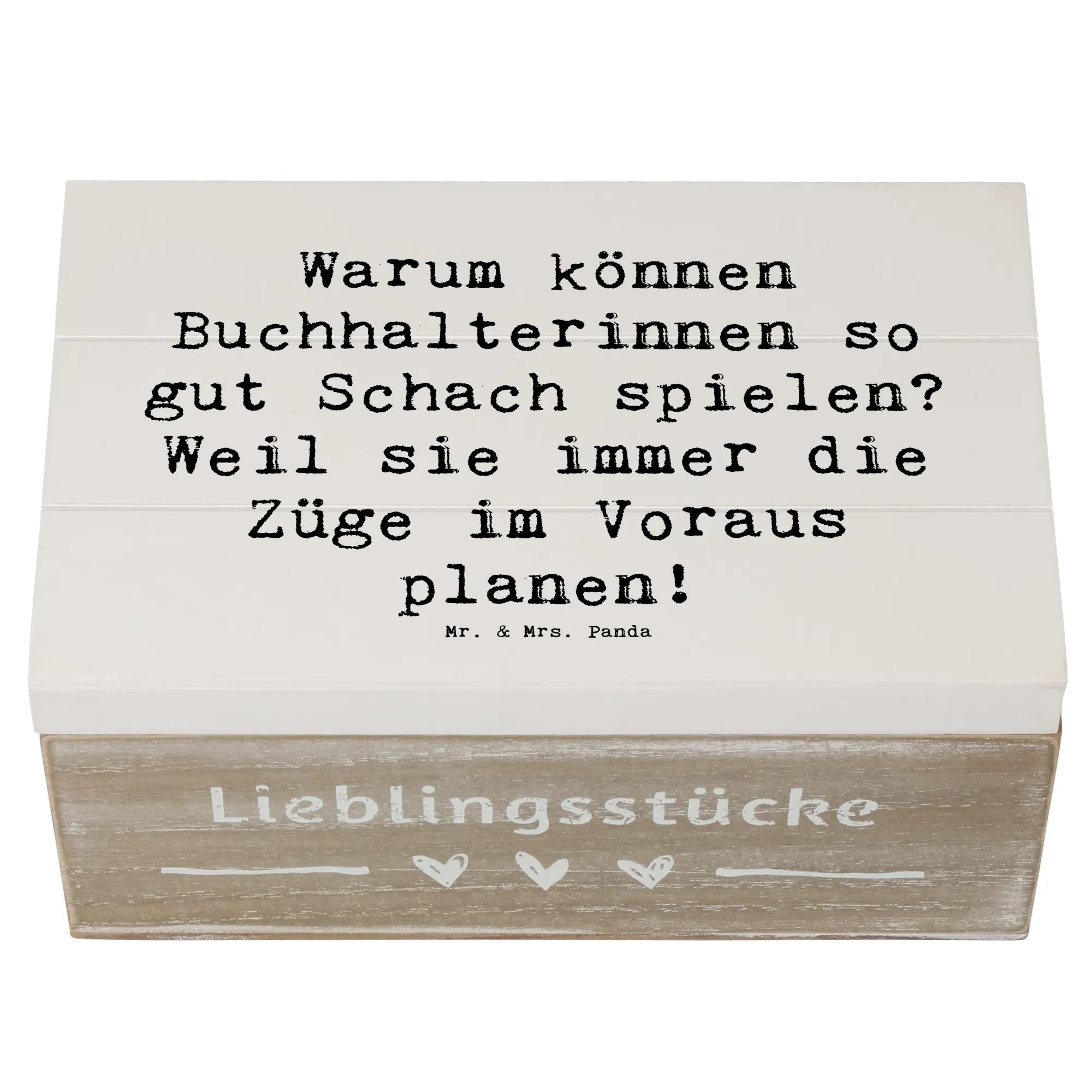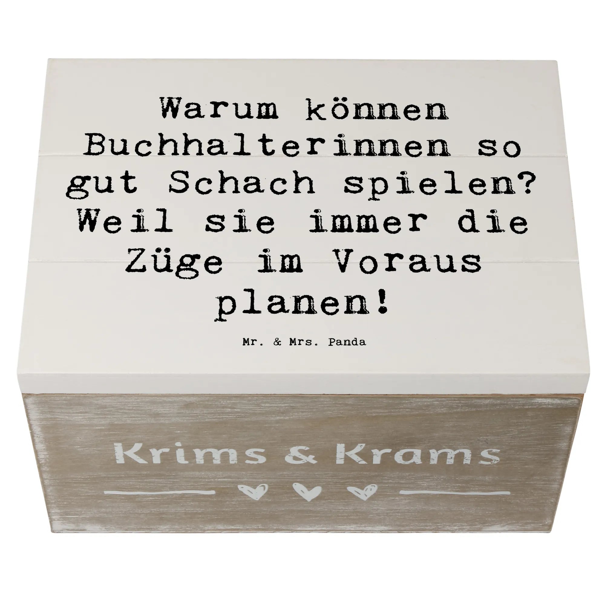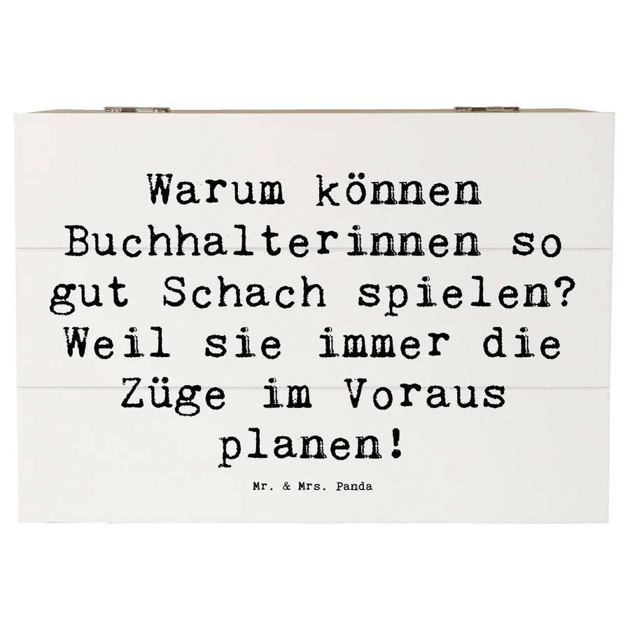 Holzkiste Spruch Warum können Buchhalterinnen so gut Schach spielen? Weil sie immer die Züge im Voraus planen! - 22 x 15 cm - Weiß