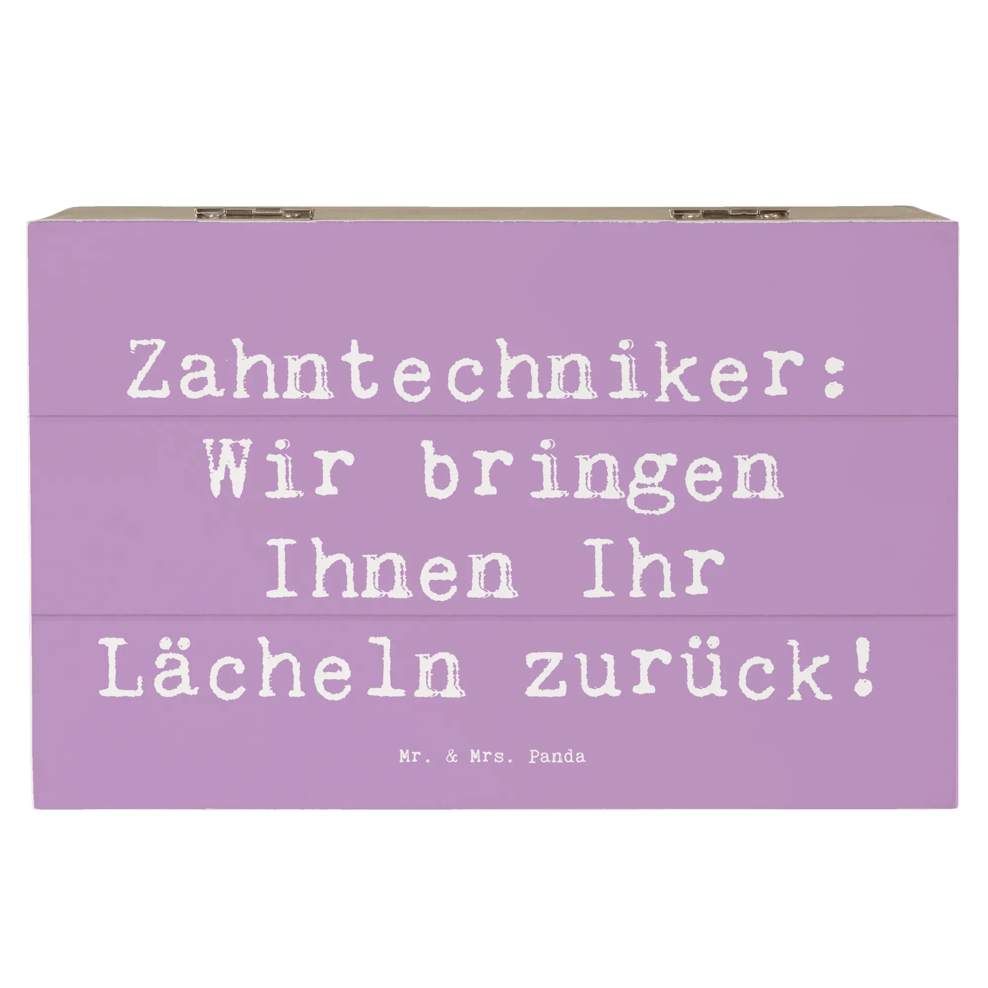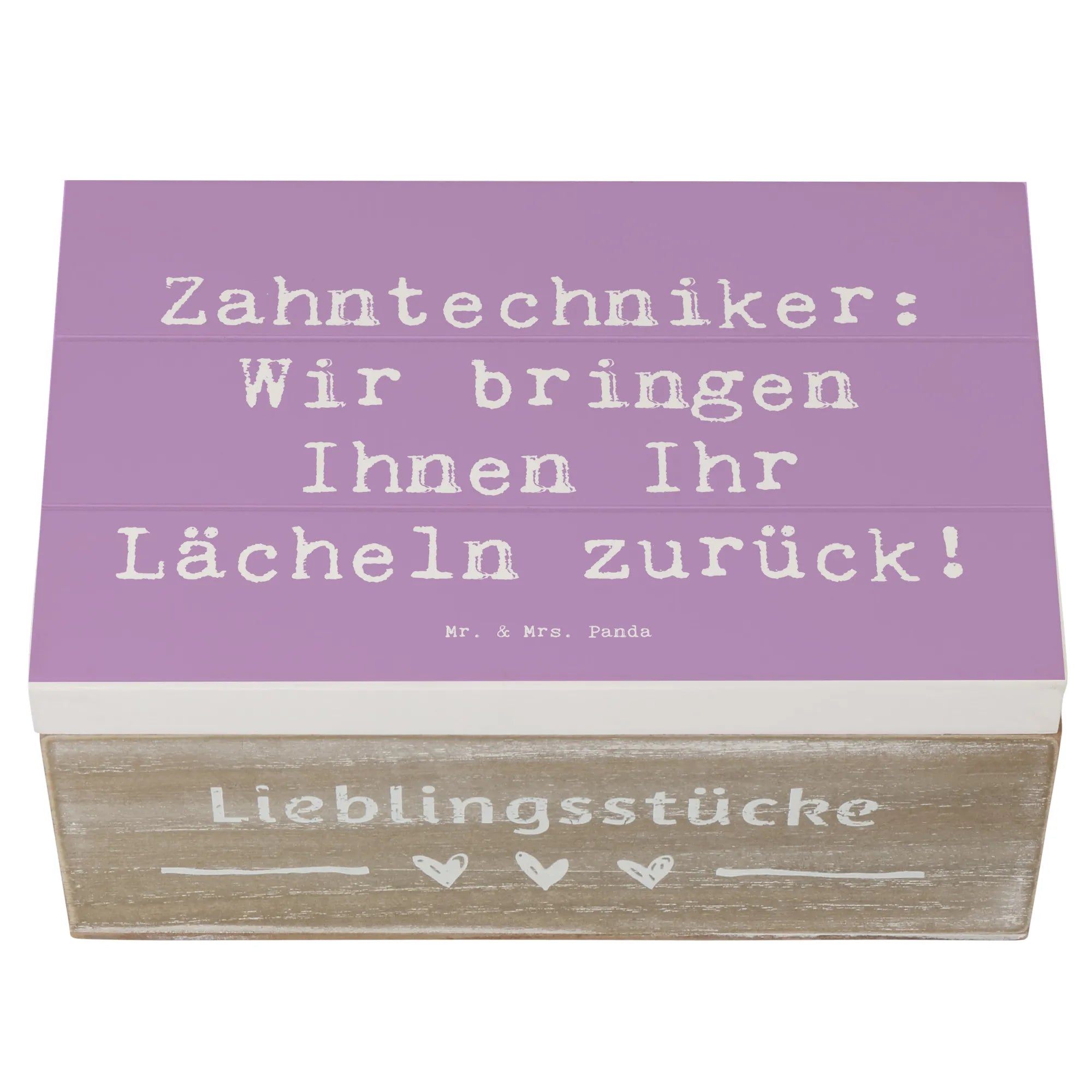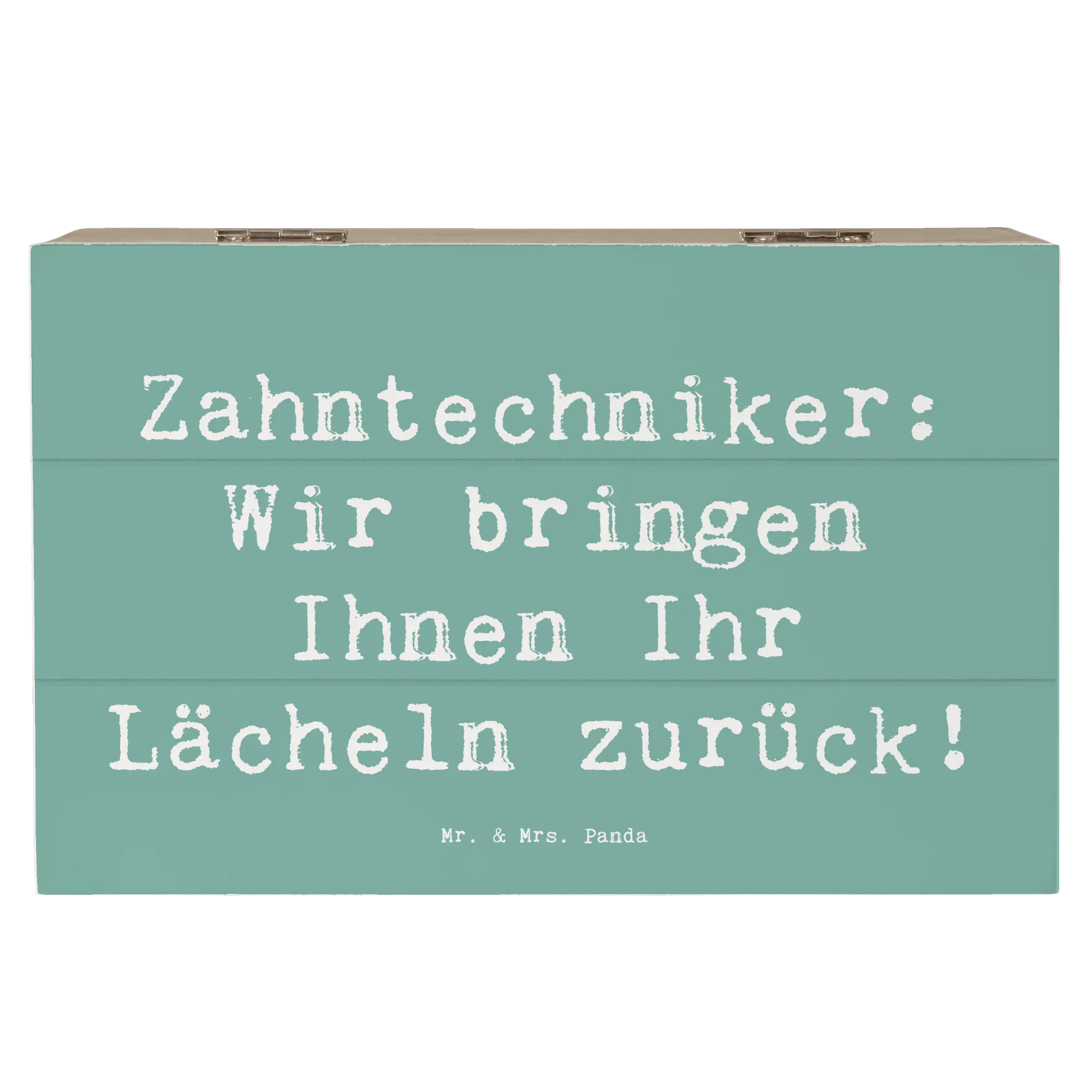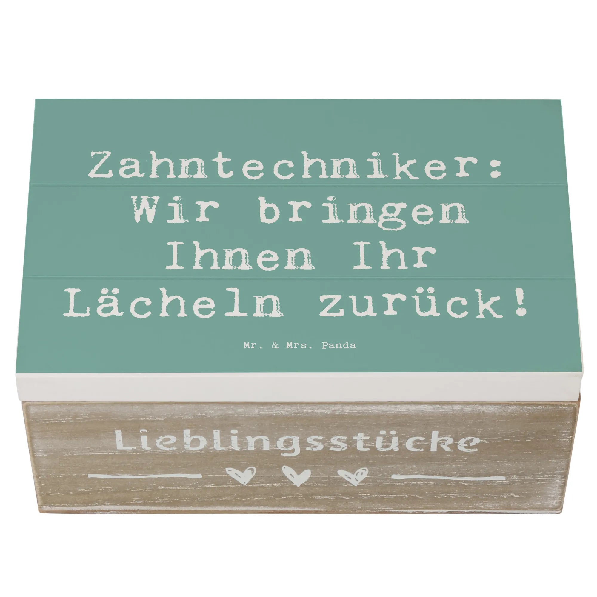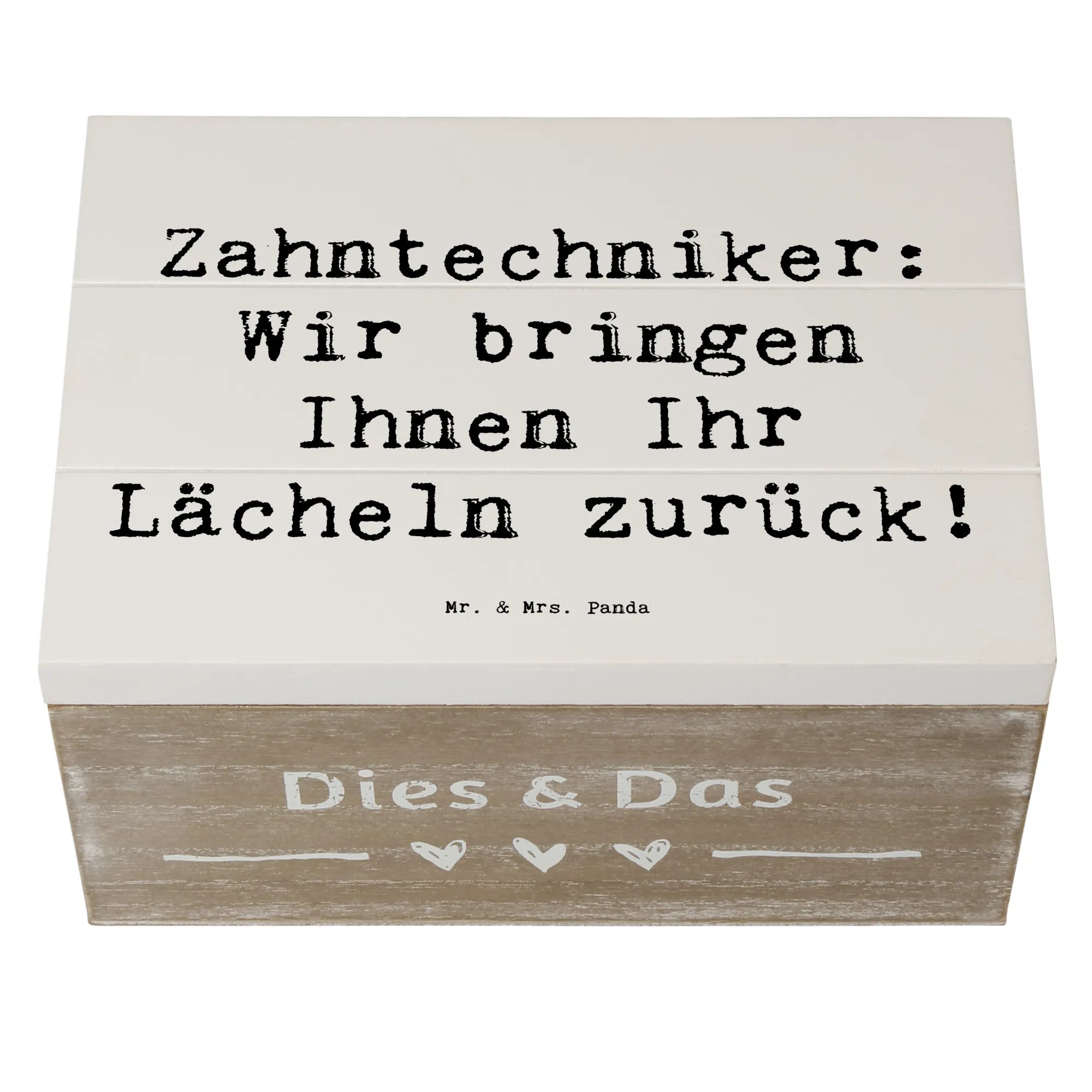 Die wunderschöne Holzkiste "Zahntechniker: Wir bringen Ihnen Ihr Lächeln zurück!" von Mr. & Mrs. Panda ist das perfekte Geschenk für alle, die die Kunst der Zahntechnik feiern möchten. Diese einzigartige Kiste ist mehr als nur eine Aufbewahrungsbox; sie ist ein liebevolles Andenken an bedeutende Momente und wird sicher jedem, der mit Leidenschaft in diesem Beruf arbeitet, ein Lächeln ins Gesicht zaubern. Mit den Maßen 190 mm x 120 mm x 100 mm bietet sie ausreichend Platz für all Deine Schätze, sei es für Erinnerungskarten, Fotos oder andere kleine, wertvolle Dinge.