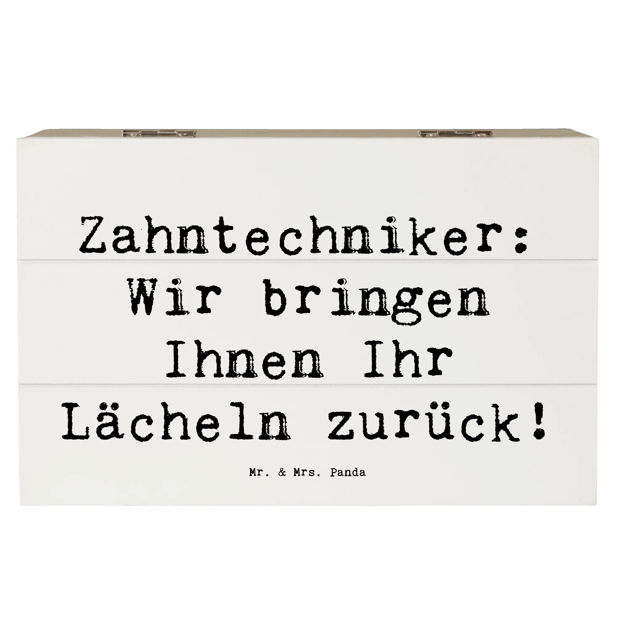 Mit dem liebevoll gestalteten Spruch 'Zahntechniker: Wir bringen Ihnen Ihr Lächeln zurück!' wird diese Kiste zu einem ganz besonderen Highlight in Deinem Zuhause. Diese Erinnerungskiste eignet sich hervorragend für festliche Anlässe wie Kindheit, Kommunion oder Konfirmation. Auch Fotografien und kleine Schätze finden hier ihren Platz!
