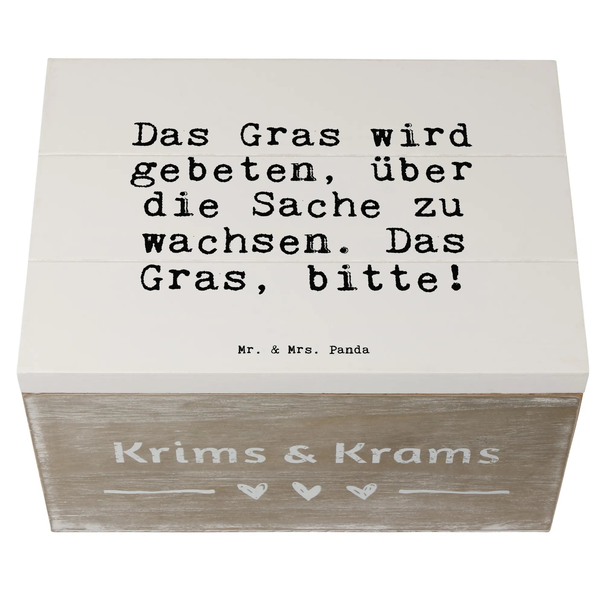 Die wunderschöne Holzkiste von Mr. & Mrs. Panda ist das perfekte Geschenk für jeden Anlass. Bedruckt mit dem liebevollen Spruch "Das Gras wird gebeten, über die Sache zu wachsen. Das Gras, bitte!" ist sie ideal für Menschen, die einen Neuanfang wagen möchten oder Trost nach Liebeskummer suchen.