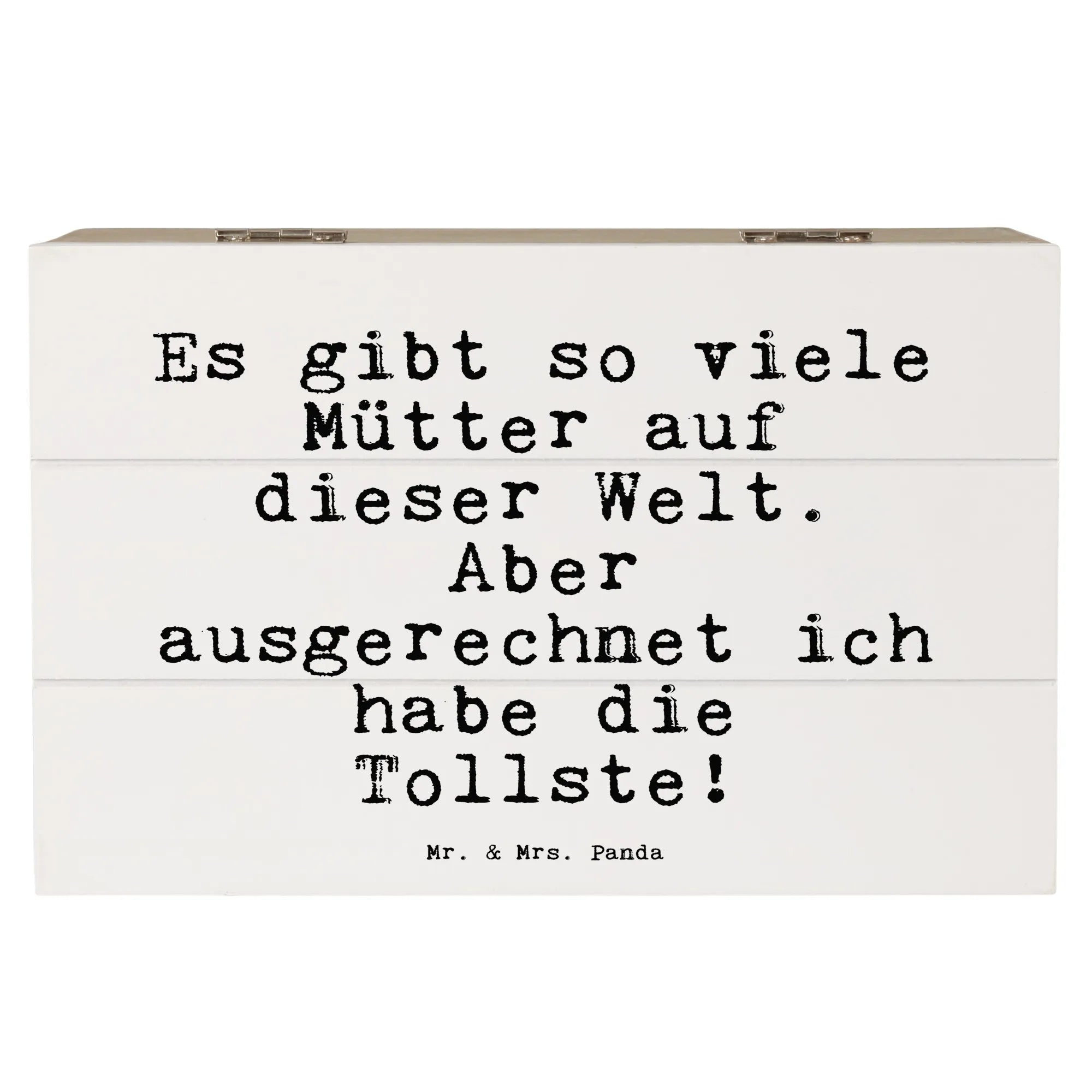 Eine Holzkiste für die tollste Mama: Diese zauberhafte Holzkiste von Mr. & Mrs. Panda trägt den liebevollen Spruch „Es gibt so viele Mütter auf dieser Welt. Aber ausgerechnet ich habe die Tollste!“ und ist das perfekte Geschenk für Muttertag, Geburtstag oder einfach als Dankeschön. Die Aufbewahrungsbox verbindet Gefühl und Funktion und bietet Platz für Erinnerungen, Fotos und kleine Kostbarkeiten.