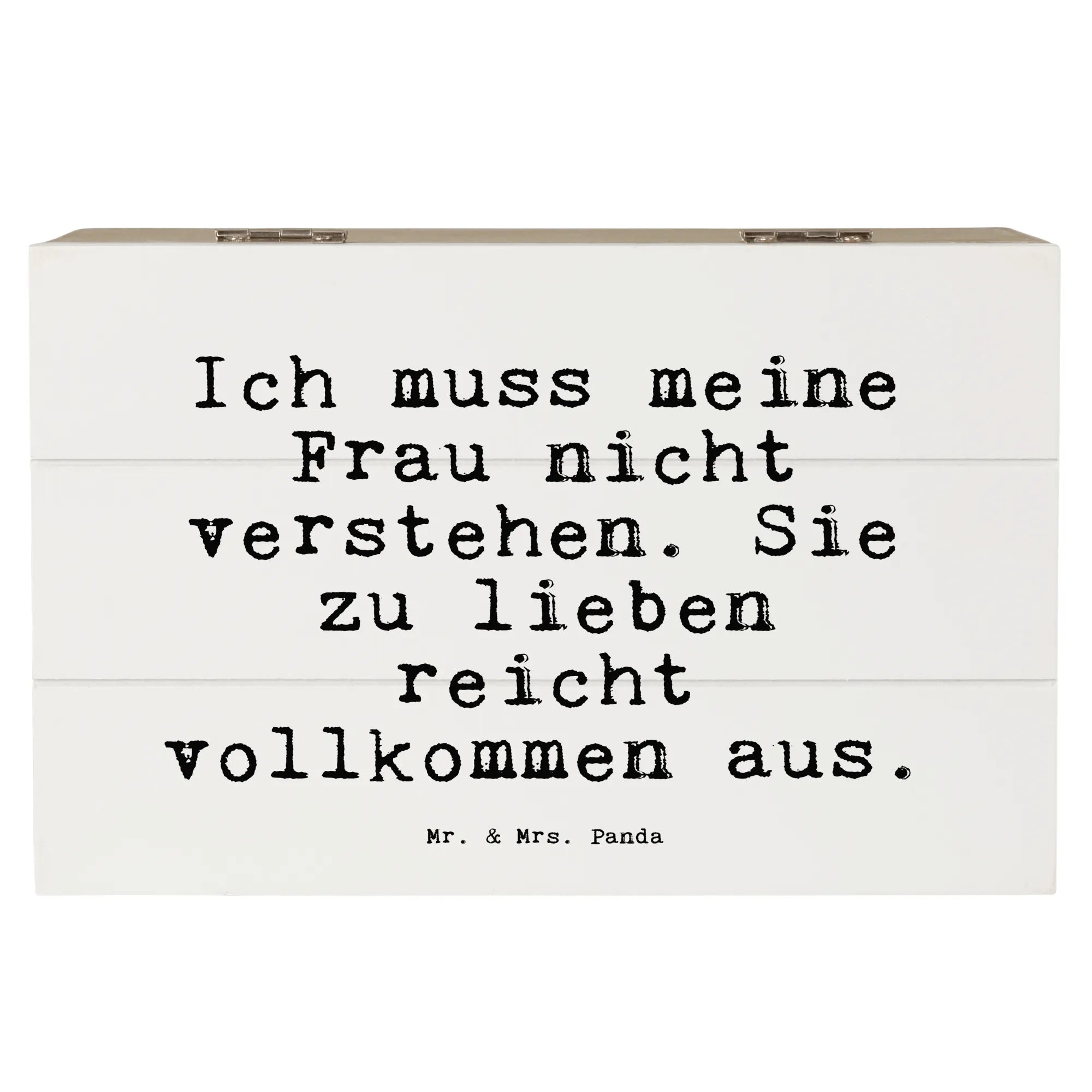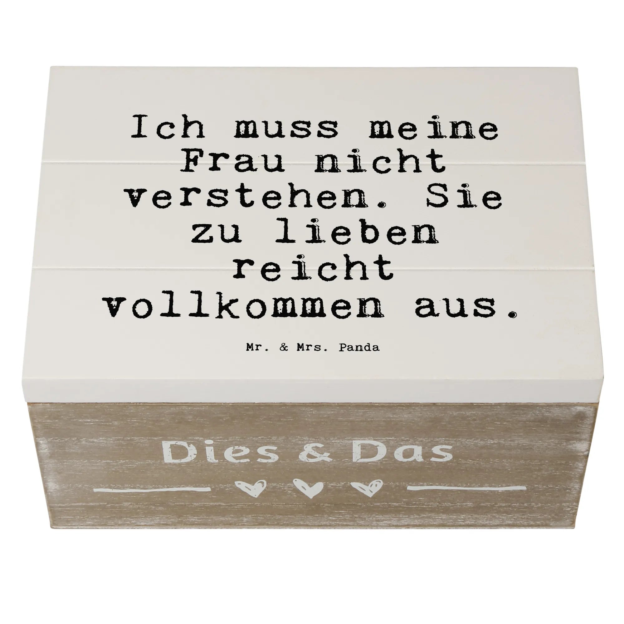 Du suchst das perfekte Geschenk für deinen Lieblingsmenschen? Diese bezaubernde Holzkiste von Mr. & Mrs. Panda ist nicht nur funktional, sondern auch ein echter Blickfang! Mit dem liebevollen Spruch "Ich muss meine Frau nicht verstehen. Sie zu lieben reicht vollkommen aus." zaubert sie jedem ein Lächeln ins Gesicht.