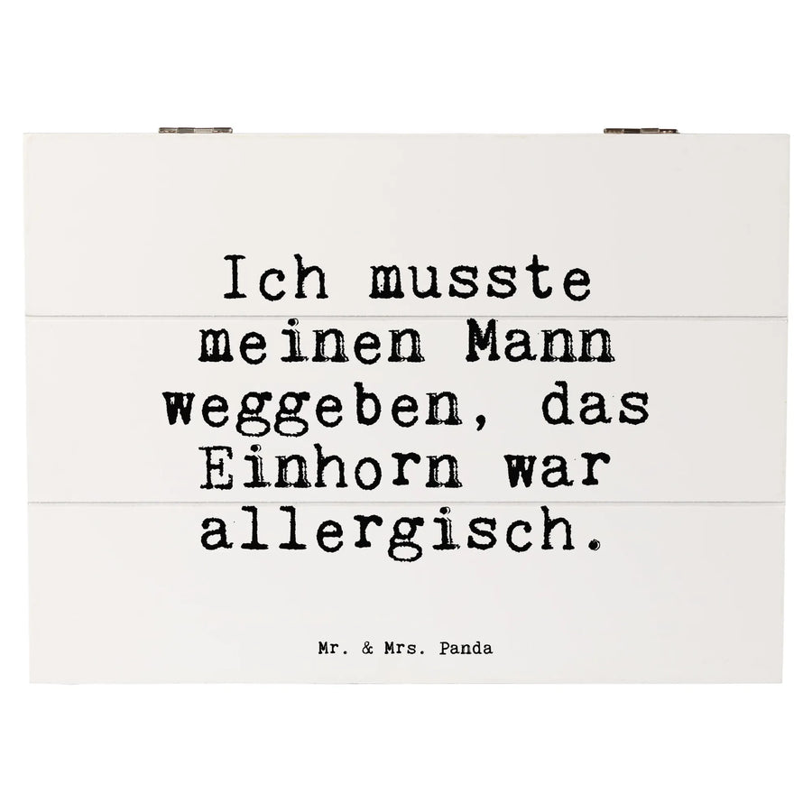 Die wunderschöne Holzkiste von Mr. & Mrs. Panda mit dem witzigen Spruch "Ich musste meinen Mann weggeben, das Einhorn war allergisch." ist der perfekte Aufbewahrungsort für all deine wertvollen Schätze!