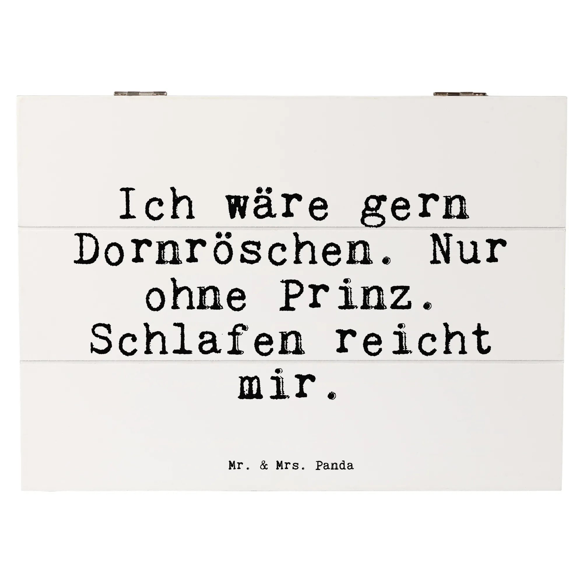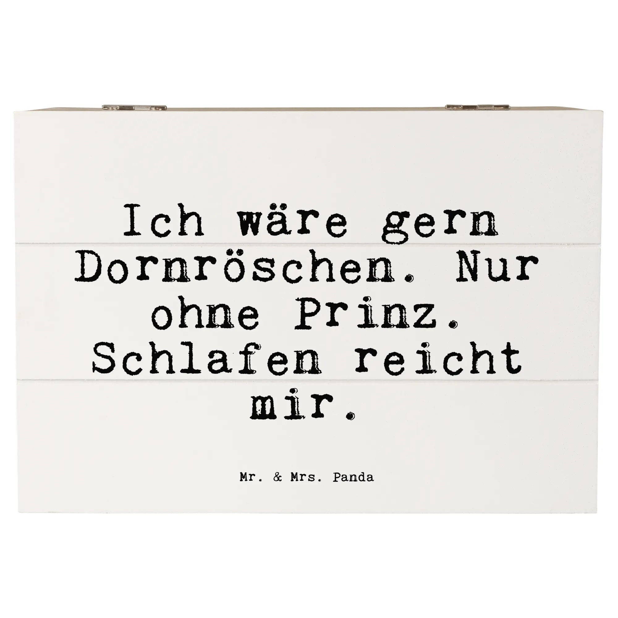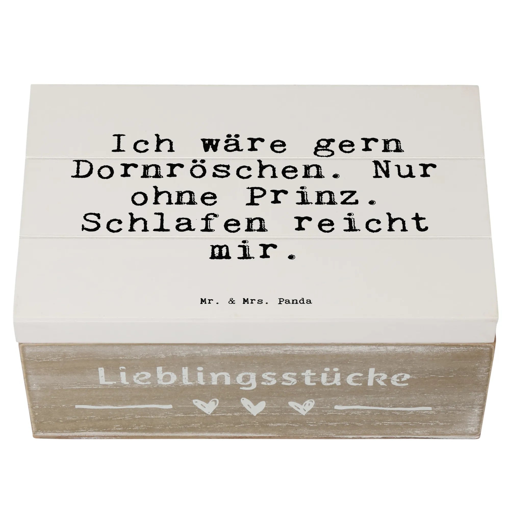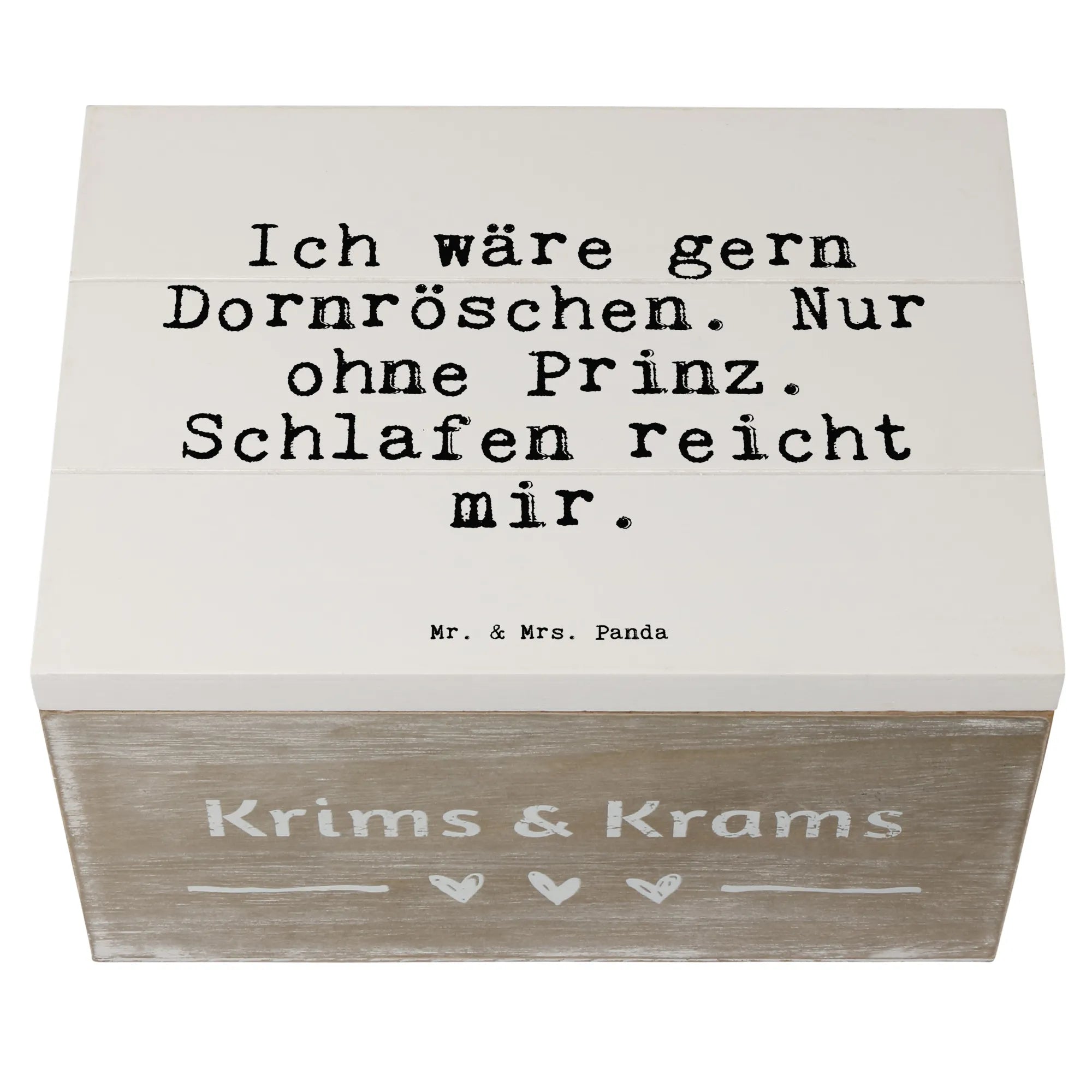 Entdecke die perfekte Möglichkeit, deine schönsten Erinnerungen stilvoll zu bewahren mit der zauberhaften Holzkiste "Ich wäre gern Dornröschen. Nur ohne Prinz. Schlafen reicht mir." von Mr. & Mrs. Panda.