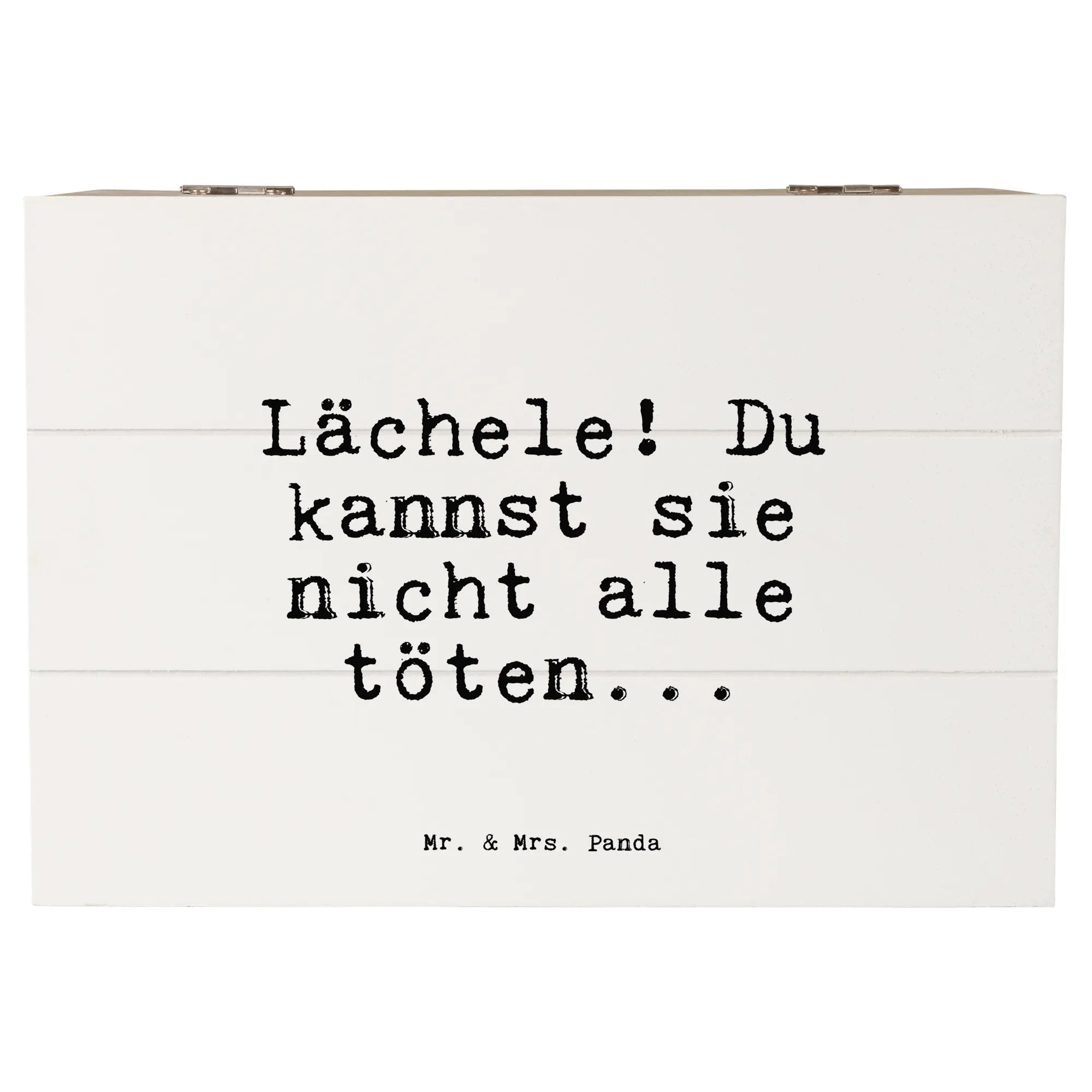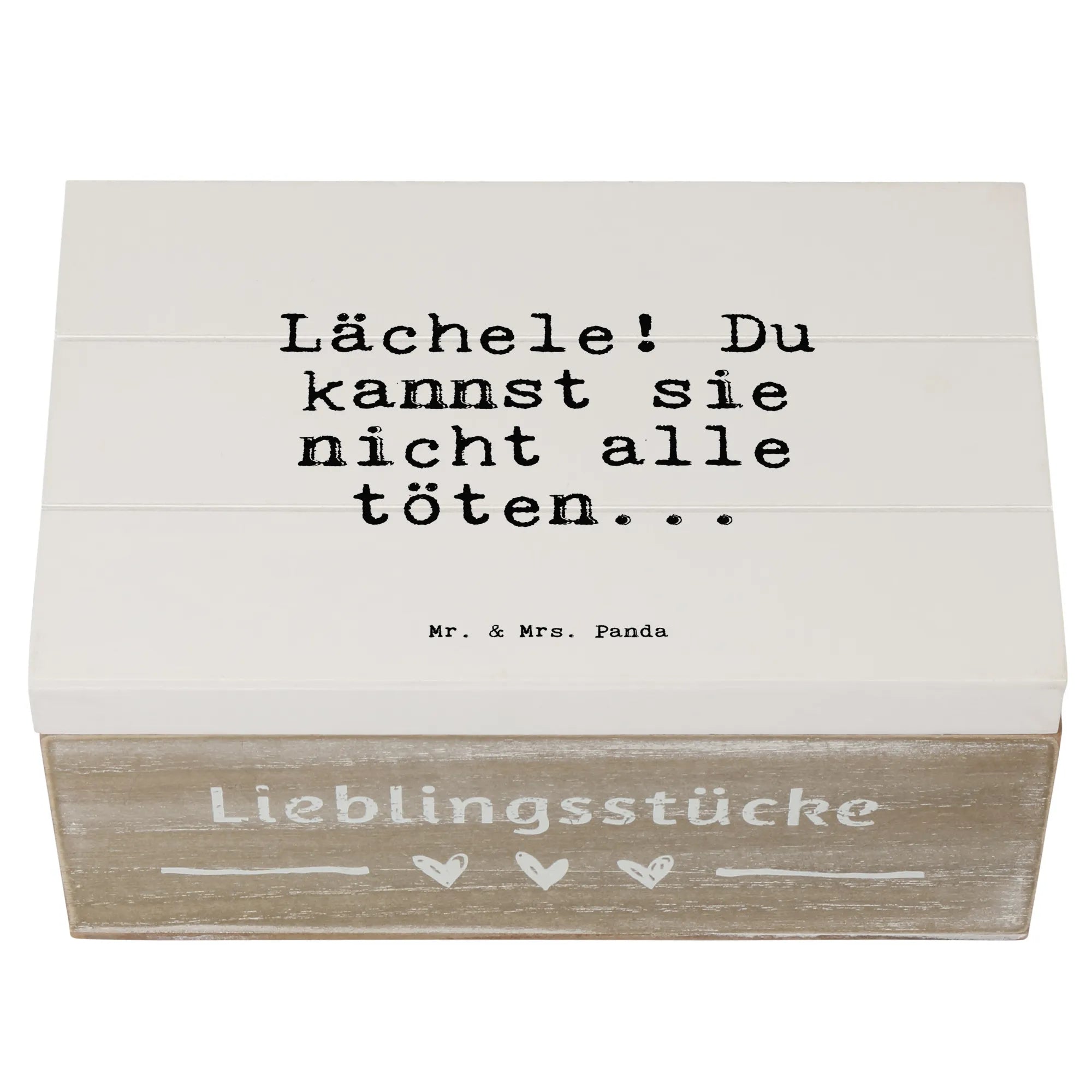 Mr. & Mrs. Panda Holzkiste mit Spruch „Lächle! Du kannst sie nicht alle töten...“ – eine humorvolle und praktische Holzbox, die sofort ins Auge fällt. Dieser freche Spruch auf dem Deckel sorgt für Lacher und passt perfekt zu Menschen mit schwarzem Humor oder denen, die das Leben mit einem Augenzwinkern nehmen.