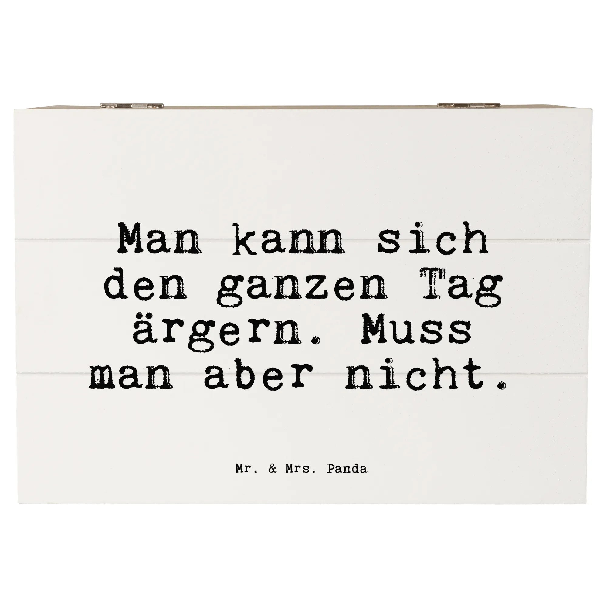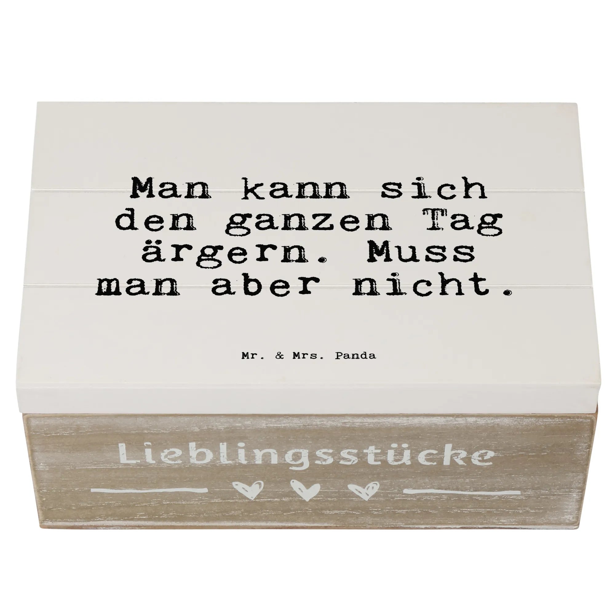 Die Holzkiste mit dem lustigen Spruch „Man kann sich den ganzen Tag ärgern. Muss man aber nicht.“ von Mr. & Mrs. Panda ist das perfekte Geschenk für Freunde, Kollegen und Familie. Diese wunderschöne und robuste Holzkiste aus Hartfaser bietet tollen Platz für all die kostbaren Erinnerungen und Schätze, die man im Leben sammelt. Ob Fotos von besonderen Anlässen, kleine Geschenke oder andere persönliche Gegenstände – diese Kiste bewahrt die schönsten Erinnerungen stilvoll auf.