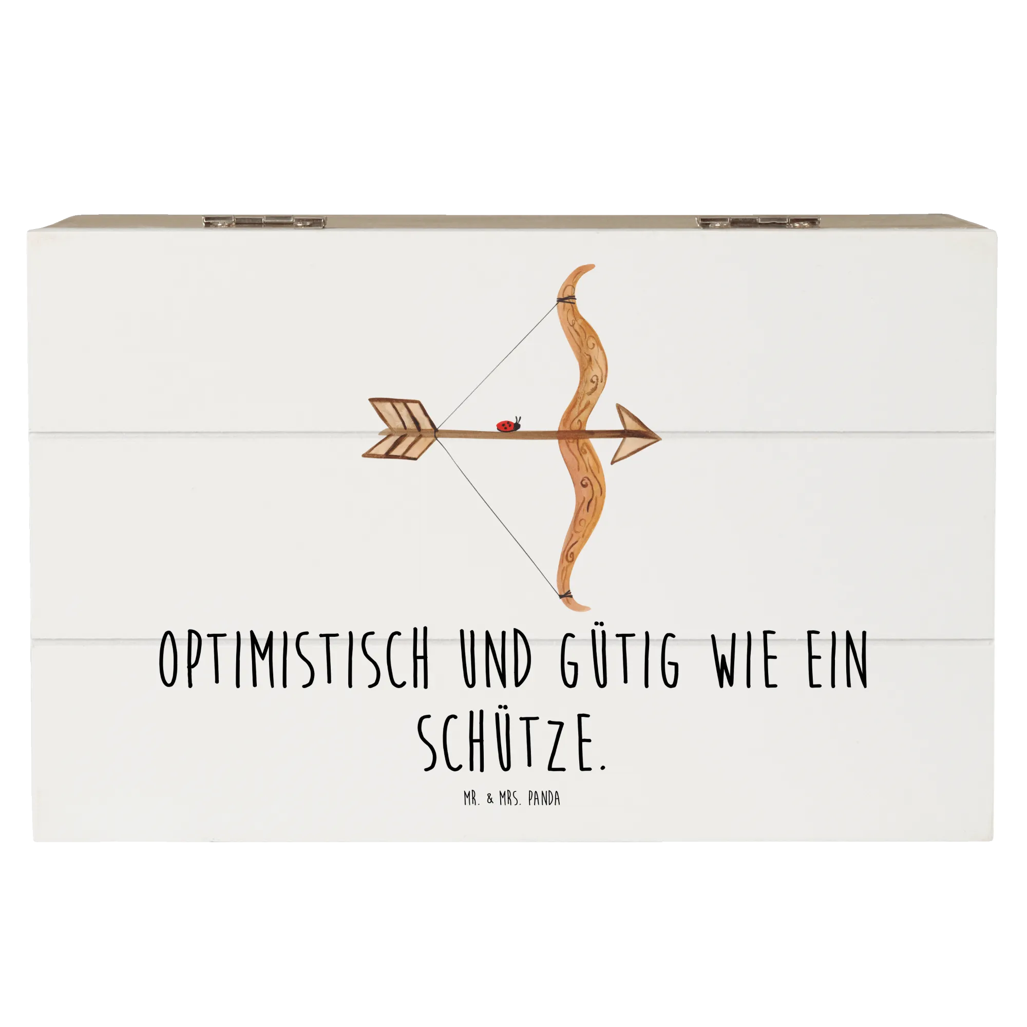 Entdecke die wunderschöne Holzkiste von Mr. & Mrs. Panda, die perfekt für alle Schützen-Geborenen und ihre Lieben ist!