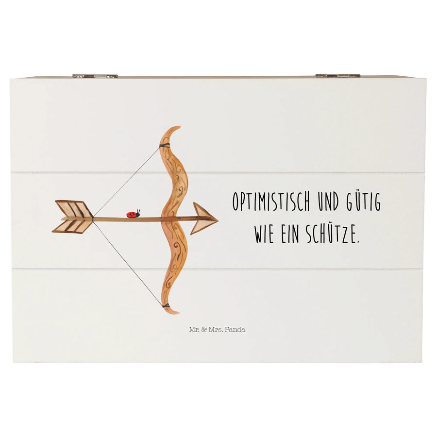 Diese zauberhafte Holzkiste von Mr. & Mrs. Panda ist das perfekte Geschenk für Schützen und Sternzeichen-Liebhaber. Mit einem hübschen Motiv, das den Schützen darstellt, und dem charmanten Slogan "Optimistisch und gütig wie ein Schütze", bietet diese Kiste nicht nur eine wunderbare Möglichkeit, Erinnerungen und Schätze sicher aufzubewahren, sondern auch einen Hauch von Persönlichkeit.