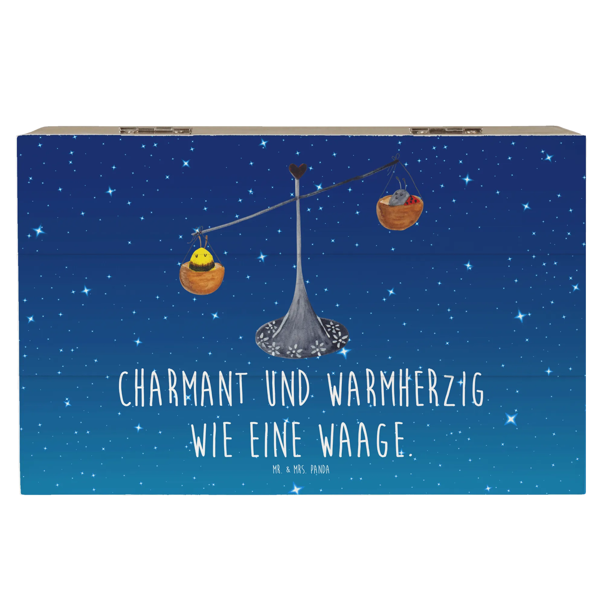 Die wunderschöne Holzkiste mit dem Motiv Sternzeichen Waage von Mr. & Mrs. Panda ist der perfekte Begleiter für alle, die nach einem liebevollen und persönlichen Geschenk suchen. Diese robuste Aufbewahrungsbox ist nicht nur funktional, sondern auch ein wahrer Blickfang.