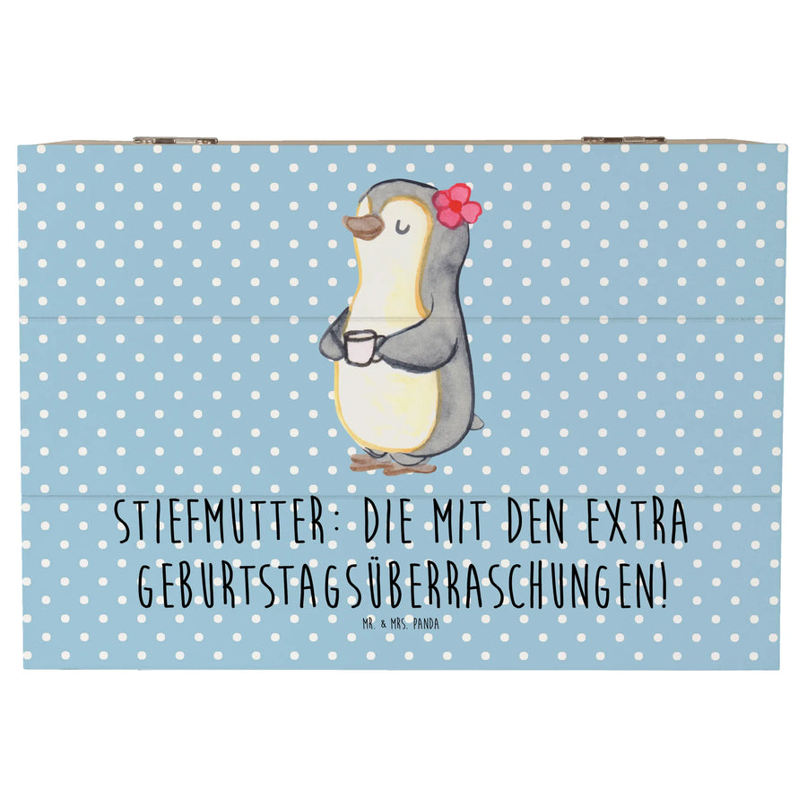 Die wunderschöne Holzkiste von Mr. & Mrs. Panda ist das perfekte Geschenk für die Stiefmutter, die oft einen ganz besonderen Platz im Herzen der Familie hat. Mit dem liebevollen Motiv "Stiefmutter: Die mit den extra Geburtstagsüberraschungen!" zaubert diese Erinnerungskiste ein Lächeln auf jedes Gesicht.