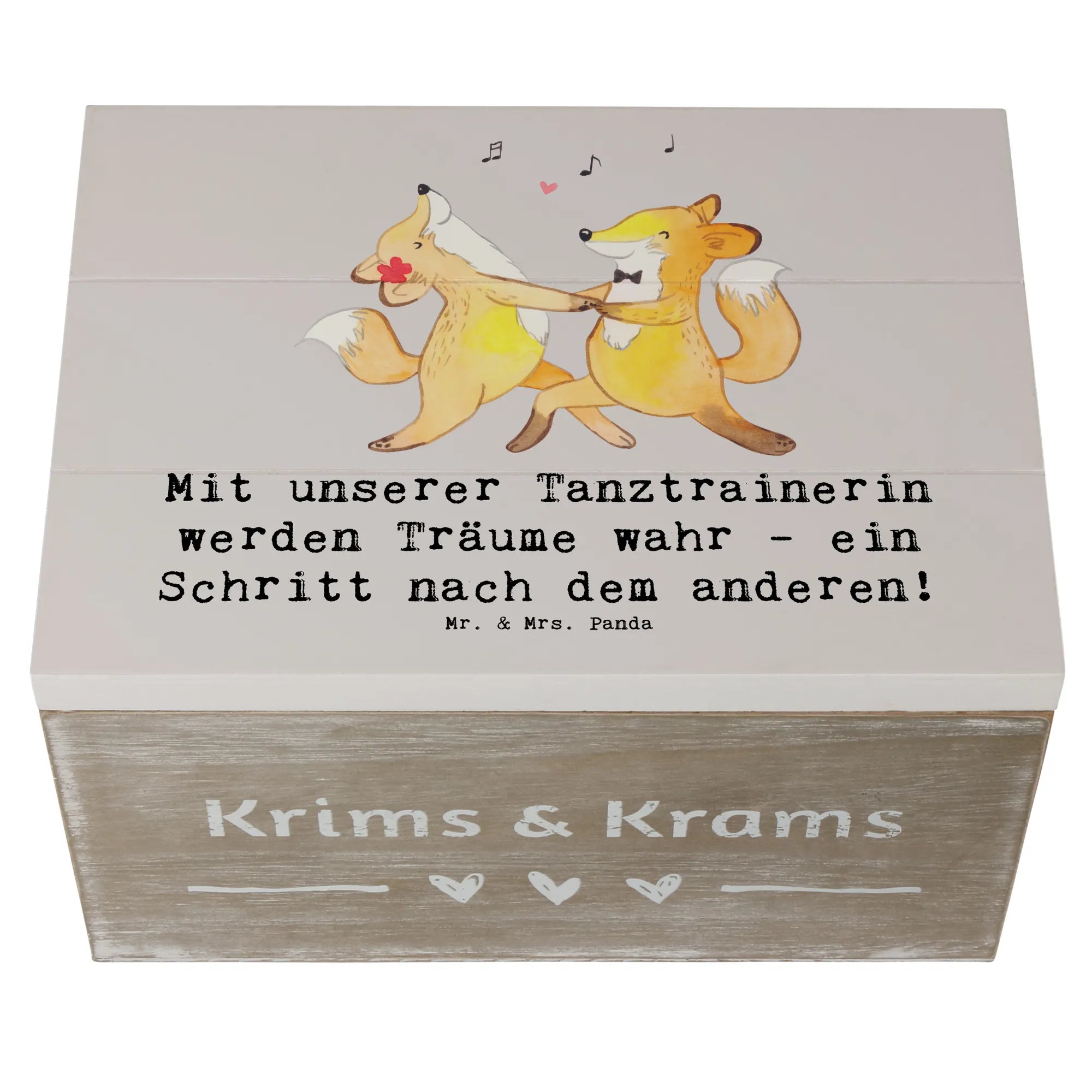 Entdecke die wundervolle Holzkiste von Mr. & Mrs. Panda, die deine Tanztrainerin begeistern wird! Mit dem motivierenden Spruch "Mit unserer Tanztrainerin werden Träume wahr - ein Schritt nach dem anderen!" ist diese Kiste nicht nur ein praktischer Aufbewahrungsort, sondern auch ein liebevolles Statement der Anerkennung für all die harte Arbeit und Leidenschaft, die deine Trainerin in den Tanzunterricht steckt.