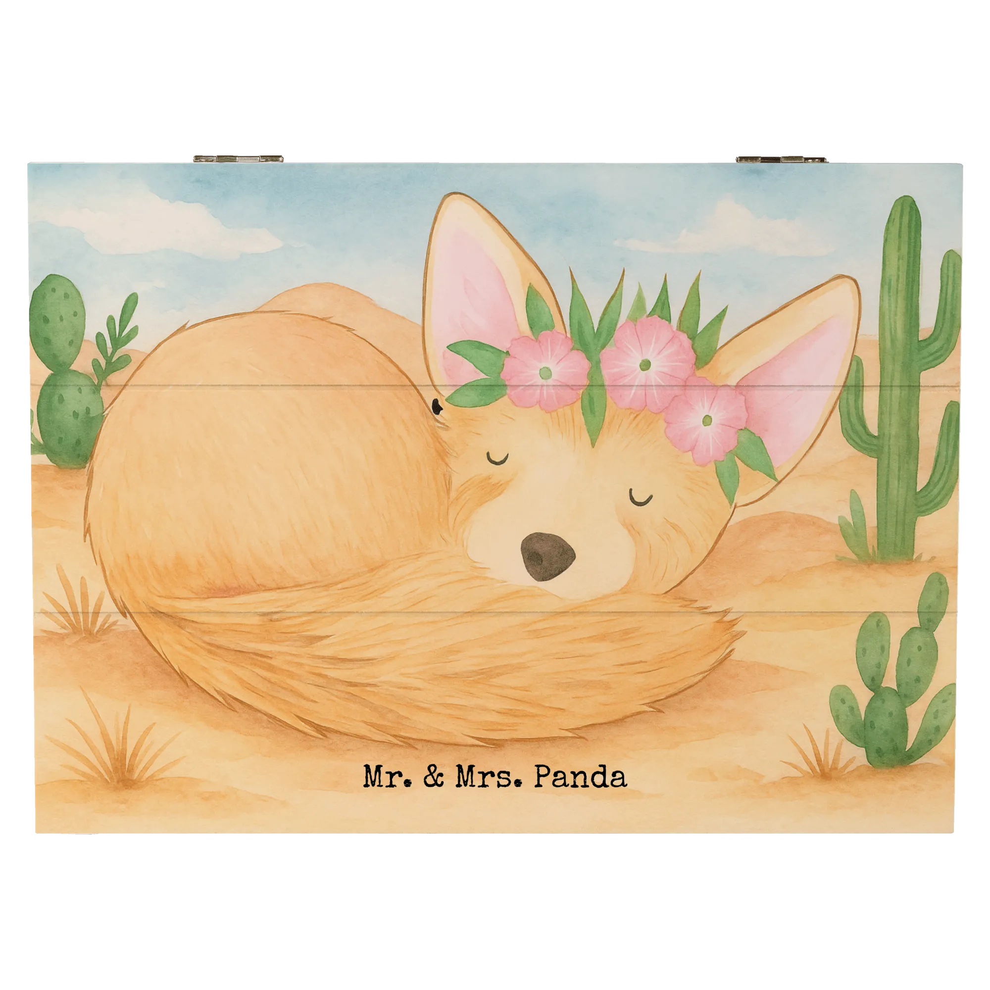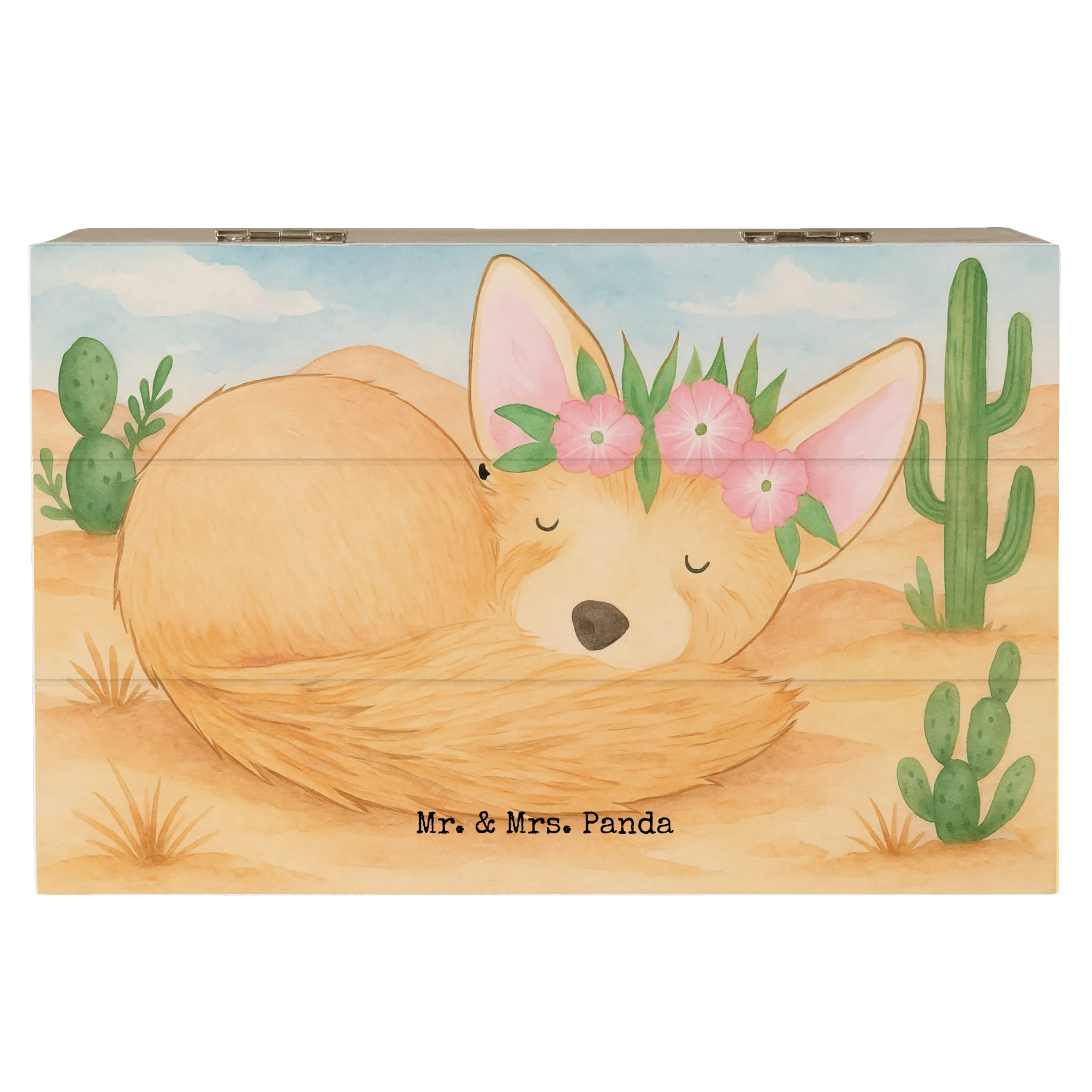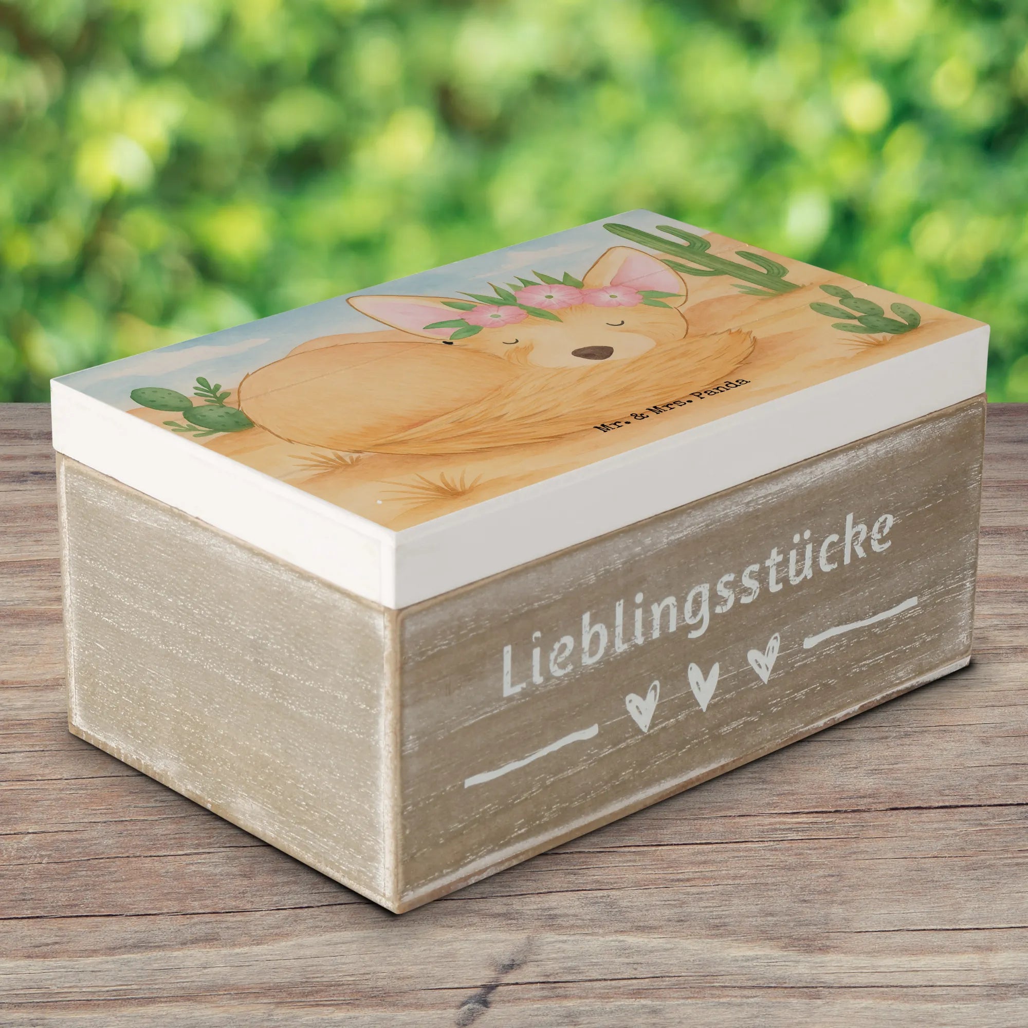 Holzkiste Wüstenfuchs Blumen Design - 22 x 15 cm