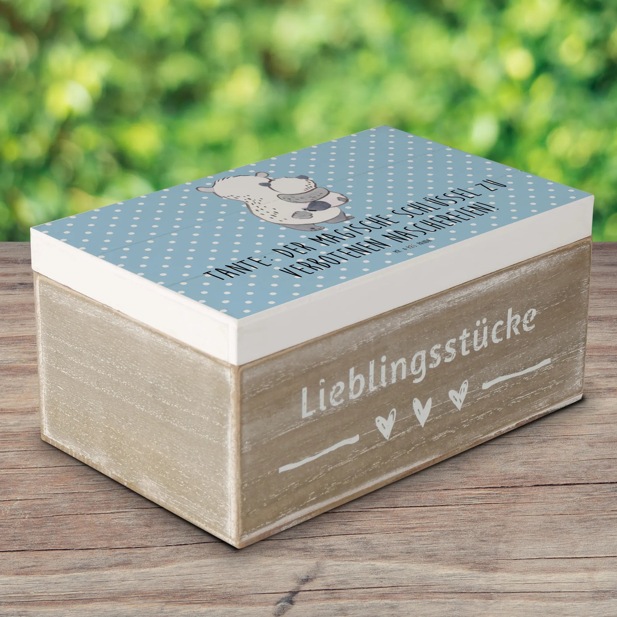 Entdecke die zauberhafte Holzkiste "Tante" von Mr. & Mrs. Panda – das perfekte Geschenk für all die besonderen Momente in deinem Leben!