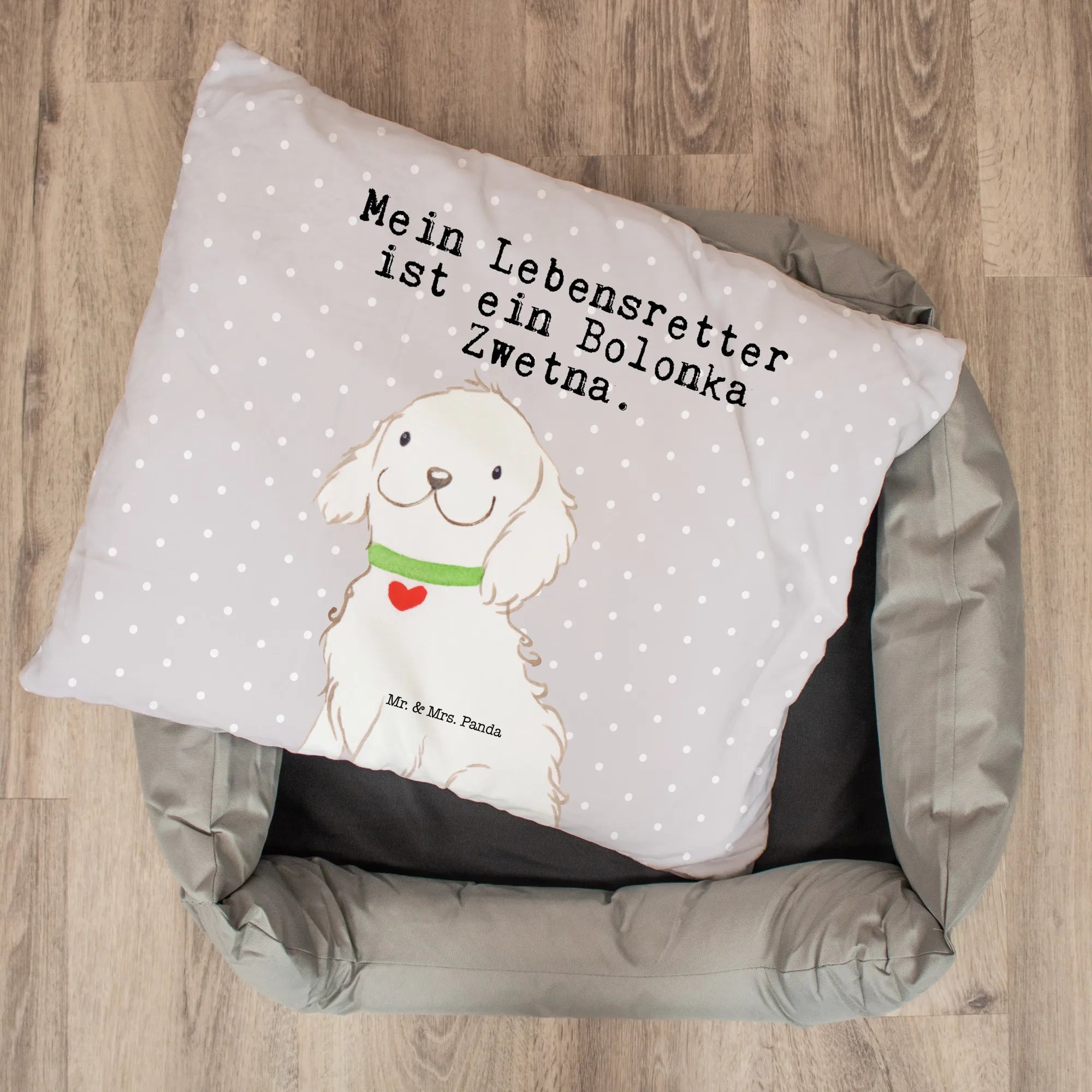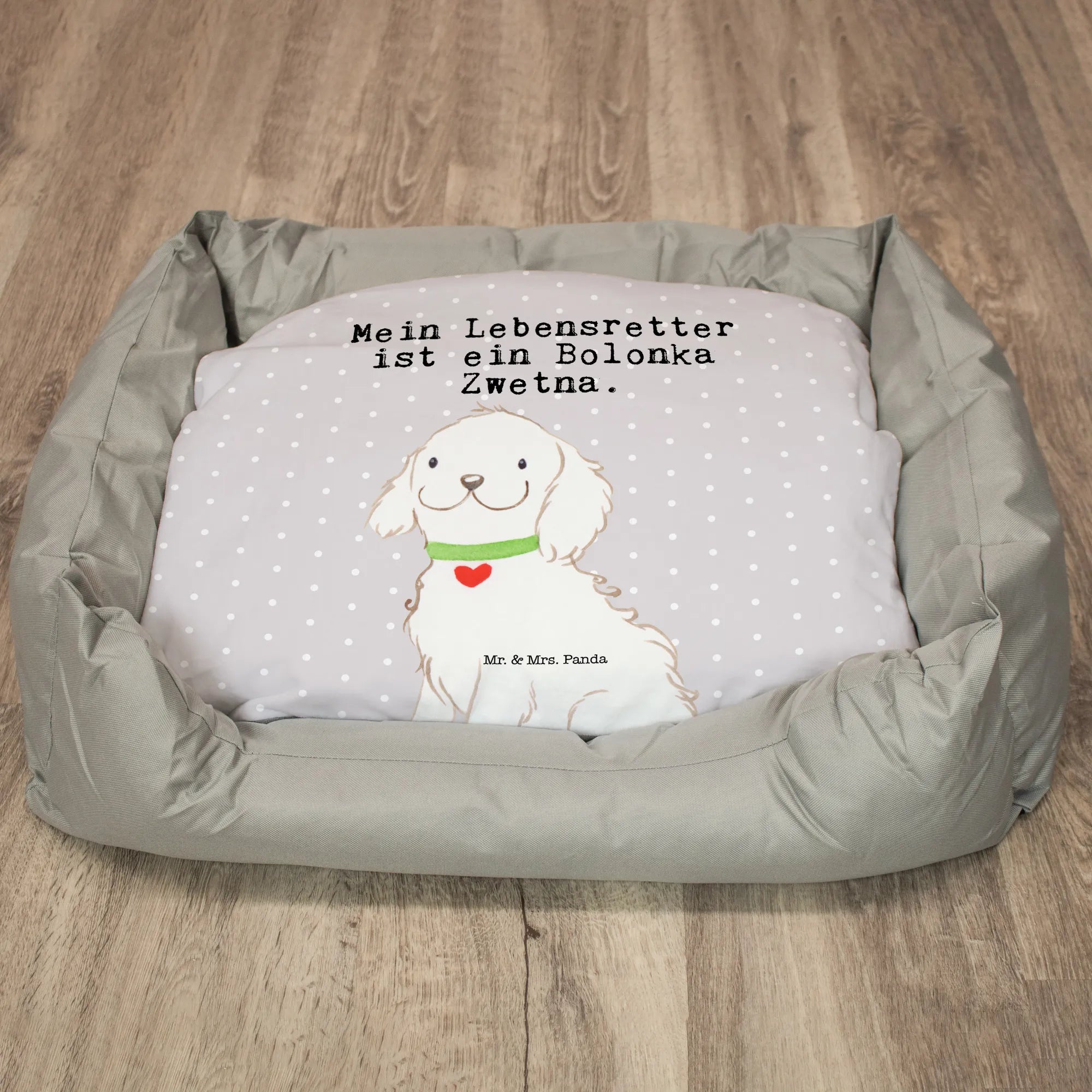 Das Hundebett "Bolonka Zwetna Lebensretter" von Mr. & Mrs. Panda ist nicht nur ein Ort zum Schlafen, sondern ein wahres Zuhause für deinen geliebten Hund. Die liebevoll gestalteten Motive bringen einen Hauch von Persönlichkeit in dein Zuhause und die Botschaft "Mein Lebensretter ist ein Bolonka Zwetna" sorgt für ein Lächeln, wenn du es siehst.