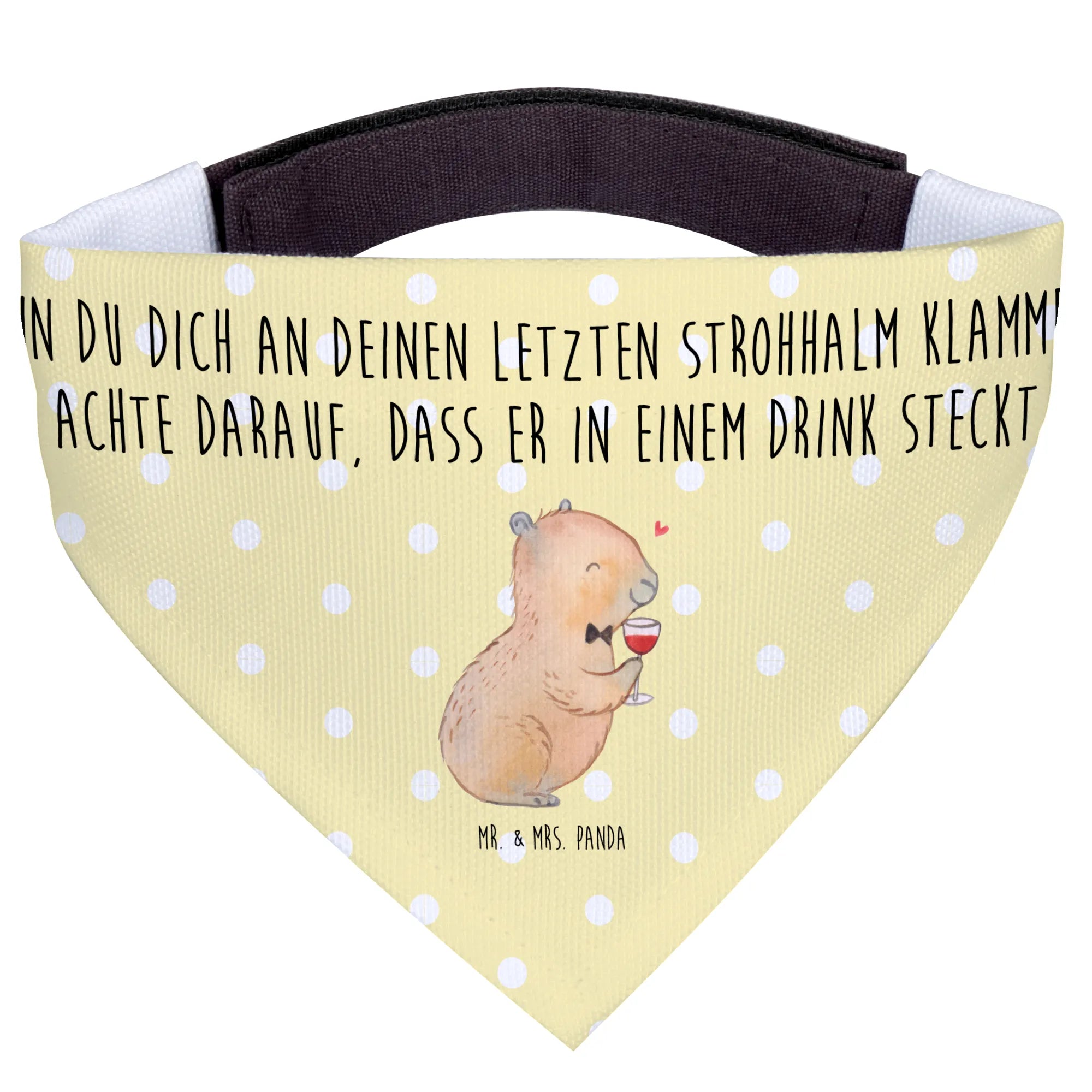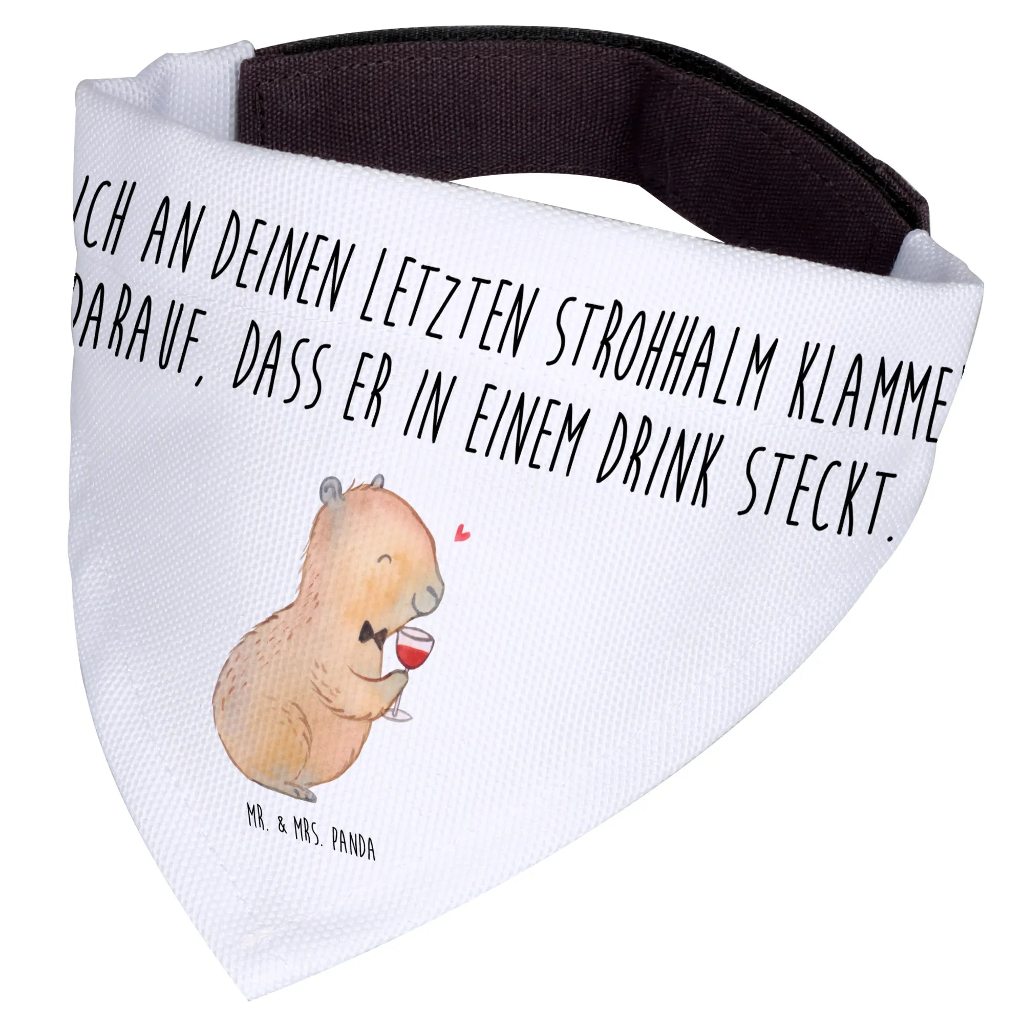 Die zauberhafte Darstellung des heiteren Capybaras mit einer Weinflasche und dem Spruch "Wenn du dich an deinen letzten Strohhalm klammerst, achte darauf, dass er in einem Drink steckt." bringt die Freude des Lebens direkt zu deinem Hund und dir. Dieses Halstuch ist nicht nur ein praktisches Accessoire, sondern auch eine liebevolle Hommage an die Weinliebhaber unter uns.