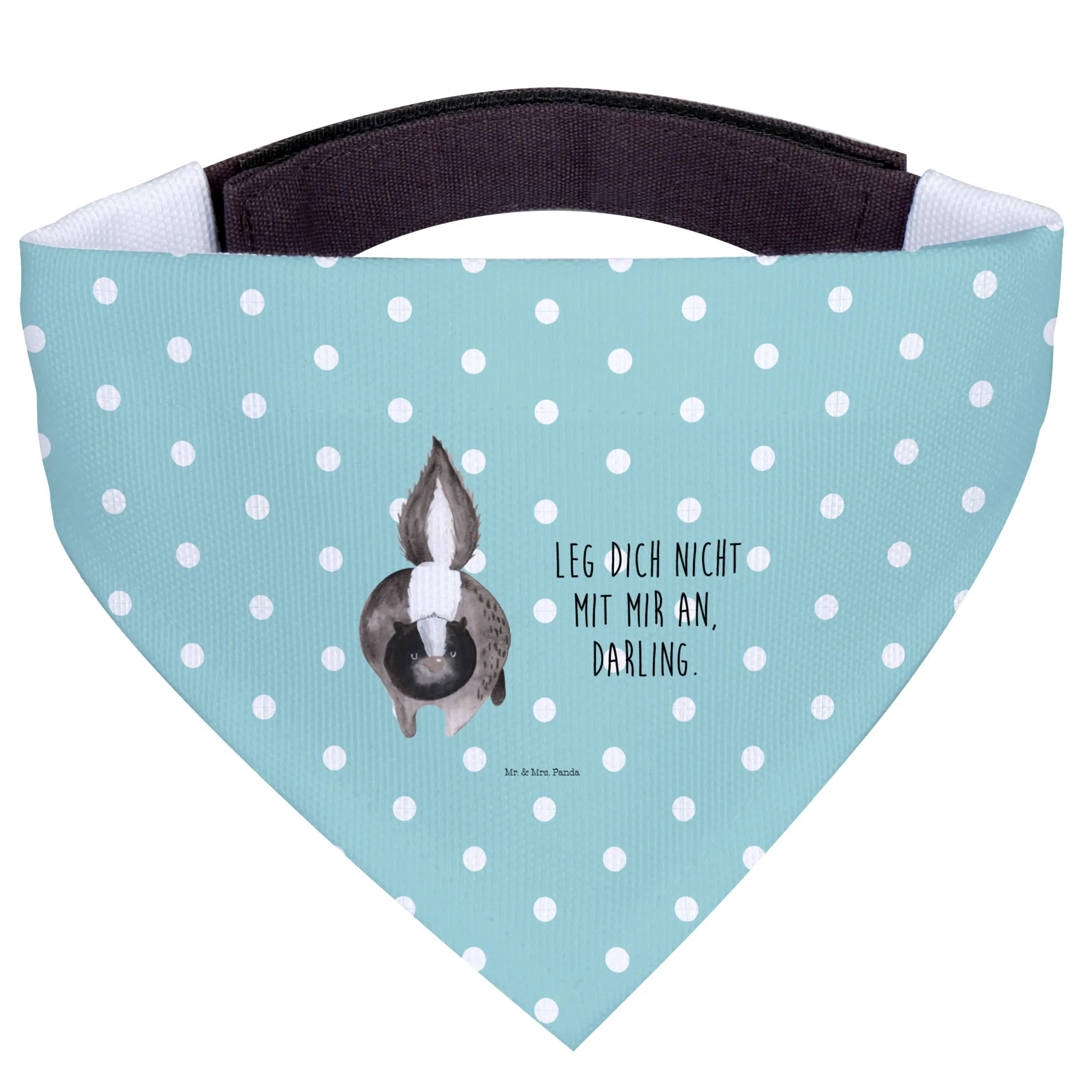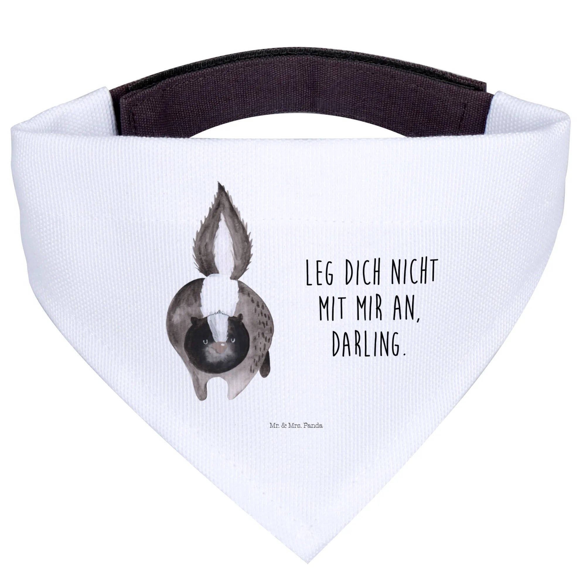 Der besondere Clou: Das niedliche Stinktier-Motiv besticht durch seine liebevolle Aquarellgestaltung und den Spruch 'Leg dich nicht mit mir an, Darling.' Jeder Hund, der dieses Halstuch trägt, wird zum ständigen Mittelpunkt der Aufmerksamkeit! Ideal für Spaziergänge im Park, Hundetreffen oder einfach nur für einen entspannten Tag zu Hause.