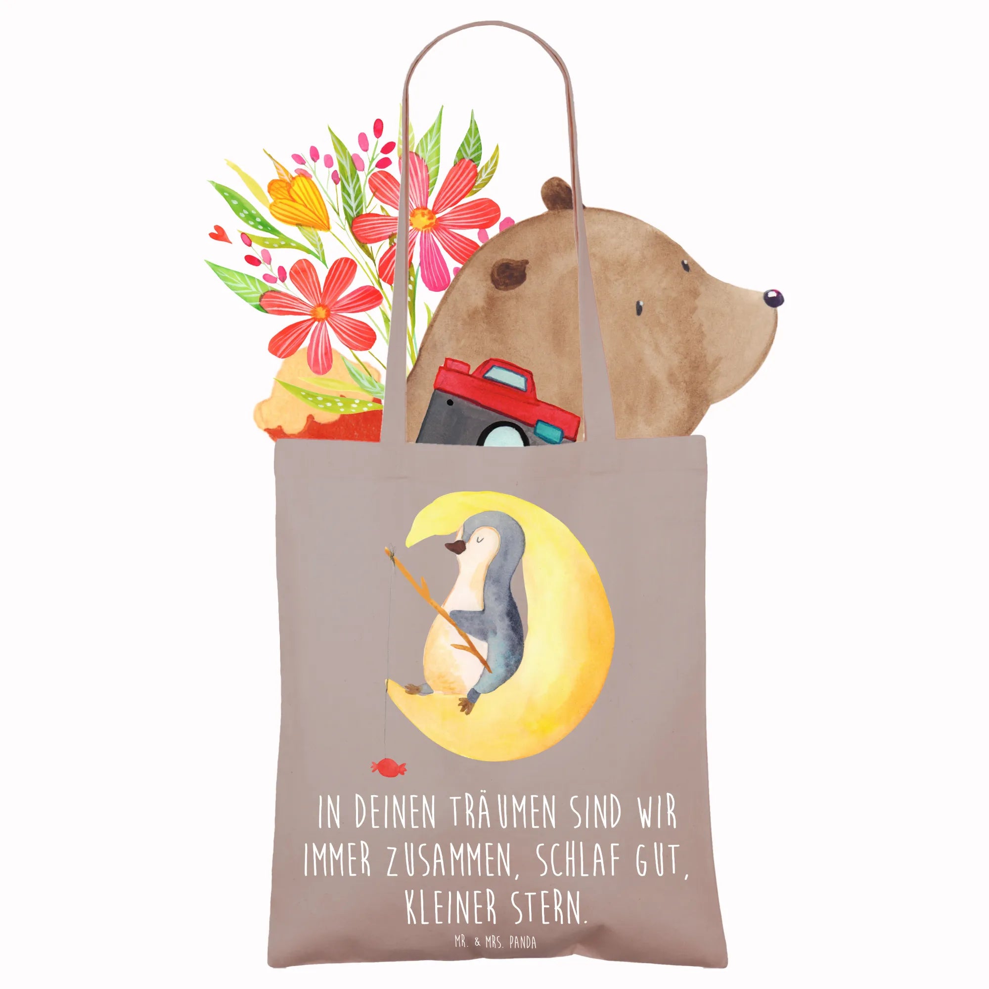 Tragetasche "Alleine schlafen lernen" – Ein kleiner Mutmacher von Mr. & Mrs. Panda, der Geborgenheit schenkt. Mit dem liebevollen Spruch „Träume groß, auch wenn du klein bist!“ begleitet diese praktische Tasche Kinder und Eltern durch die aufregende Zeit des Einschlafens und ist gleichzeitig ein charmantes Geschenk für viele Anlässe.