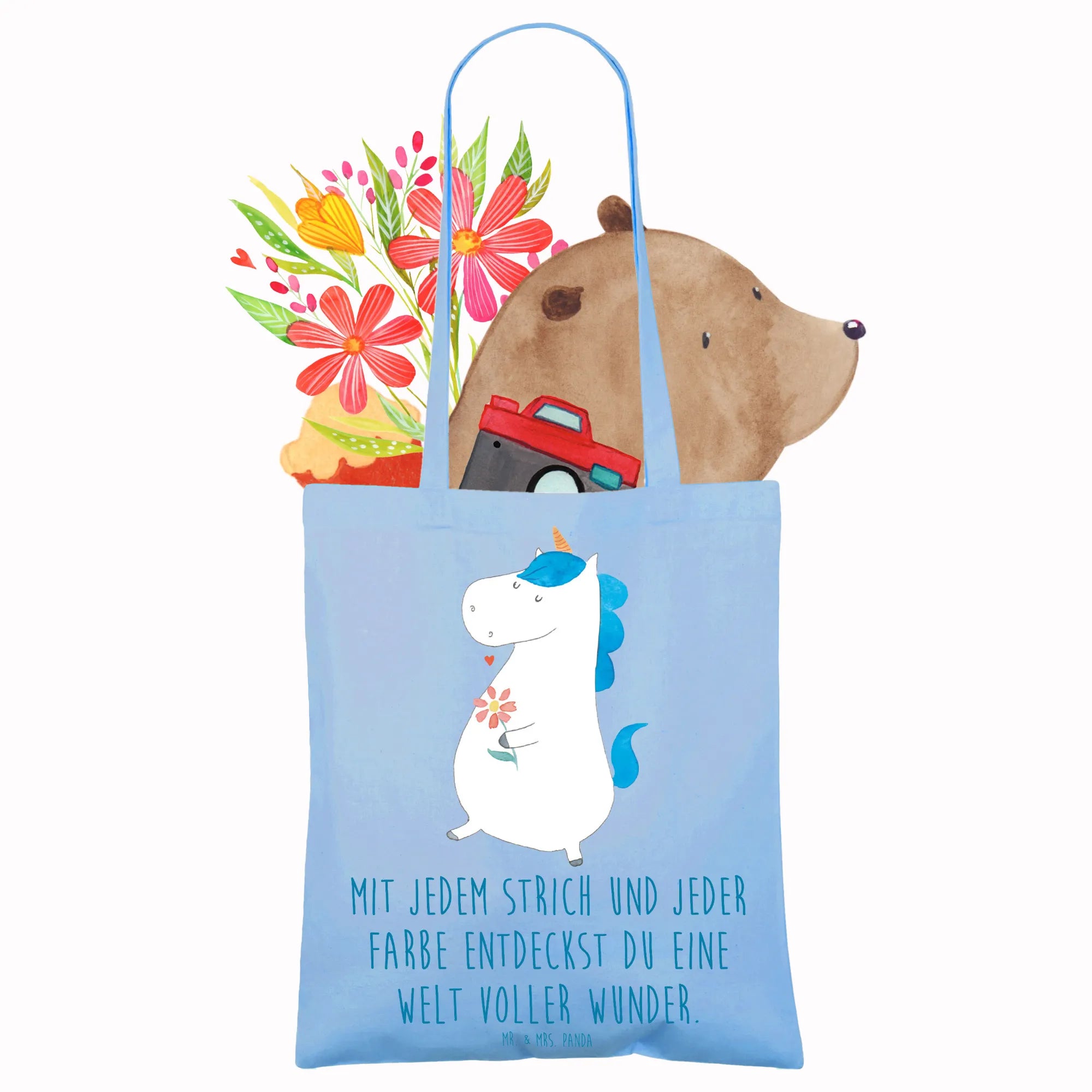 Diese Tragetasche ist das perfekte Geschenk für Freundinnen, kreative Seelen, Studierende, Mütter oder alle, die Mut und Trost gut gebrauchen können. Als Geschenk sagt sie mehr als viele Worte: Sie erinnert daran, die eigene Kreativität zu feiern und mit Zuversicht durchs Leben zu gehen. Die hochwertige Bedruckung mit dem einzigartigen Motiv von Mr. & Mrs. Panda macht die Tasche zu einem Hingucker.