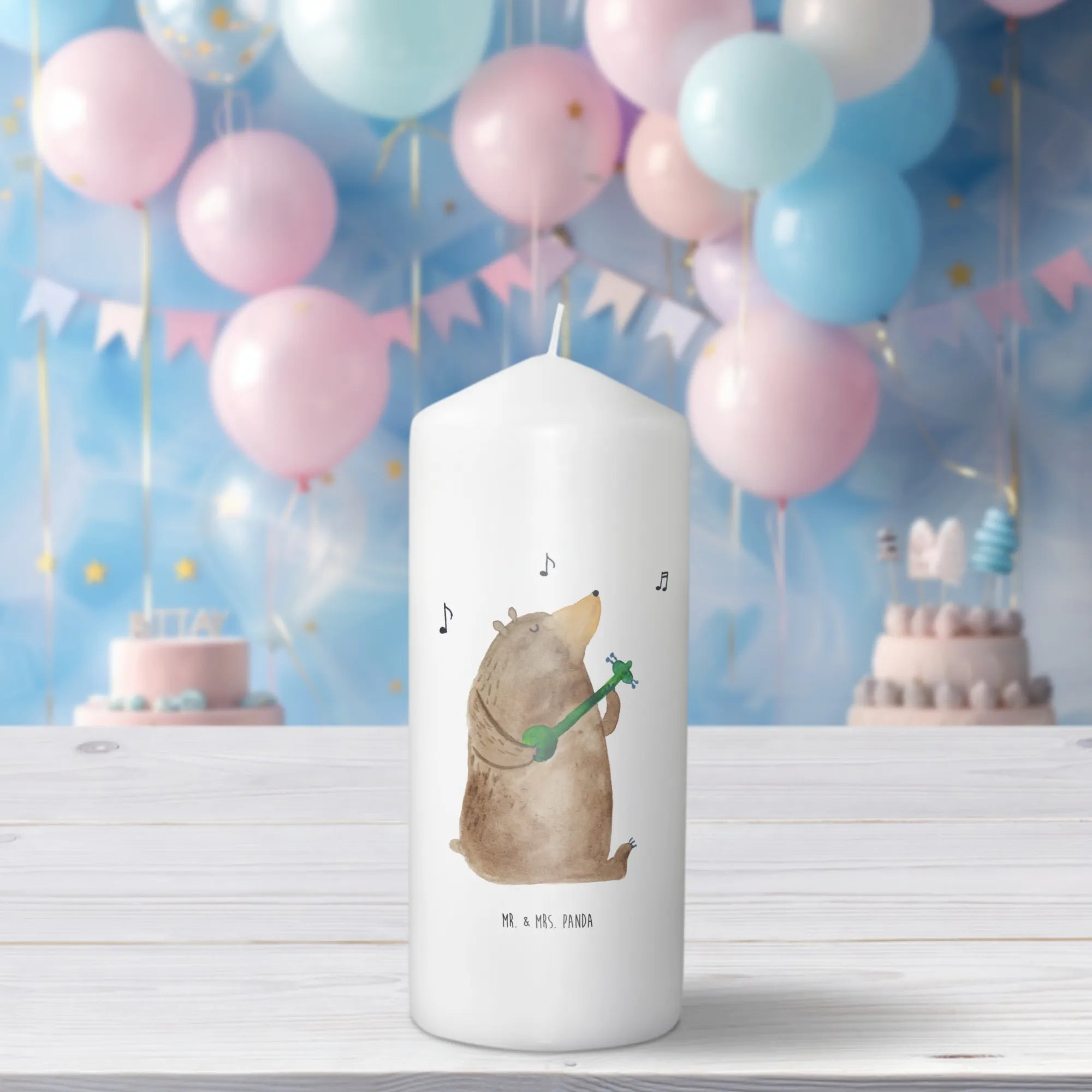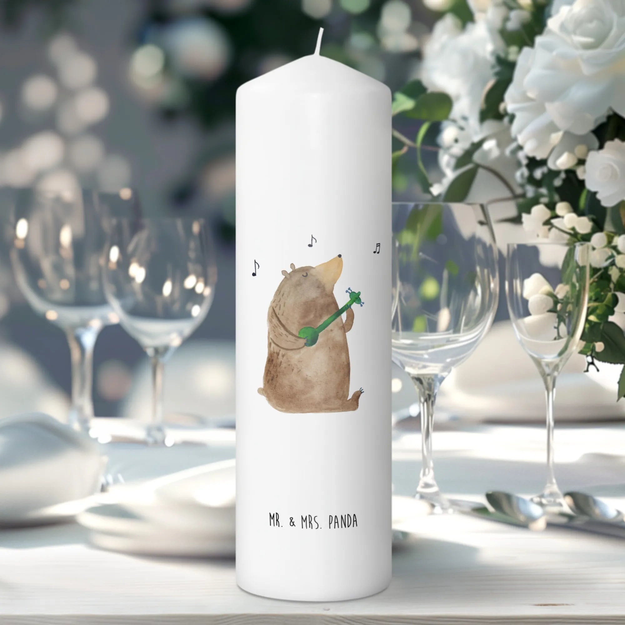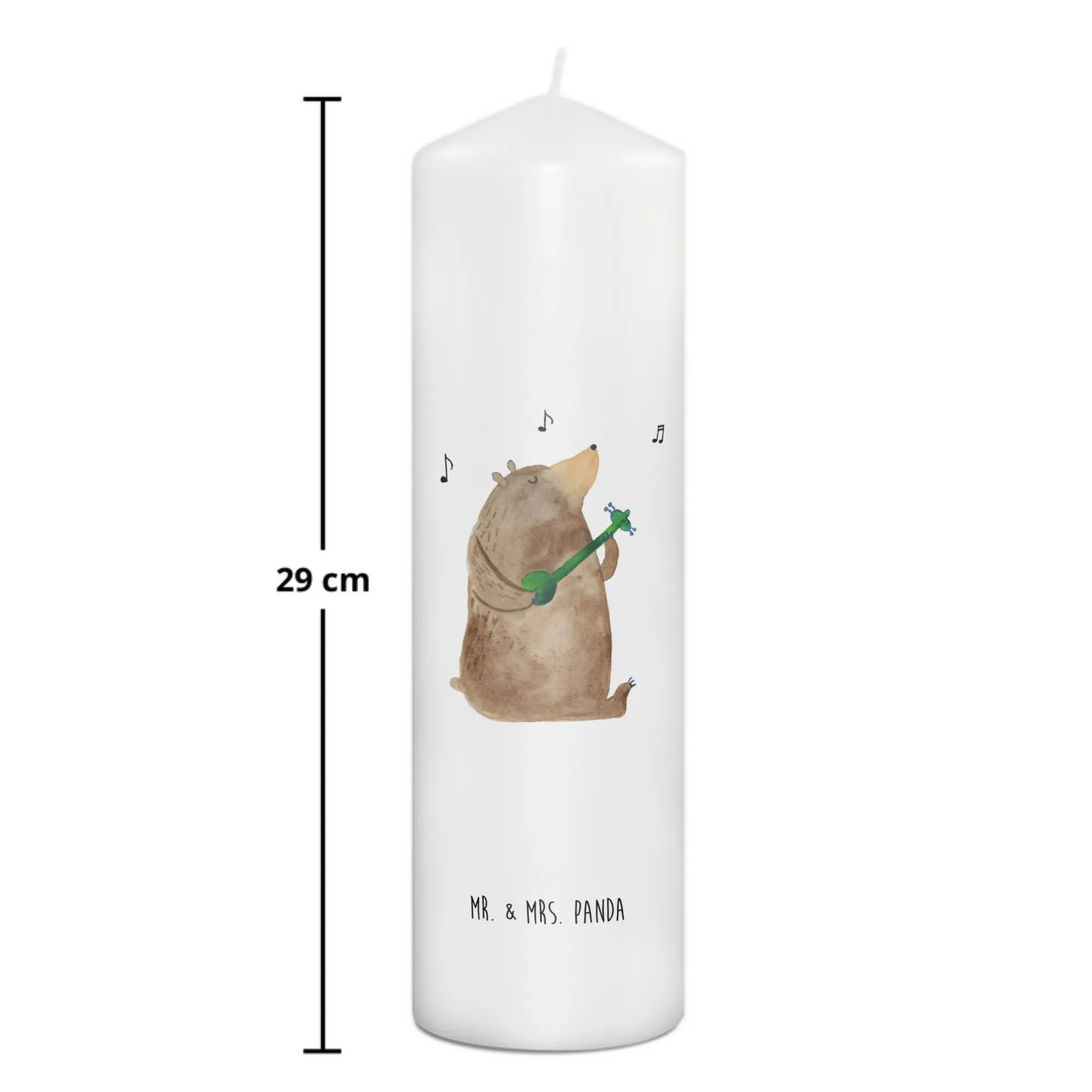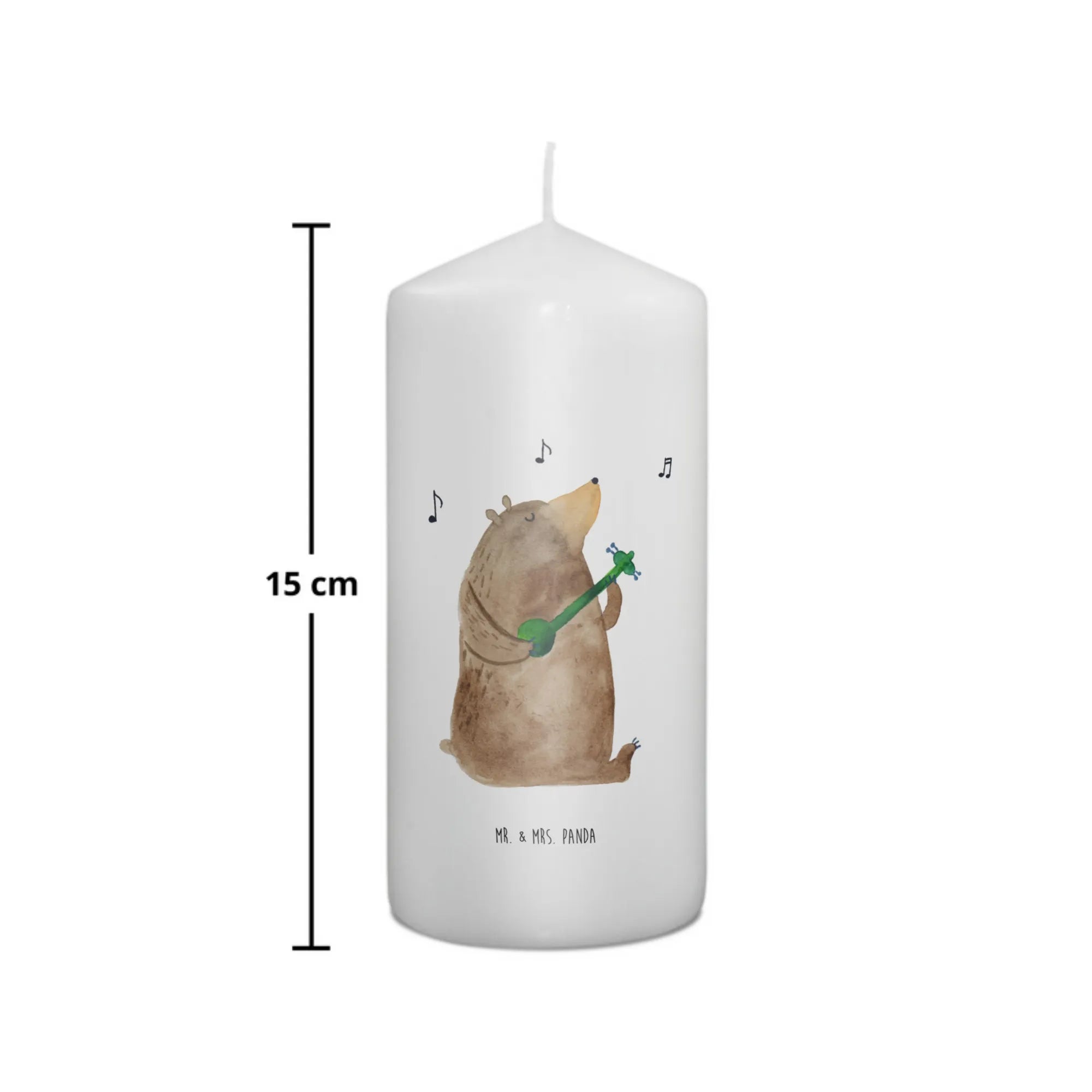 Wenn du auf der Suche nach einer besonderen Geschenkidee bist, liebevoll dekoriert und mit einem einzigartigen Motiv, dann ist die Bär Gitarre Kerze von Mr. & Mrs. Panda genau das Richtige für dich!