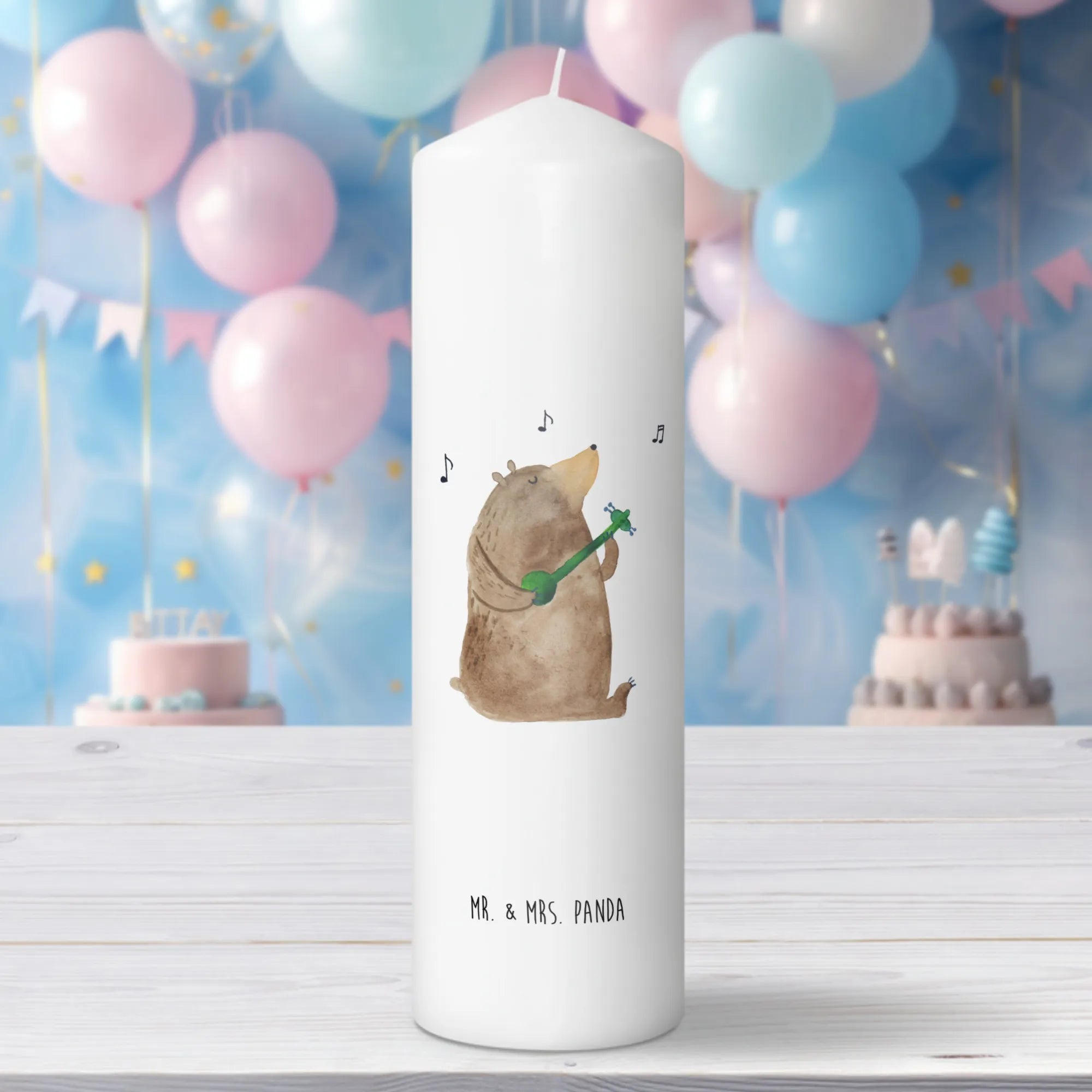 Die bezaubernde Taufkerze mit dem süßen Bären Gitarre Motiv von Mr. & Mrs. Panda ist das perfekte Geschenk für jeden Anlass! Ob zur Taufe, Kommunion oder zum Geburtstag – diese Kerze bringt zarte Lichter und gute Laune in jedes Zuhause.