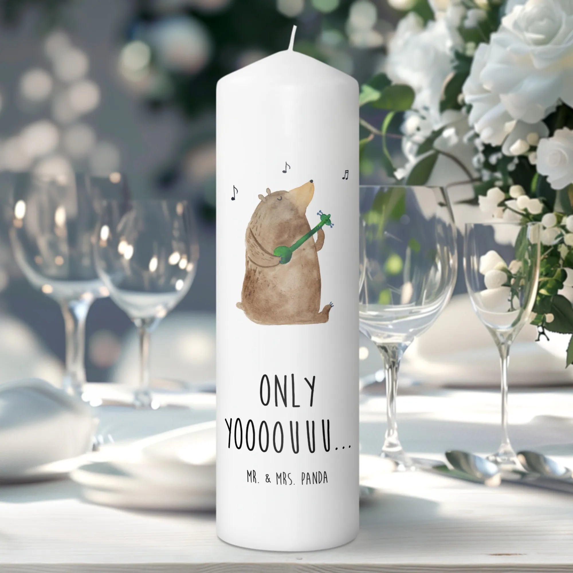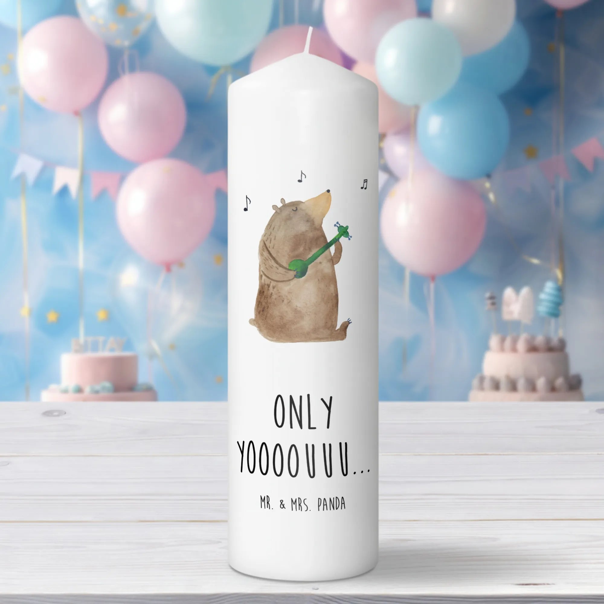 Die wunderschöne Kerze mit dem Motiv "Bär Gitarre" von Mr. & Mrs. Panda ist das ideale Geschenk für musikalische Seelen und Tierliebhaber. Die Kombination aus einem süßen Bären, der auf seiner Gitarre spielt, und dem liebevollen Slogan "Only yoooouuu..." macht diese Kerze zu einem besonderen Highlight für jeden Anlass.