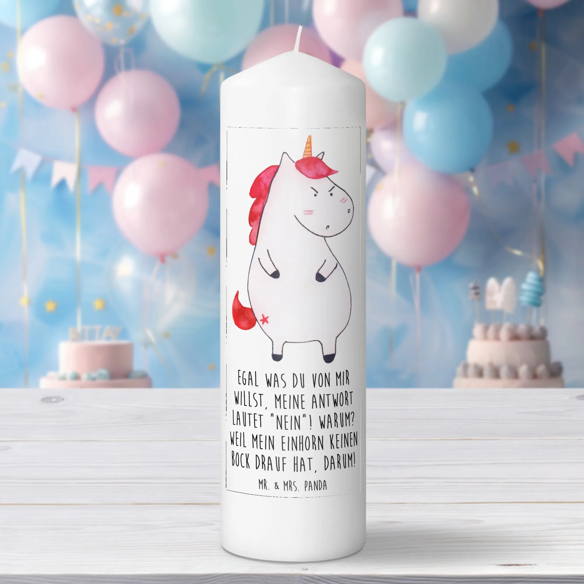 Entdecke die wütende Einhorn Kerze von Mr. & Mrs. Panda – das perfekte Geschenk für alle, die ein wenig Humor und einen Hauch von Magie in ihrem Leben brauchen! Die Kerze ist nicht nur ein einzigartiges Deko-Element, sondern auch eine wahre Freude für jeden Anlass. Egal ob zum Geburtstag, zur Taufe oder zur Kommunion – diese spezielle Kerze wird garantiert zum Hingucker.