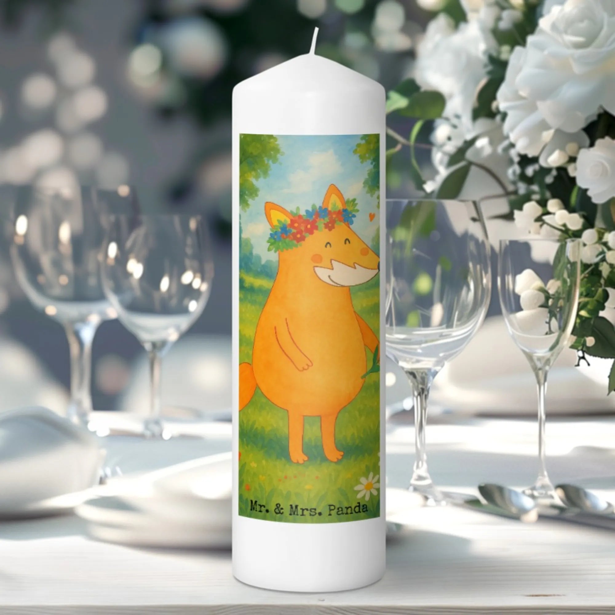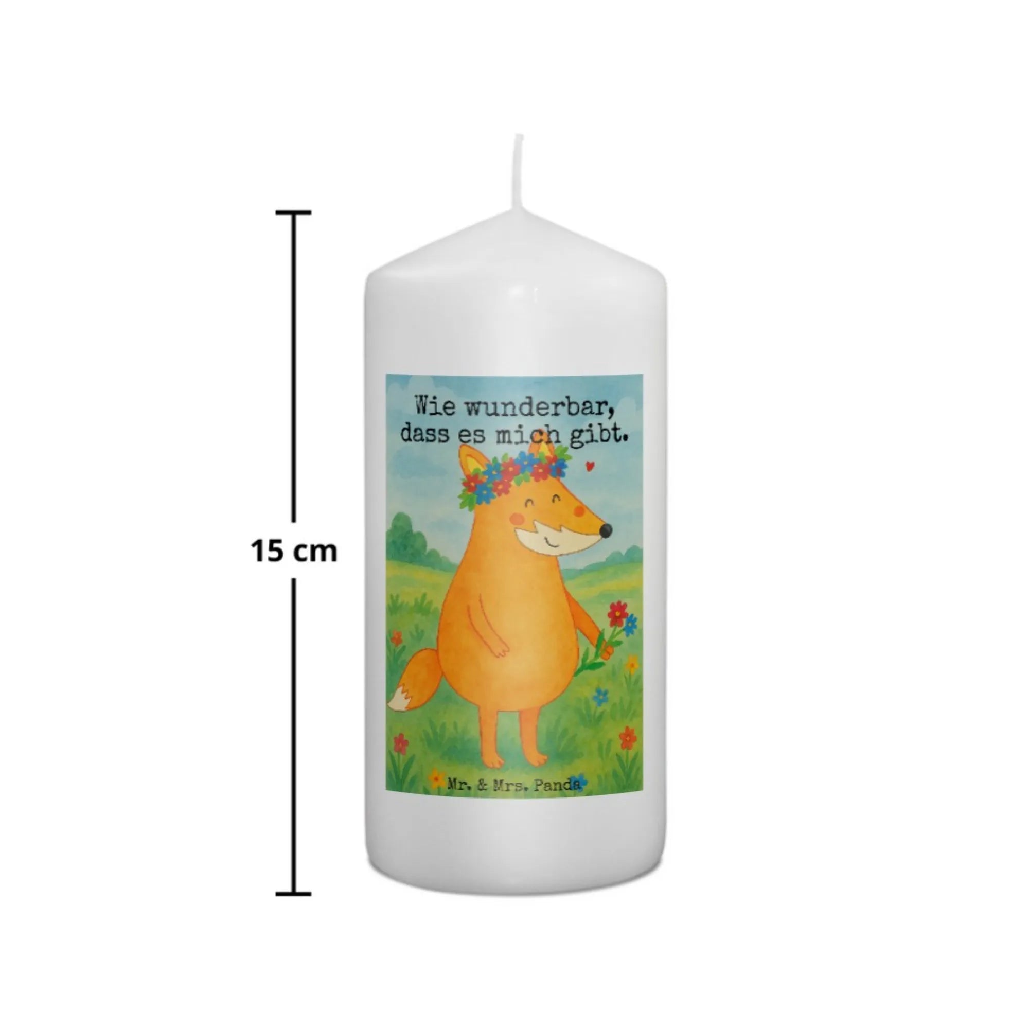 Kerze Fuchs Blumen Design - 19 x 8 cm - mit Spruch