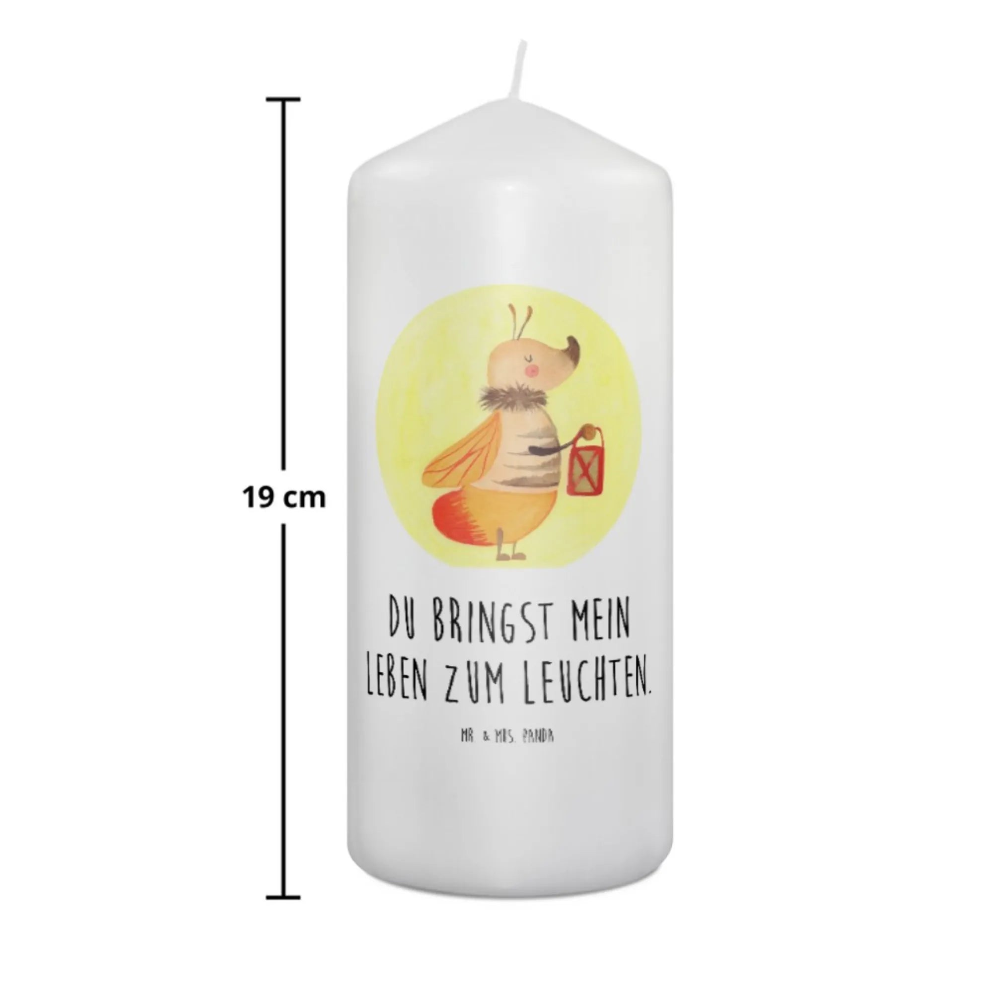 Die Kerze ist aus hochwertigem Paraffinwachs gefertigt, sorgt für eine ultralange Brenndauer und erledigt ihren Dienst mit einem sanften, warmen Licht. Sie ist nicht nur ideal als Taufgeschenk, sondern auch für Jubiläen oder einfach, um jemandem eine Freude zu machen. Das Glühwürmchen-Motiv gehört zur ‚Small World‘ Kollektion, die durch ihre liebevoll gestalteten Tiermotive und lustigen Sprüche besticht. Jedes Motiv wurde mit viel Hingabe von Mrs. Panda handgezeichnet und macht die Kerze zu einem echten Blickfang.