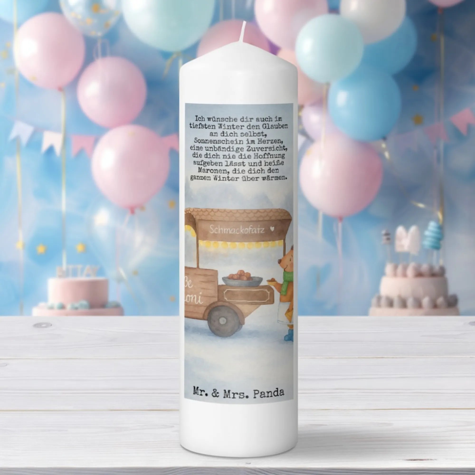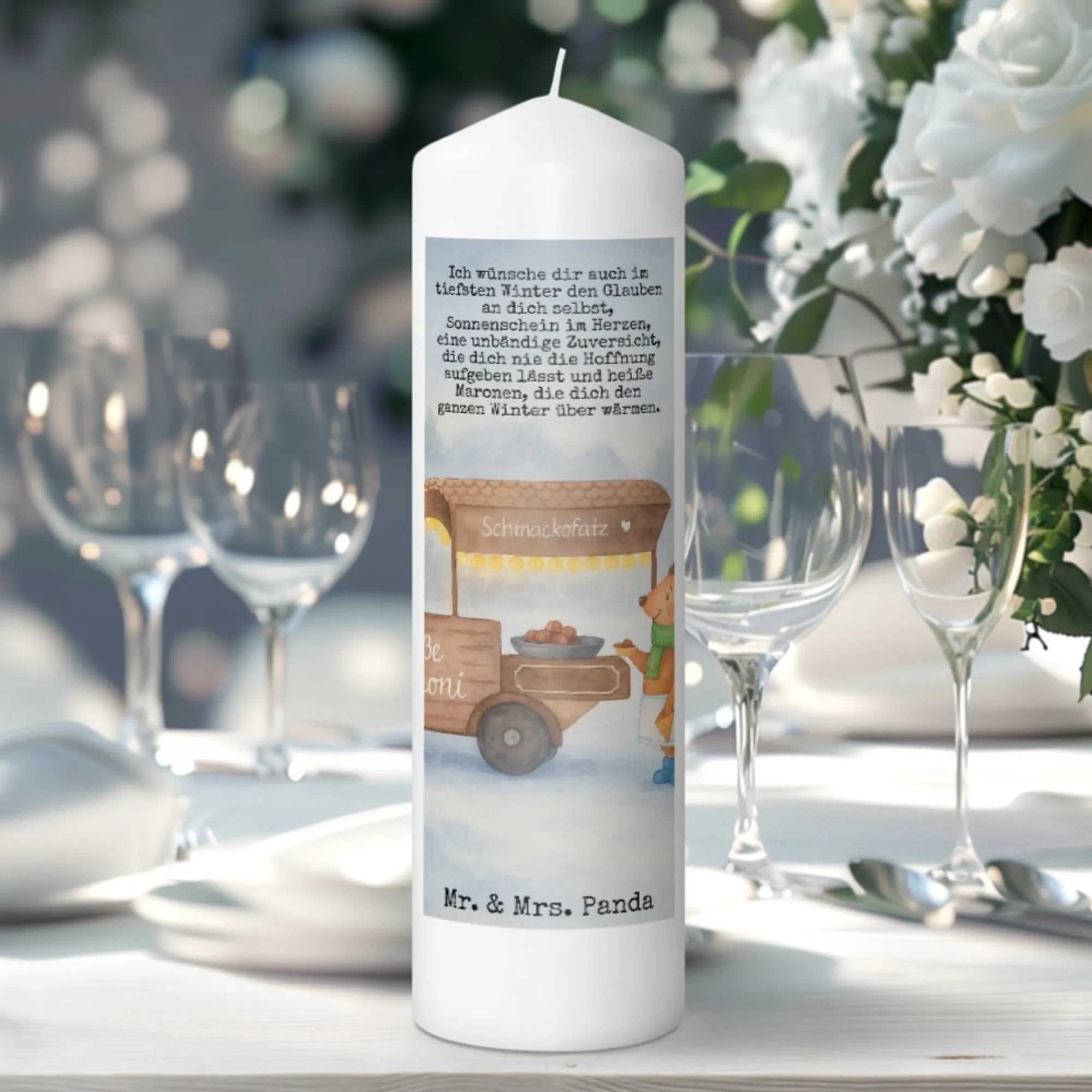 Diese exquisite Kerze von Mr. & Mrs. Panda ist ein absolutes Must-Have für jeden, der sein Zuhause stilvoll dekorieren möchte. Mit einer Höhe von 150 mm und einem Durchmesser von 70 mm, wiegt sie 250 g. Hergestellt aus hochwertigem Paraffinwachs, bietet sie eine langanhaltende Brennerfahrung, ideal für Geburtstagsfeiern oder Jubiläumsfeiern. Die Kerze ist mit einzigartigen Sprüchen und bezaubernden Motiven bedruckt, die beim Abbrennen eine hauchdünne, transparente Wachsschicht bilden. Diese Funktion sorgt für zusätzlichen Charme und Lichtspiel in jedem Raum. Egal ob zur Feier oder beim Gedenken, diese Kerze schafft die perfekte Stimmung.
