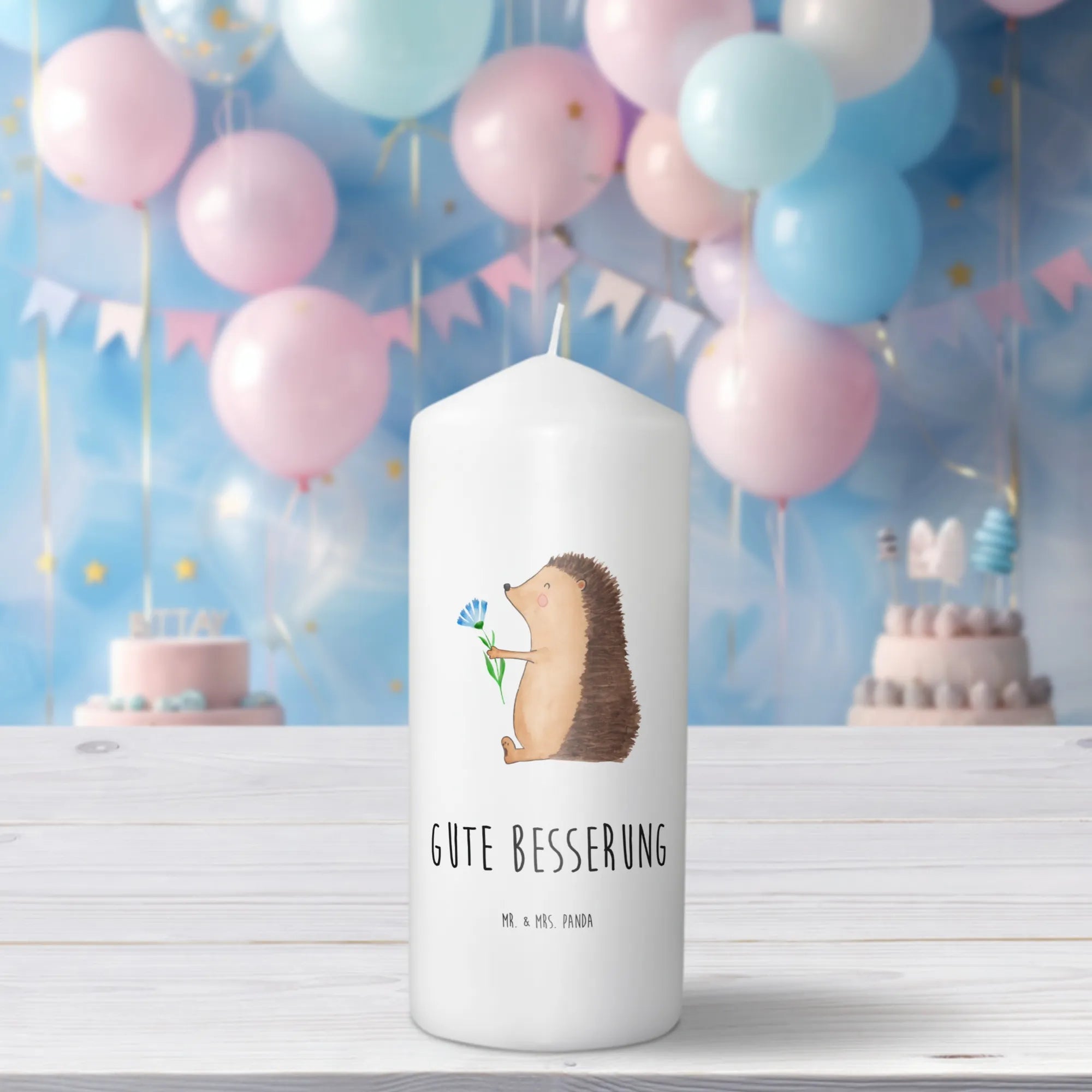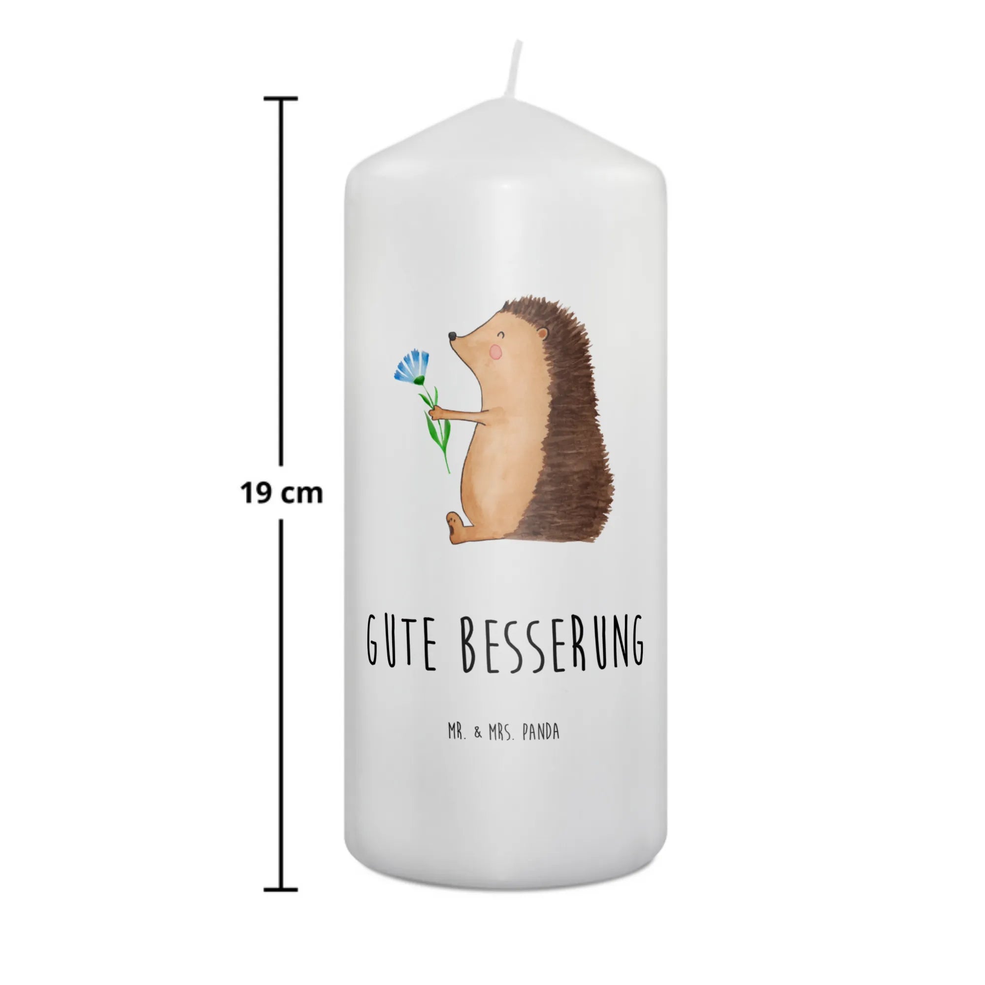 Wenn du jemanden hast, der sich nach einer Genesung sehnt, ist diese Kerze mit dem Motto "Gute Besserung" das perfekte Geschenk, um Freude und Licht zu spenden. Der Igel mit der Blume erinnert uns daran, dass es immer Lichtblicke gibt, auch in dunklen Zeiten.