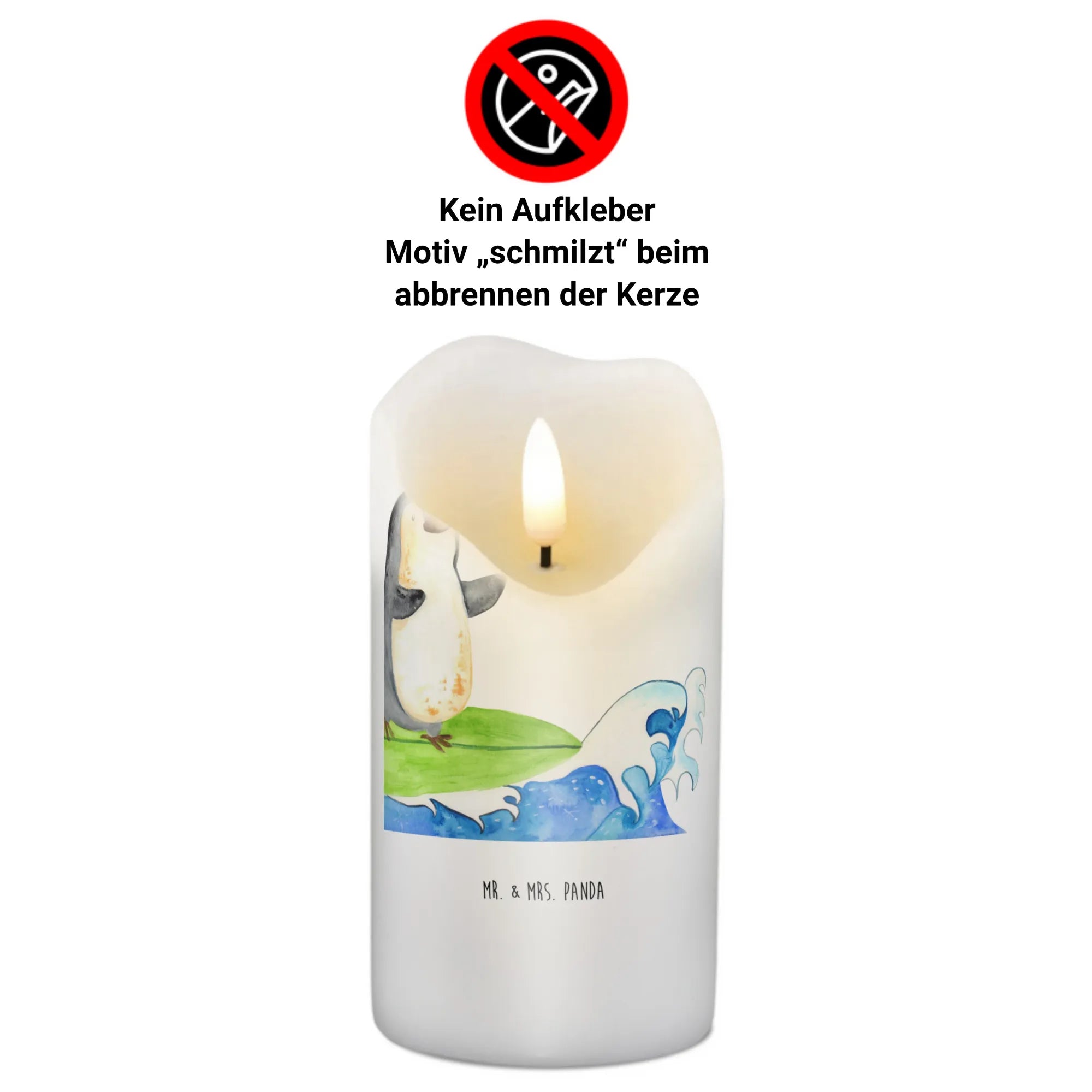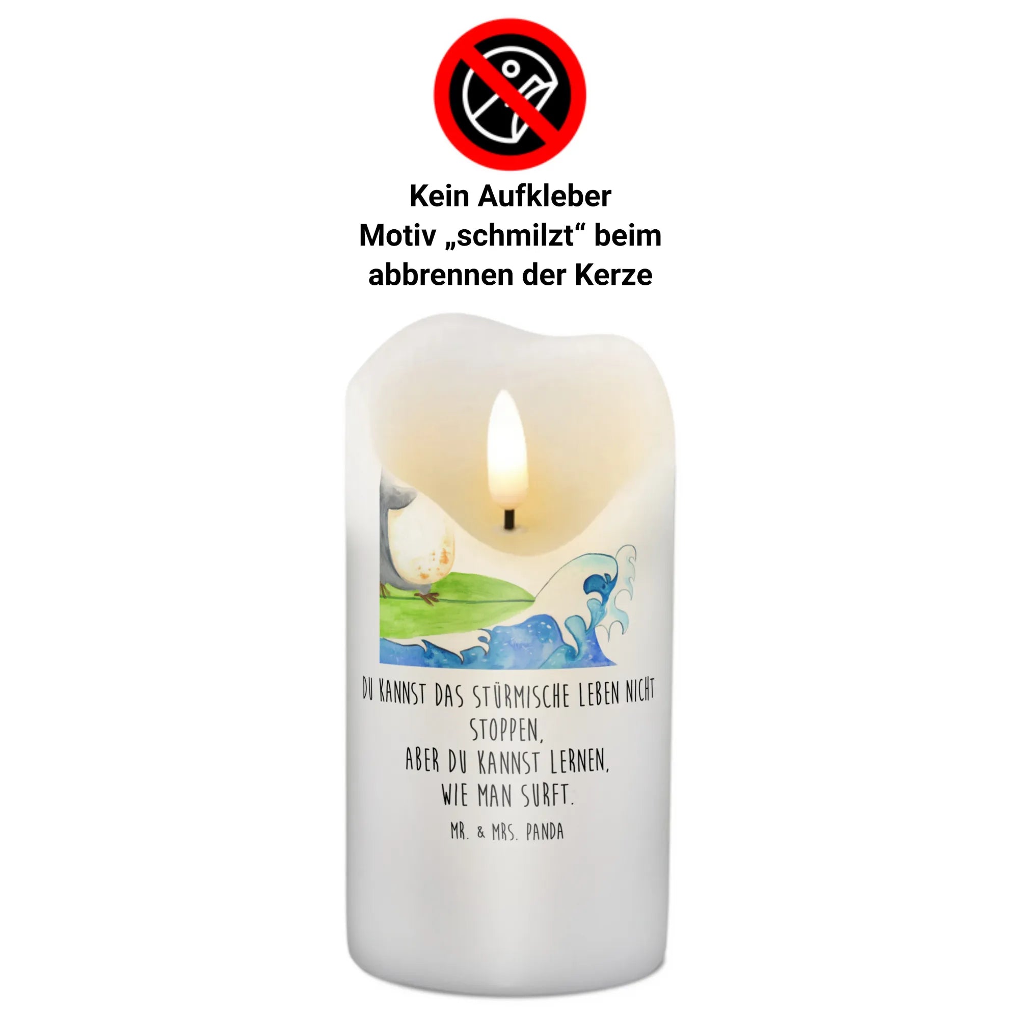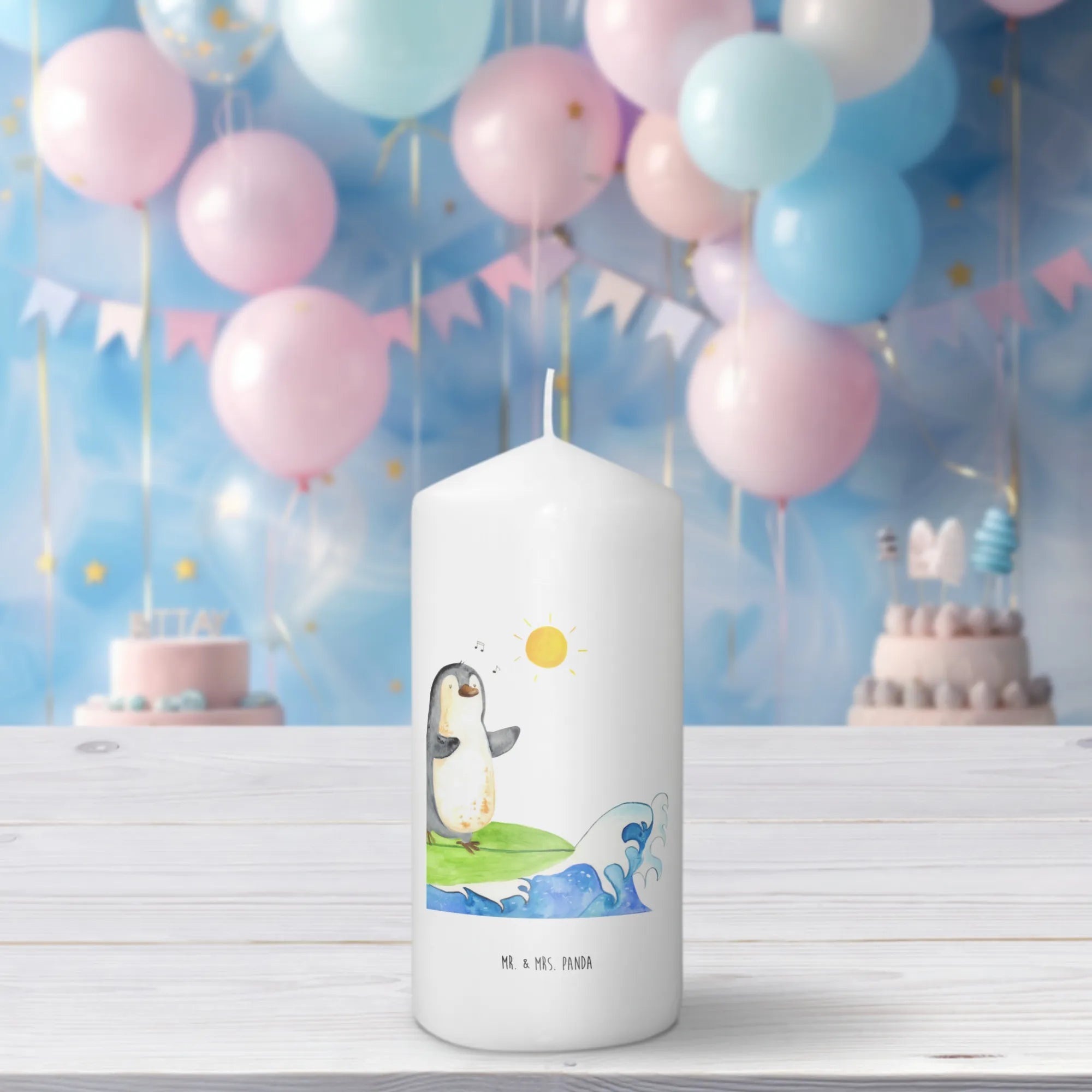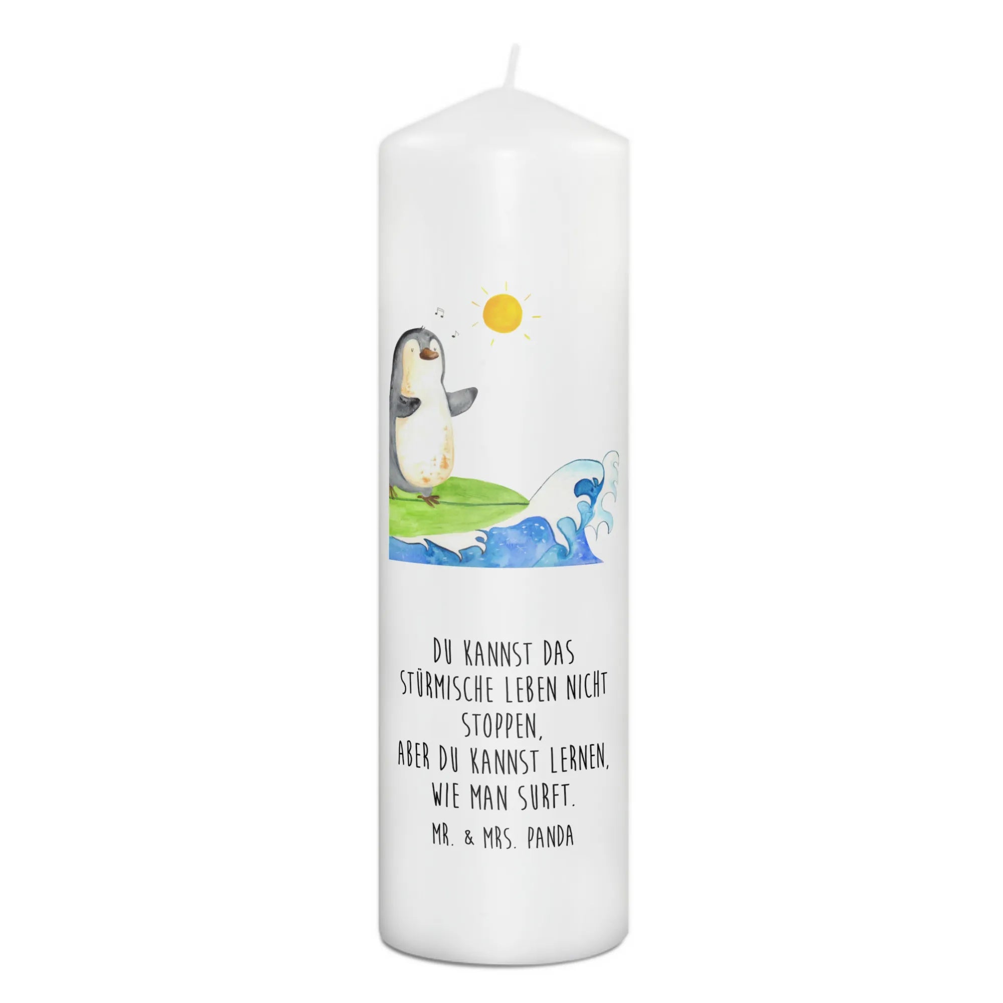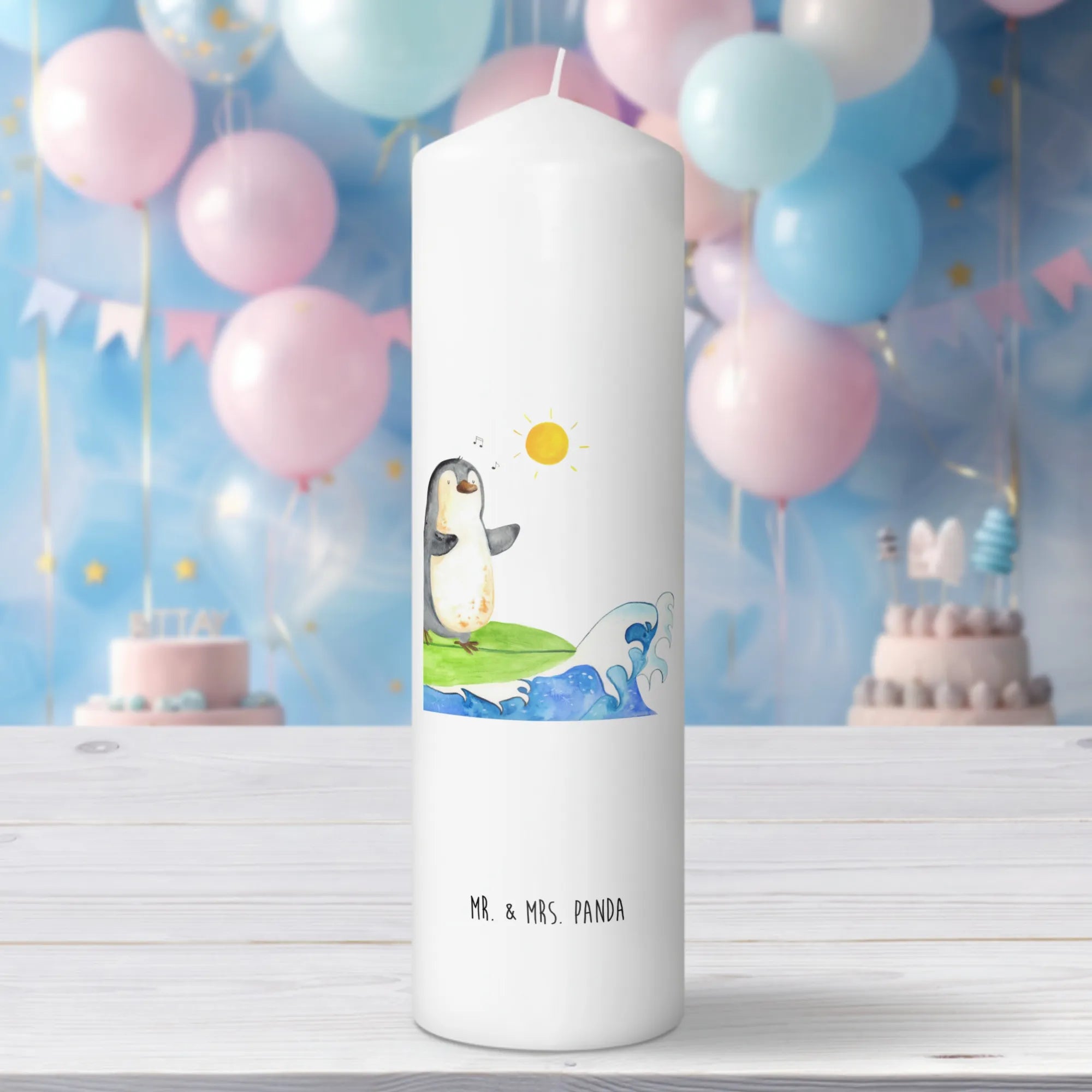 Kerze Pinguin Surfer - 29 x 8 cm XL - mit Spruch