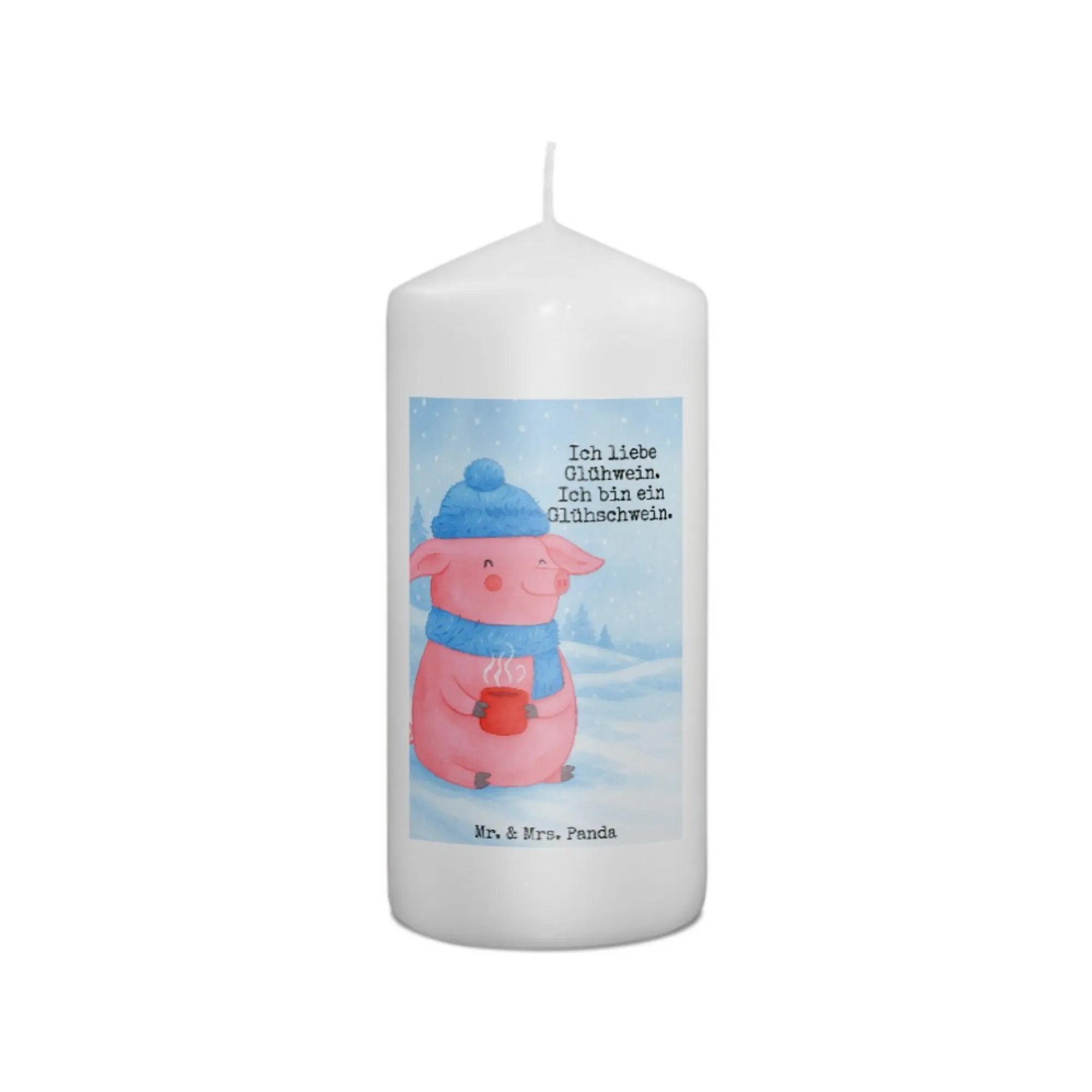 Kerze Schwein Glühwein Design - 19 x 8 cm - mit Spruch