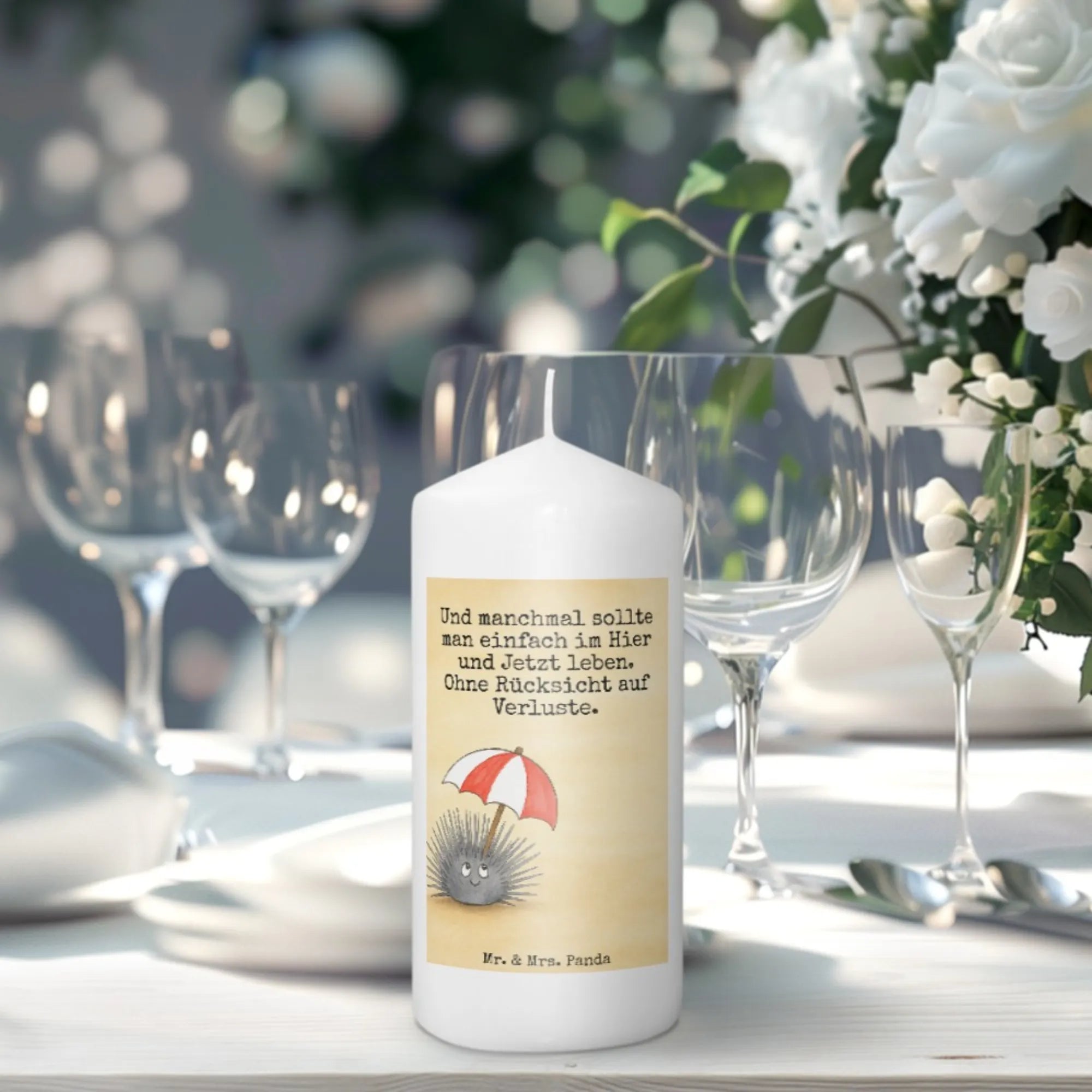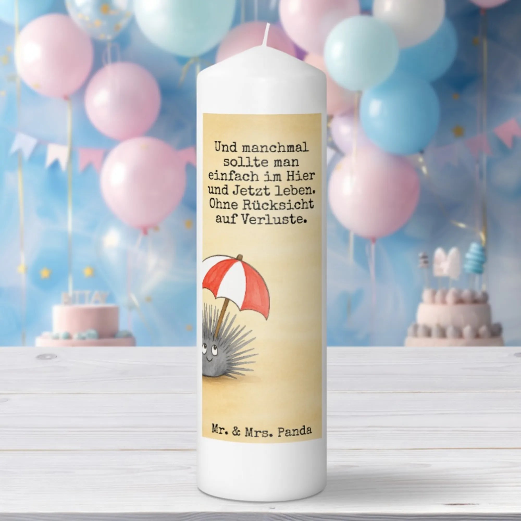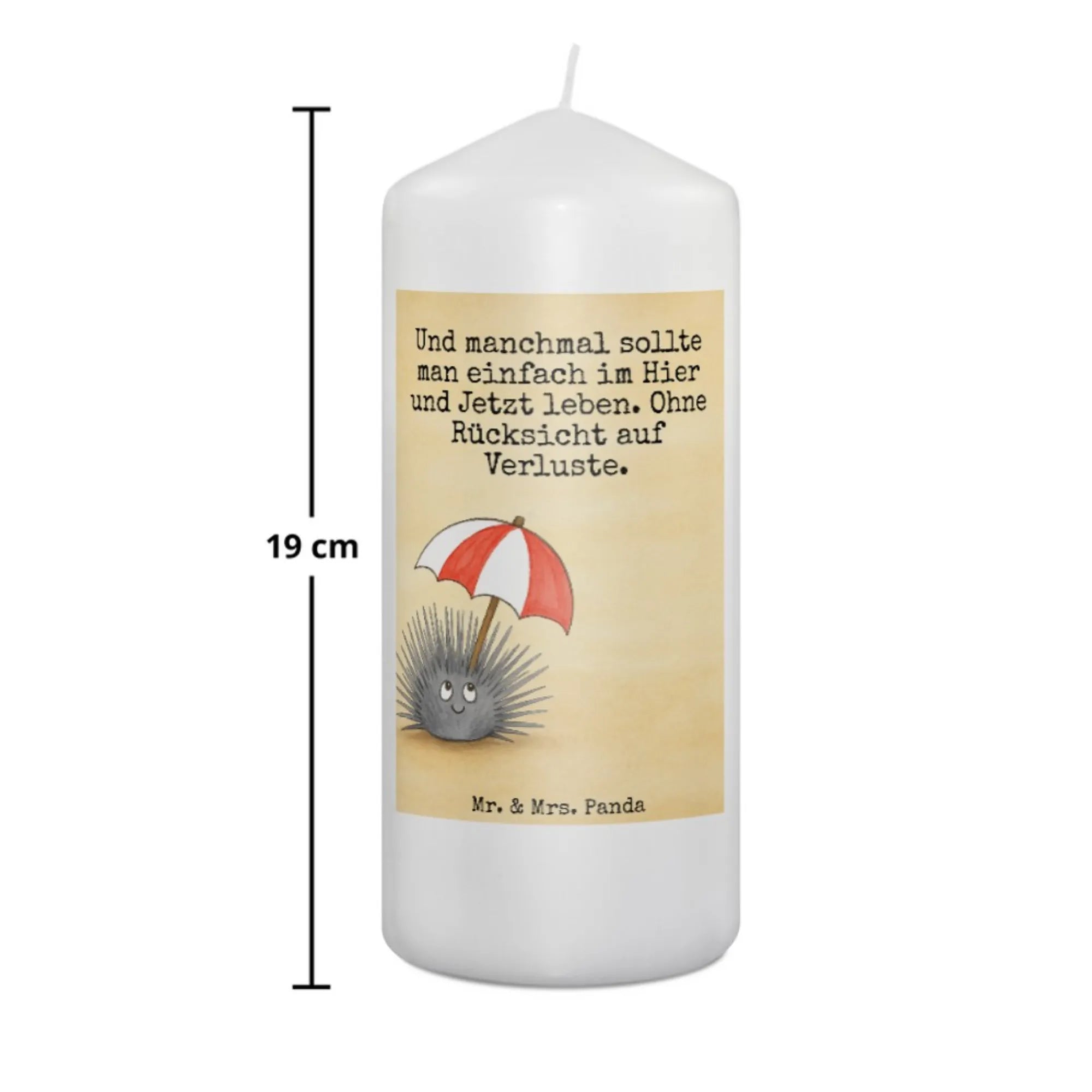 Kerze Seeigel Design - 19 x 8 cm - mit Spruch