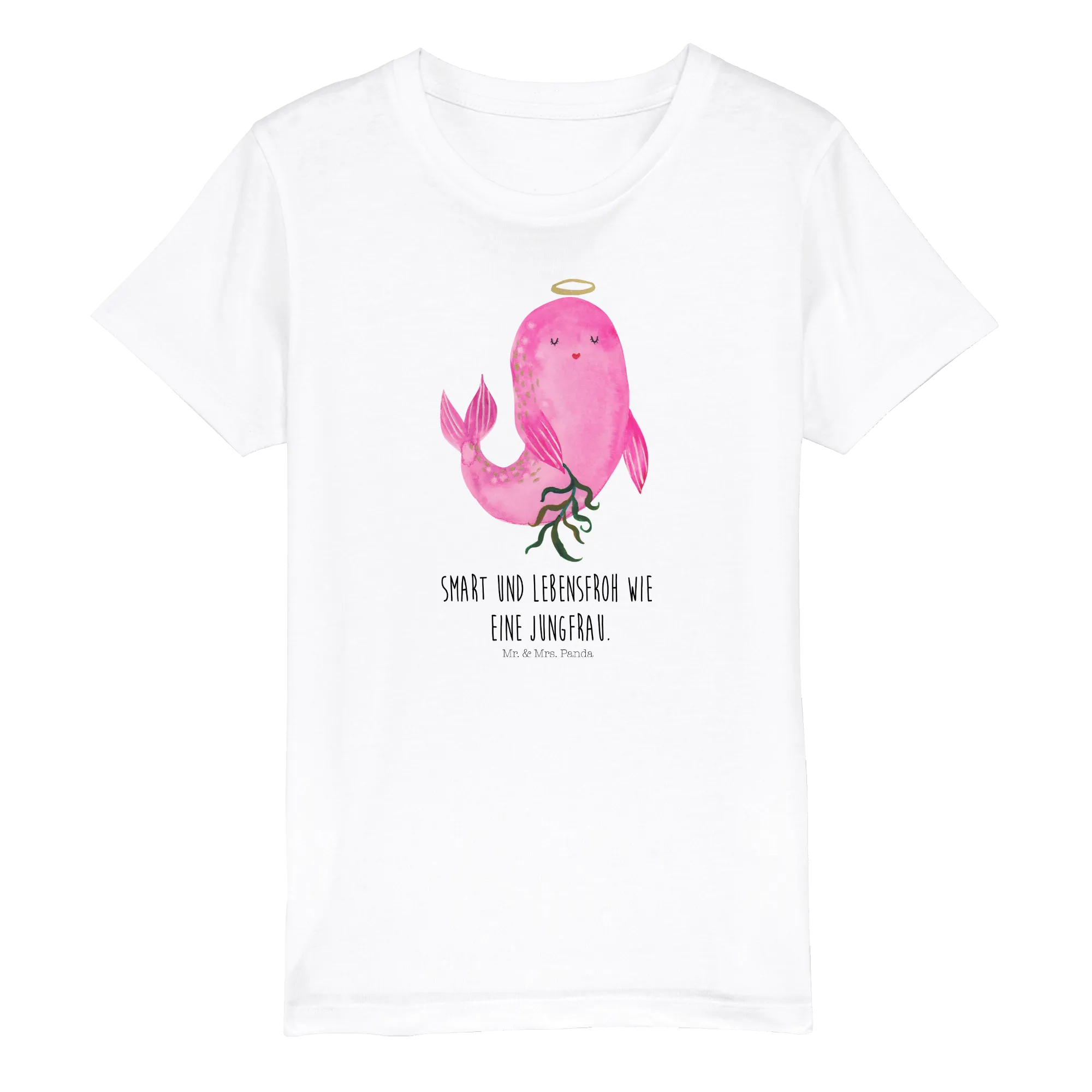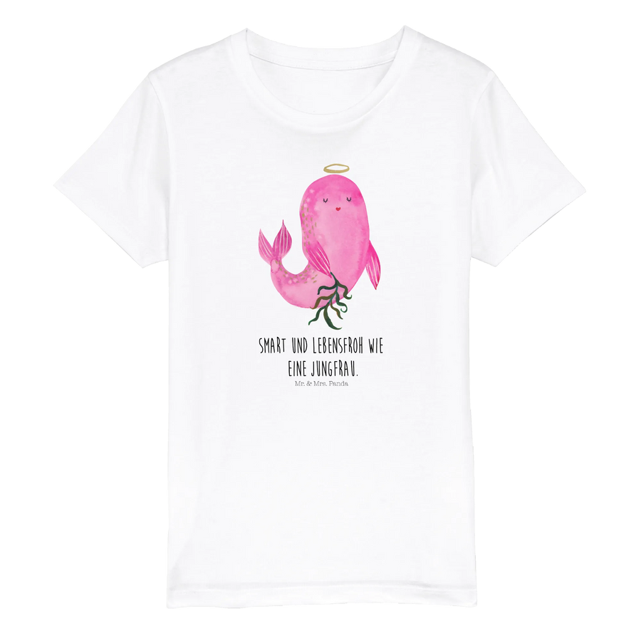 Die normale Passform und der Rundhalsausschnitt machen es zu einem bequemen Begleiter im Alltag. Egal ob beim Spielen, Toben oder auf besonderen Anlässen – das T-Shirt ist der Hit! Das Jungfrau-Motiv zeigt eine fröhliche und bezaubernde Darstellung, die von Mrs. Panda liebevoll handgezeichnet wurde und somit jedem Kind ein Lächeln ins Gesicht zaubert.