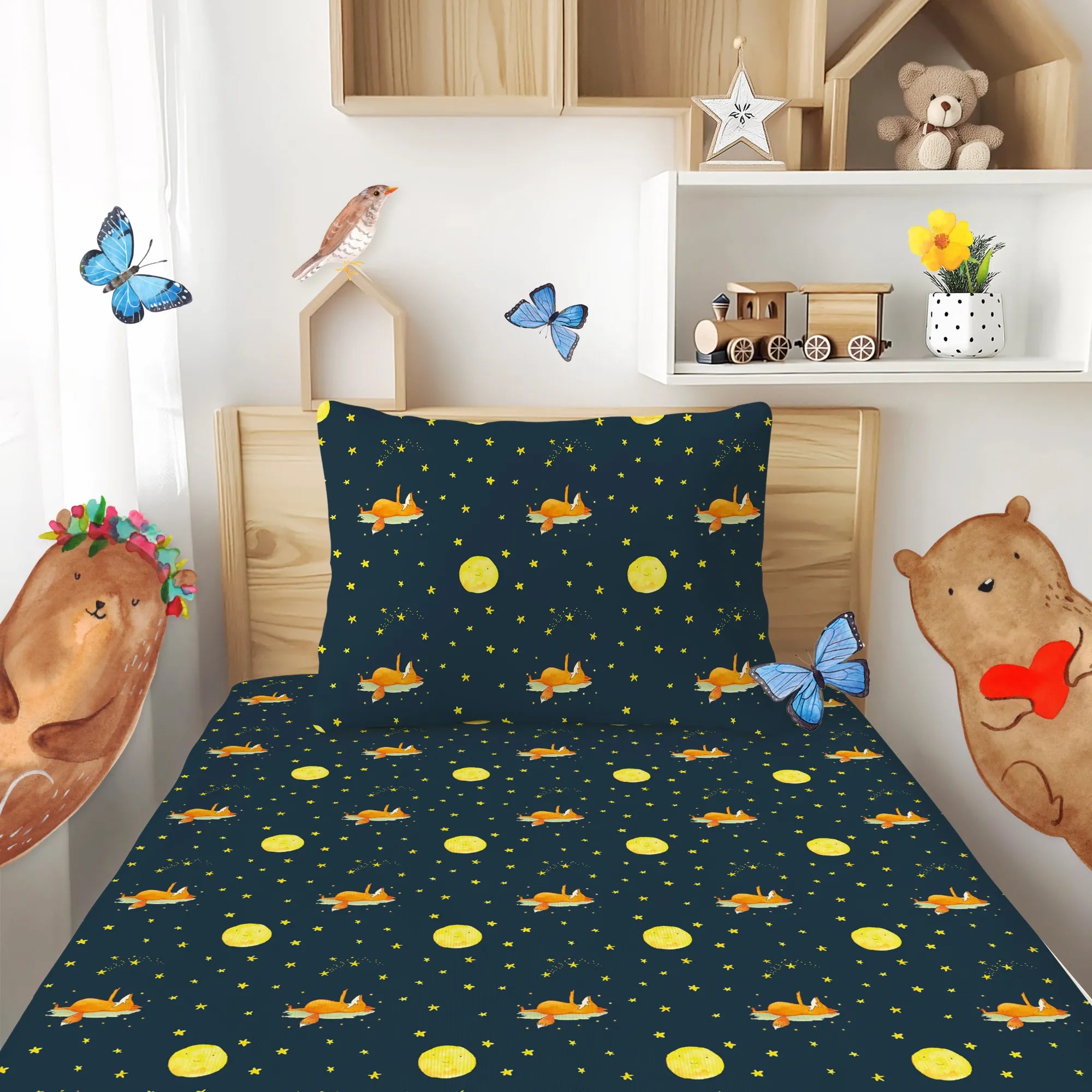 Kinderbettwäsche „Fuchs Sterne“ – von Mr. & Mrs. Panda